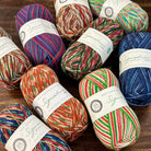 A selection of sock yarn shades from West Yorkshire Spinners in Christmassy colours and some with added sparkle.