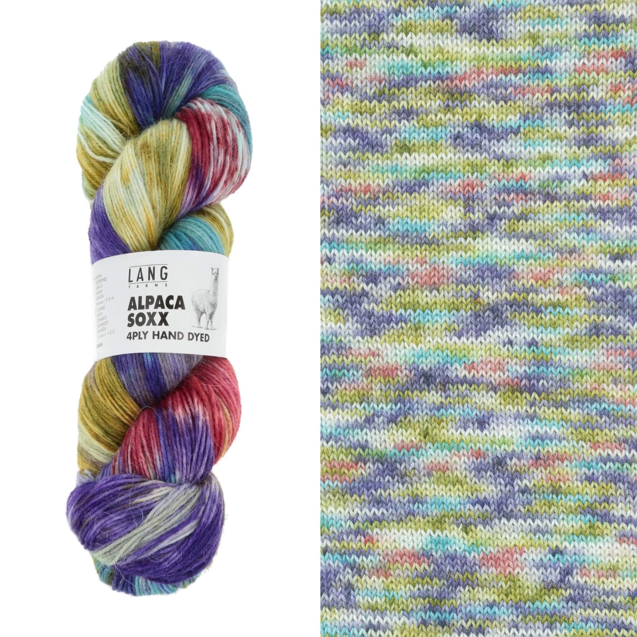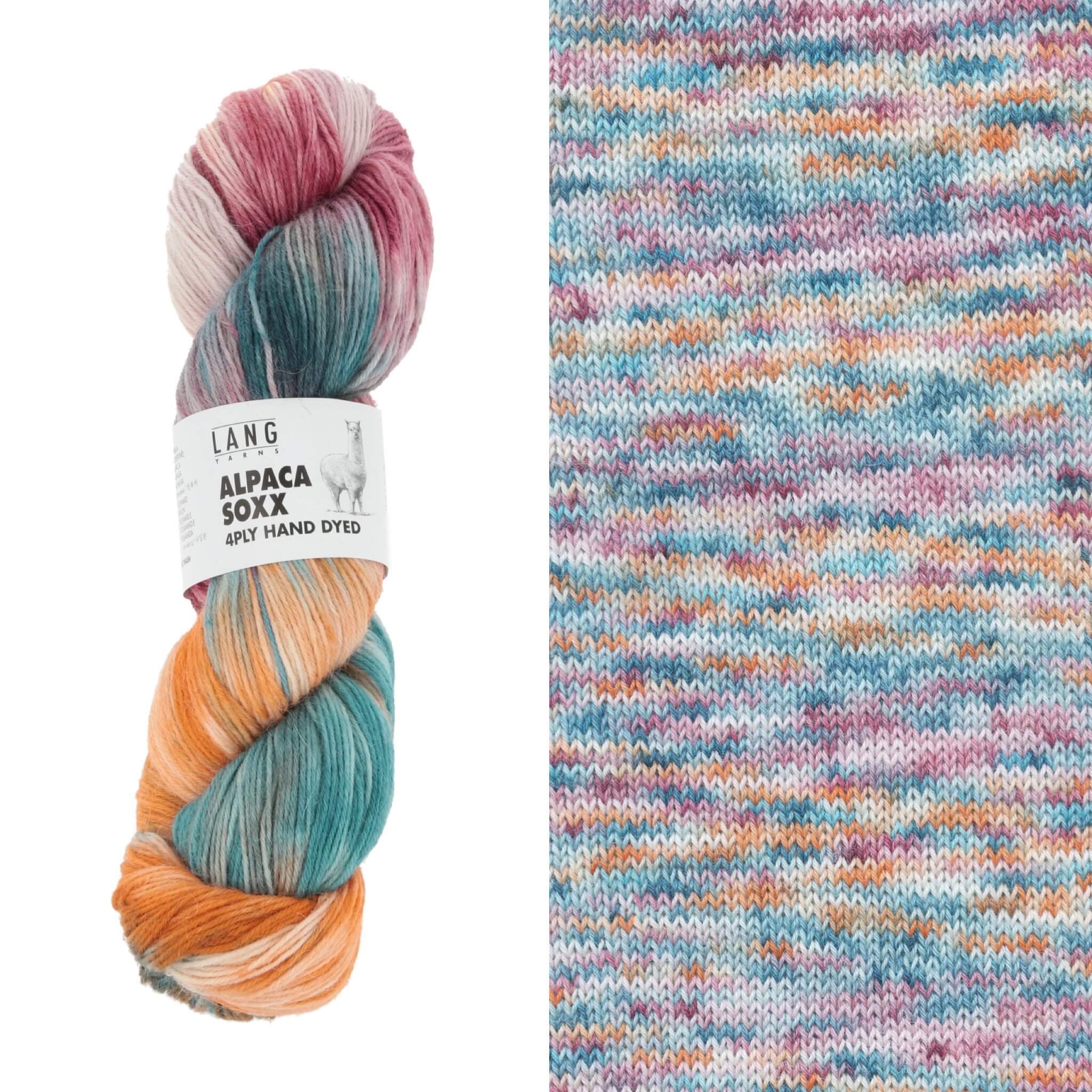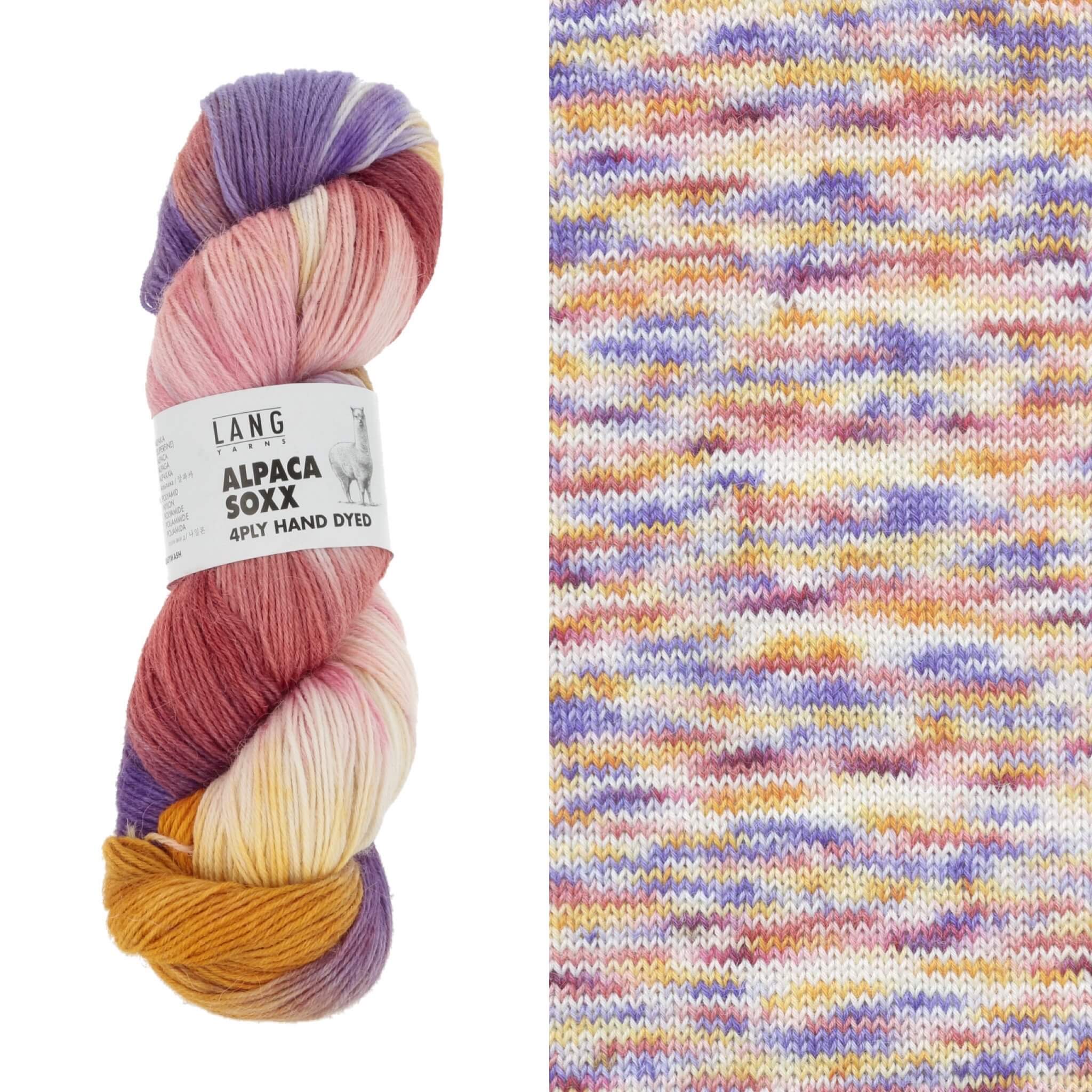It perfectly showcases our new hand dyed Lang Alpaca Soxx a 75/25% alpaca and nylon blend. For the main solid colour I've ramped up the softness by using our undyed Angel Delightful which is a blend of alpaca, silk and cashmere.