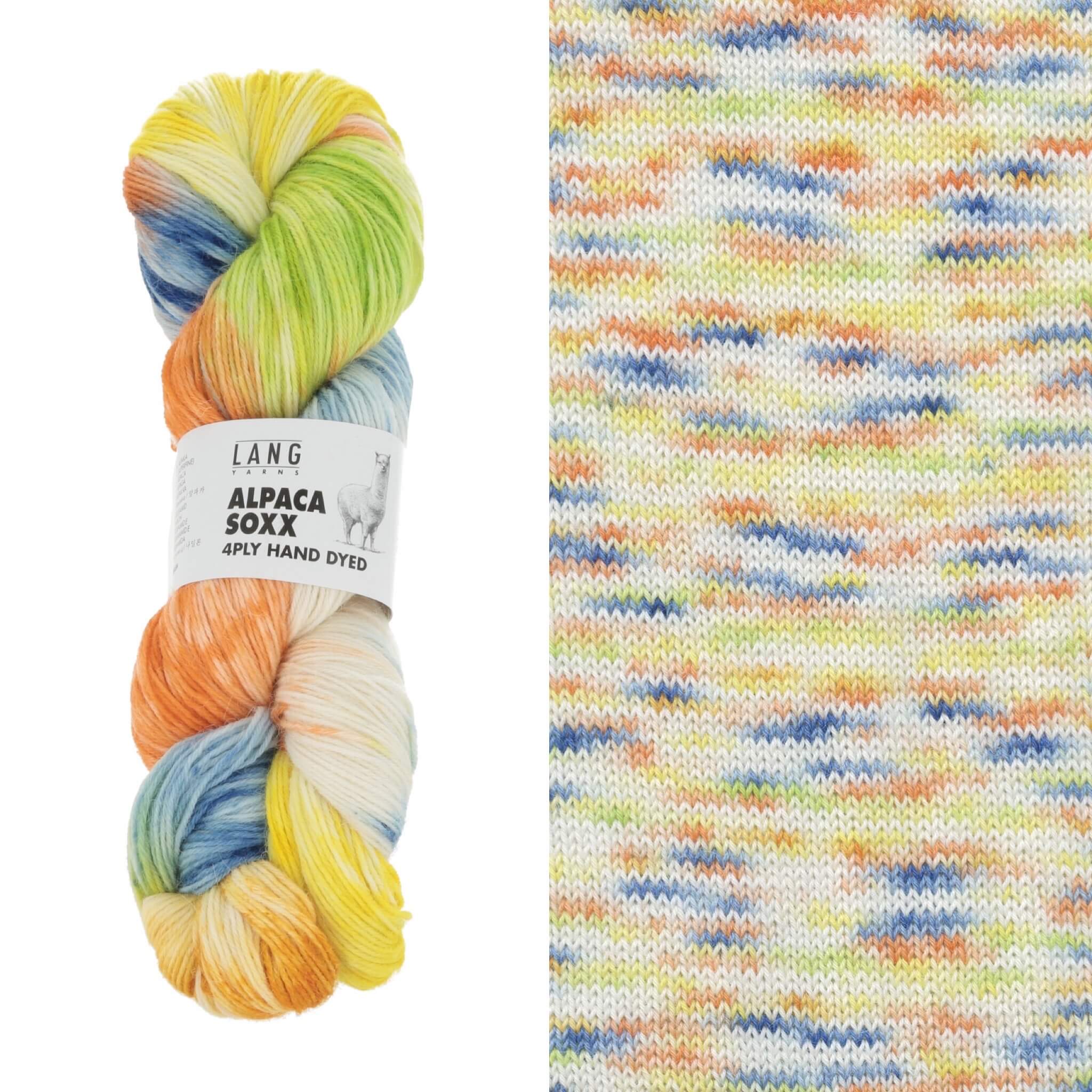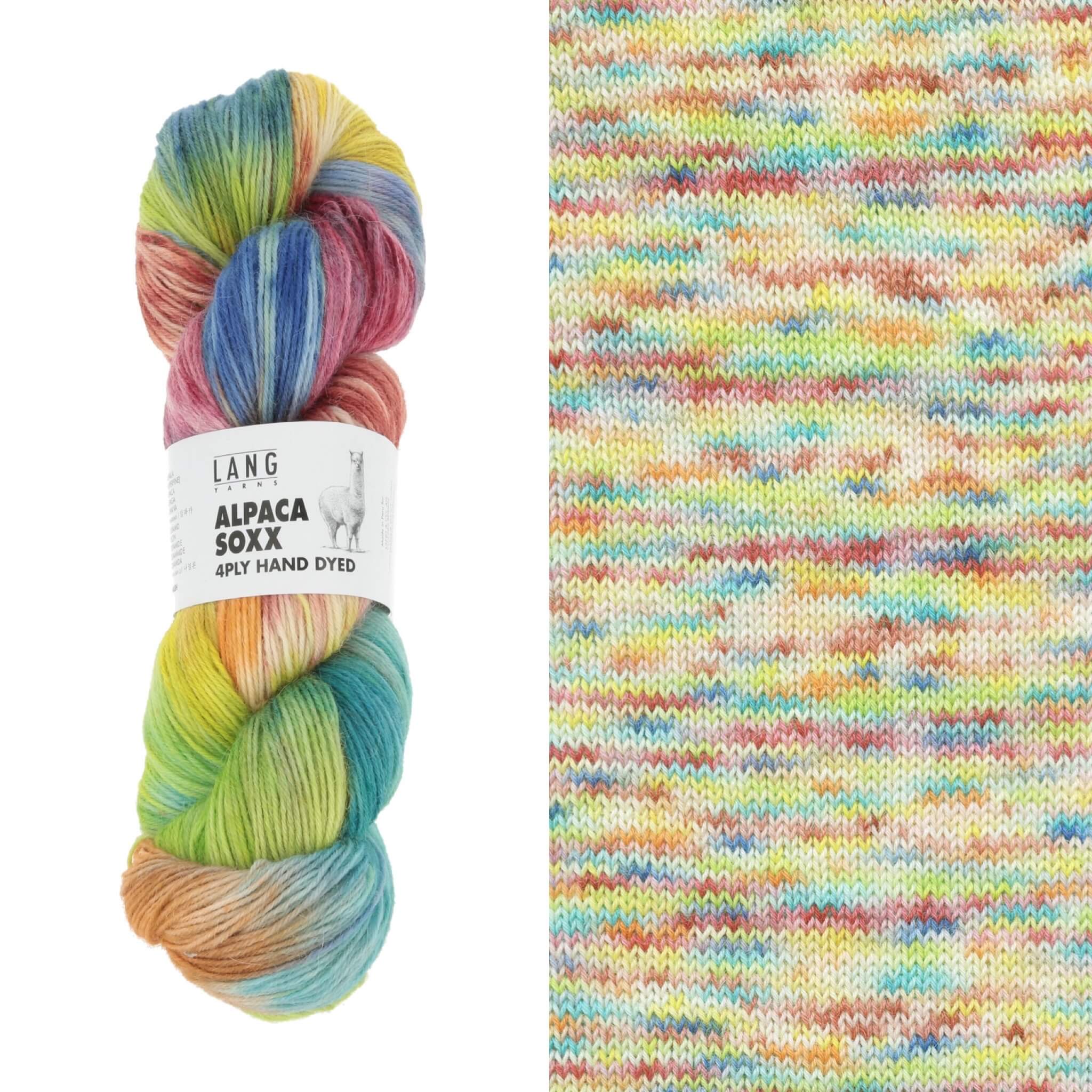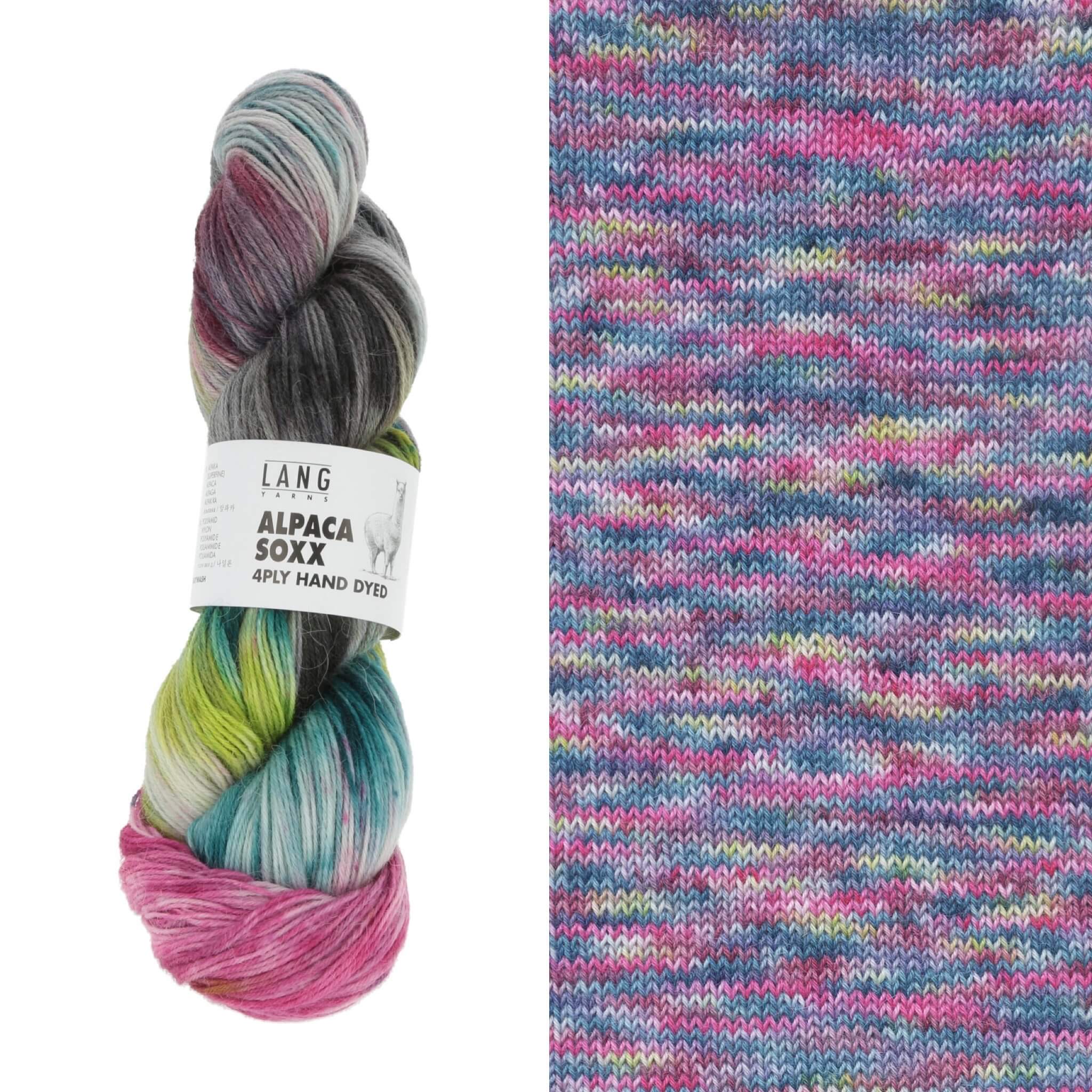 It perfectly showcases our new hand dyed Lang Alpaca Soxx a 75/25% alpaca and nylon blend. For the main solid colour I've ramped up the softness by using our undyed Angel Delightful which is a blend of alpaca, silk and cashmere.