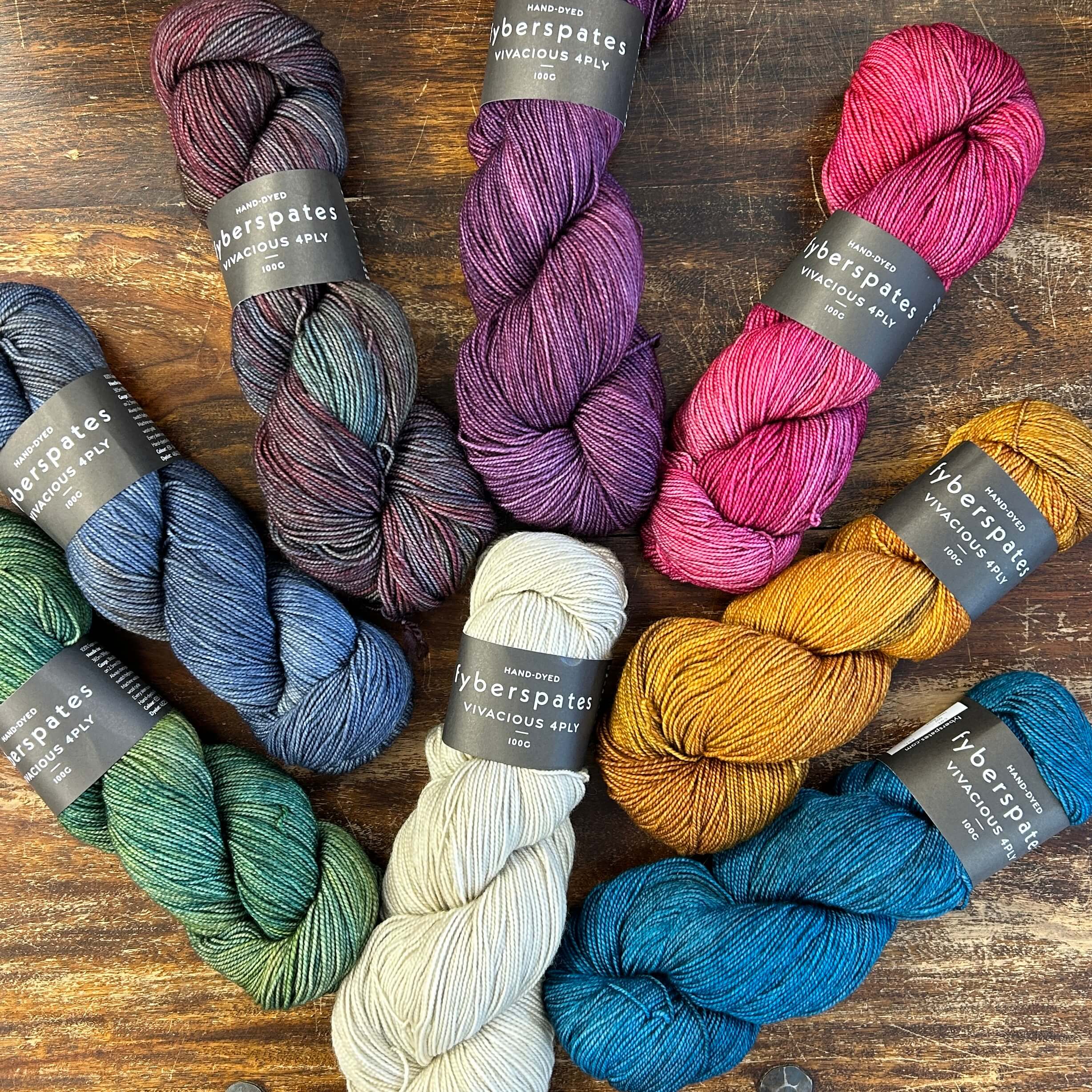 Vivacious 4ply from Fyberspates, is a fantastic all rounder! It’s a high twist 100% Merino wool, making it more robust. You can make both drapey fabrics and crisp cables all with softness of merino. It’s also machine washable!