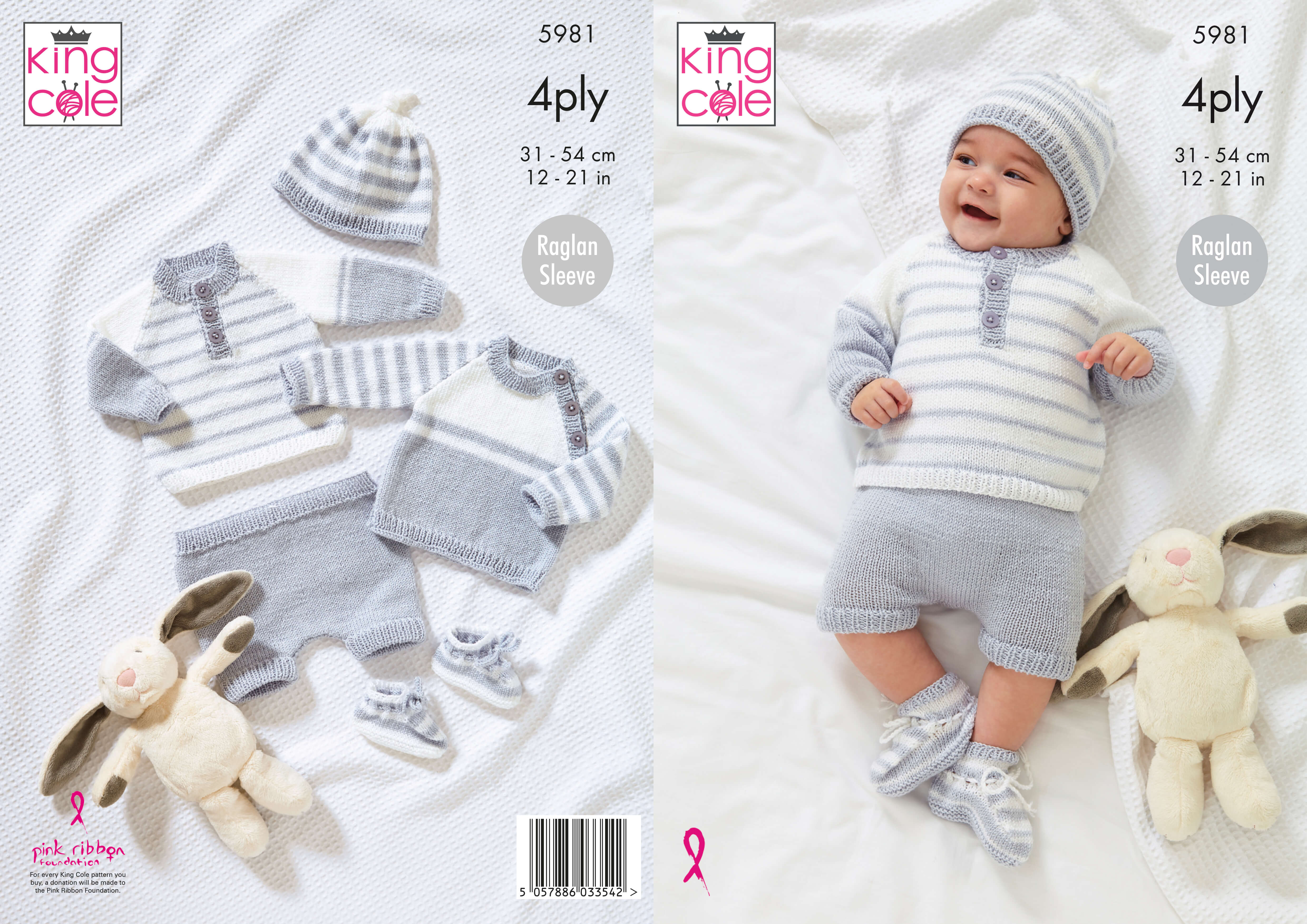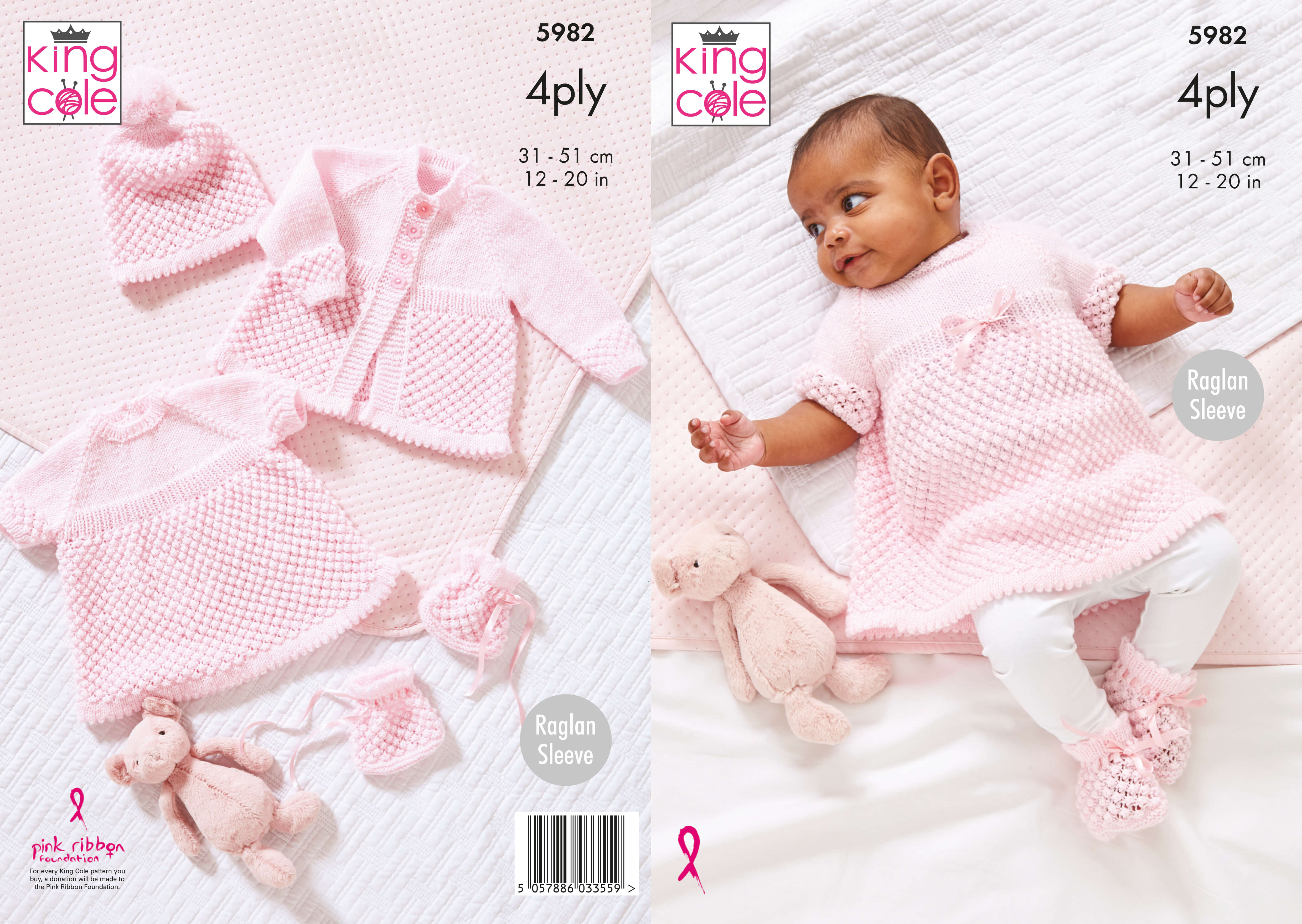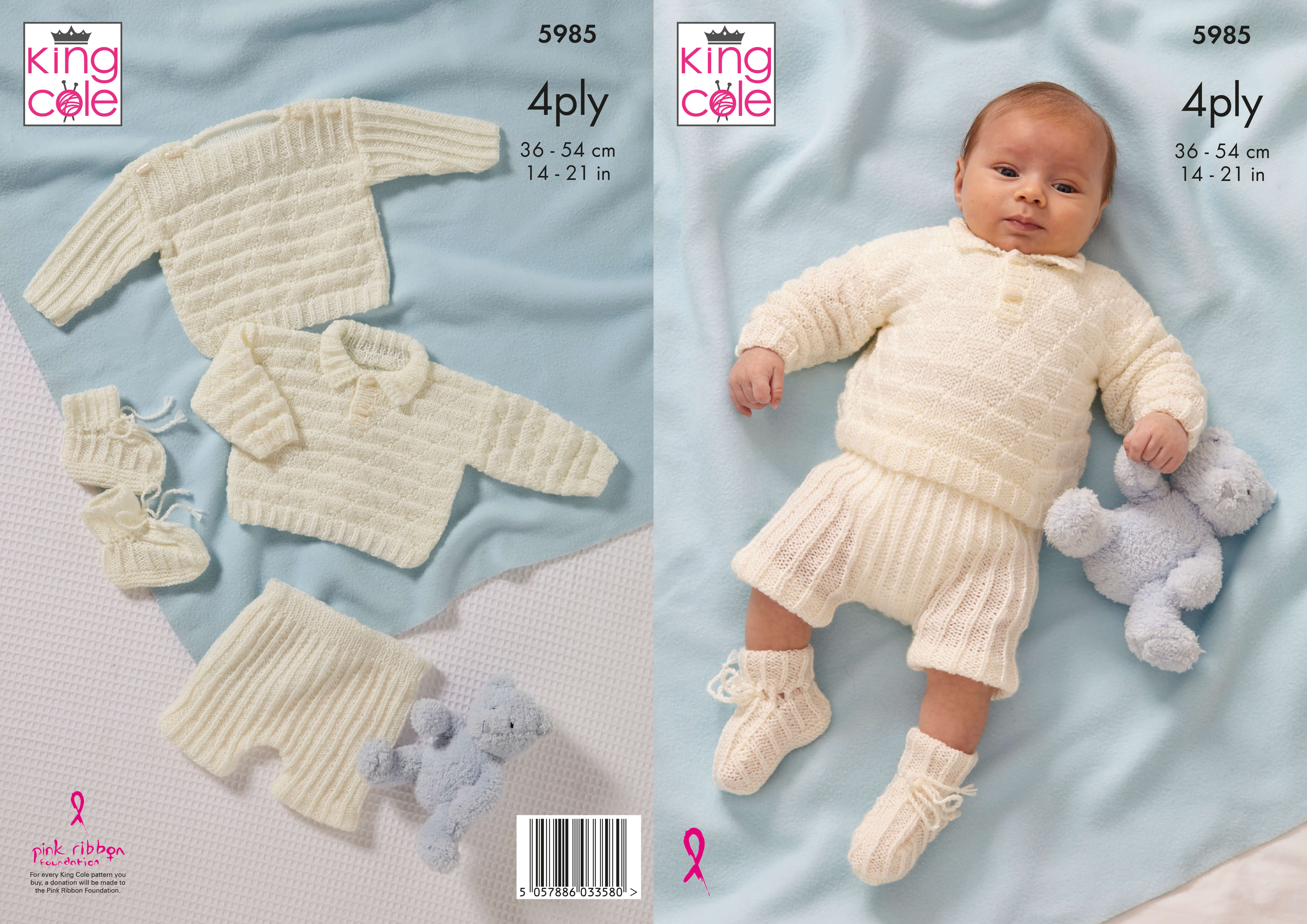 A selection of baby knitting patterns designed for King Cole Cherished 4ply. Each leaflet includes 3 to 5 knitting designs.