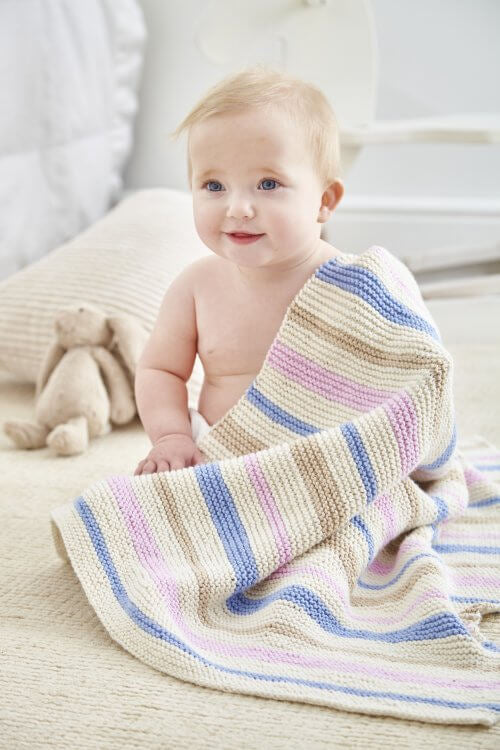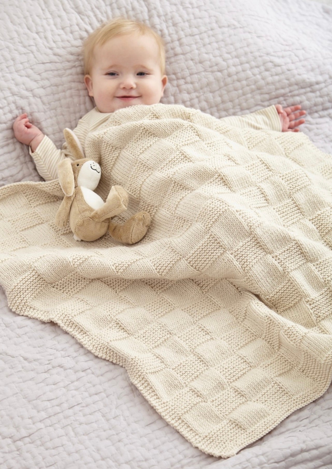 From King Cole a wide range of knitting patterns for baby sized blankets - bright, fun ones, delicate, pretty lace ones, bold cables… whatever your style or skills, you’ll find a cute knitted blanket to snuggle them up in.