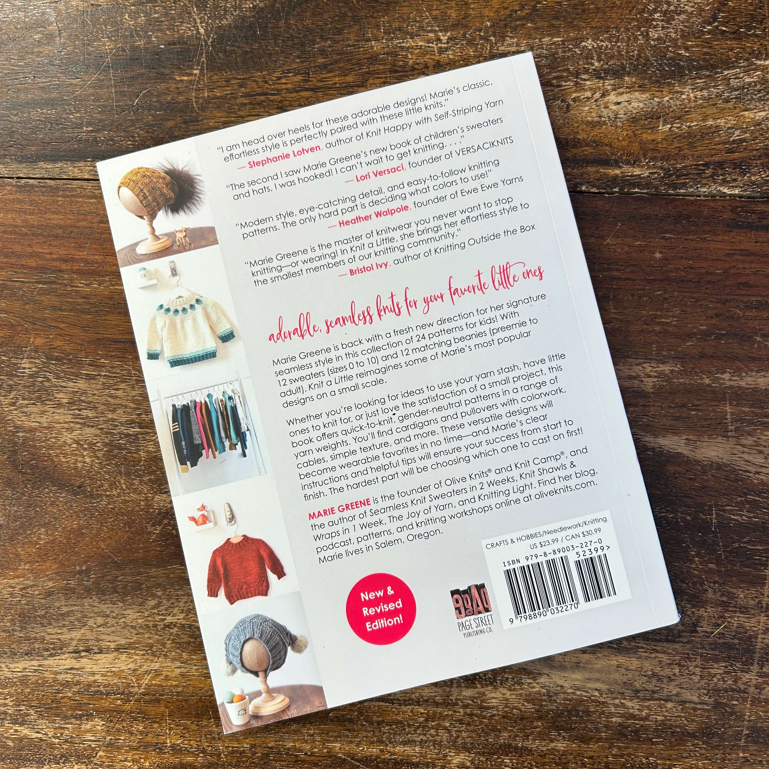 With 12 sweaters (sizes 0 to 10) and 12 matching beanies (preemie to adult), Knit a Little reimagines some of Marie’s most popular designs on a small scale.