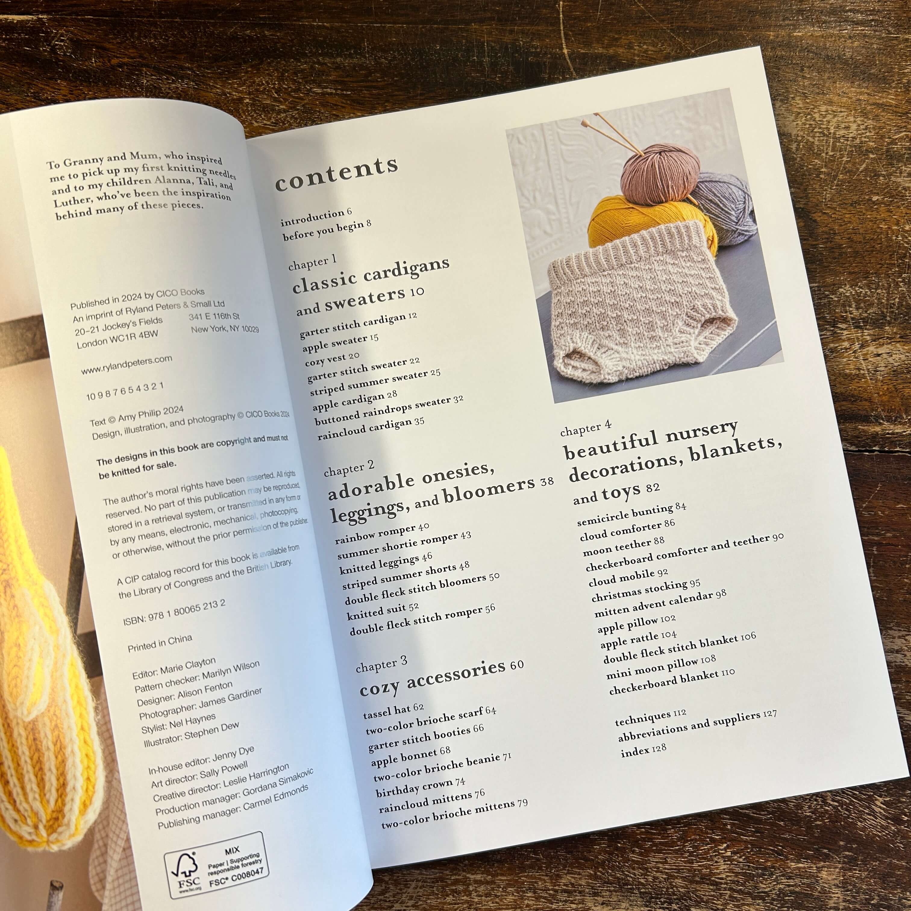 A beautiful and functional collection of 35 knitting patterns for baby garments, accessories and nursery homewares.