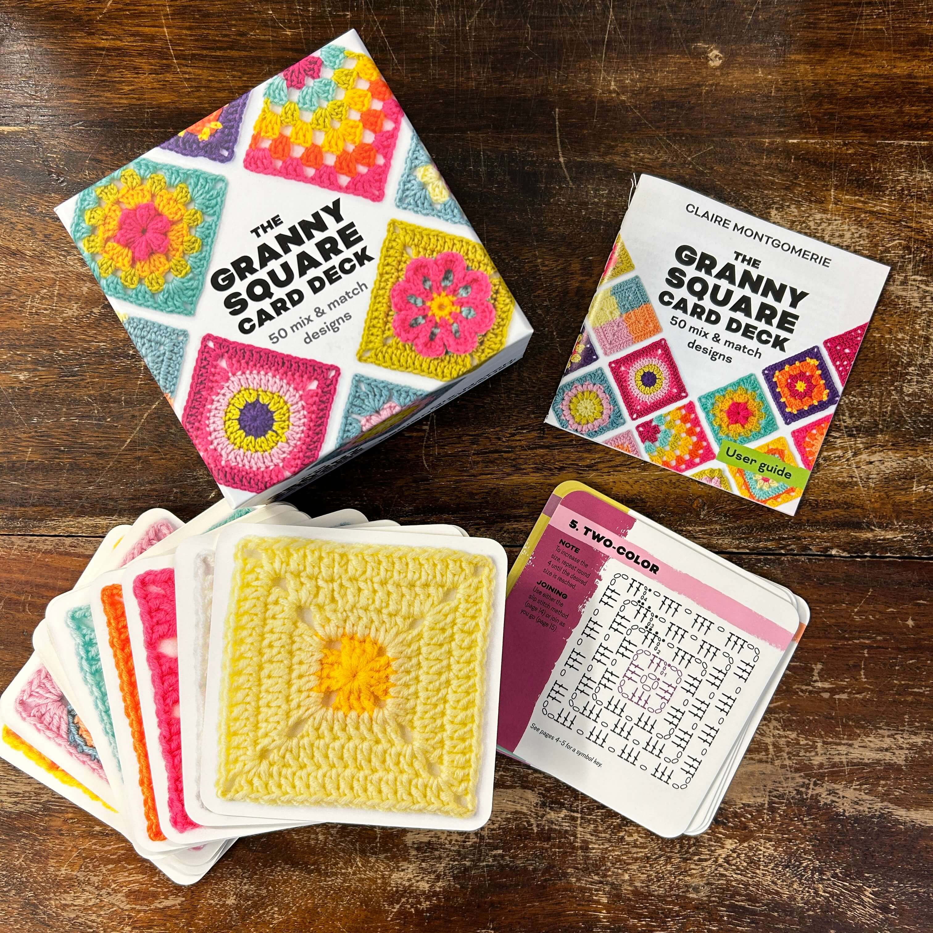 The perfect tool to help you mix and match granny square designs for any handmade project, select a few cards or slip the whole deck into your bag for on-the-go crochet.