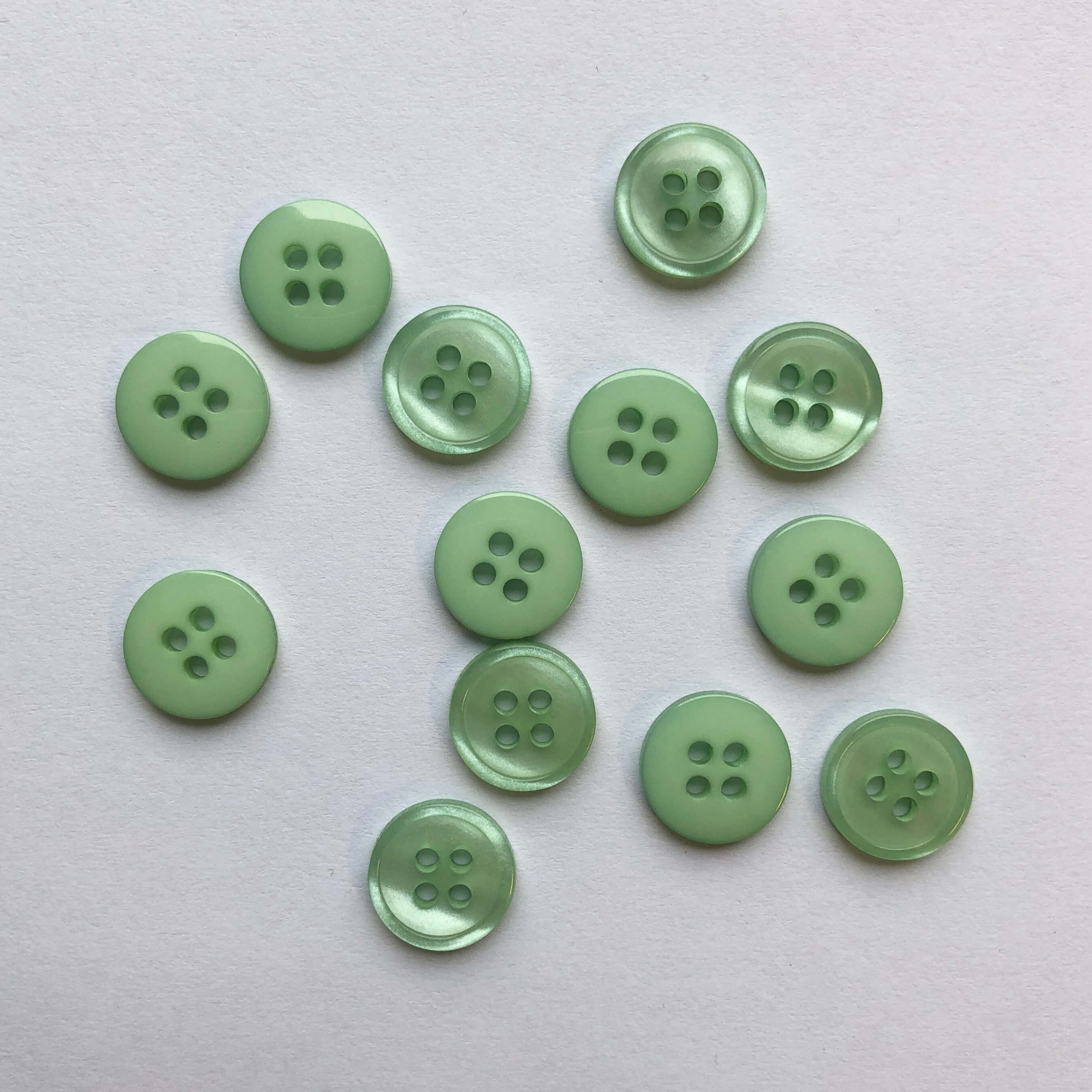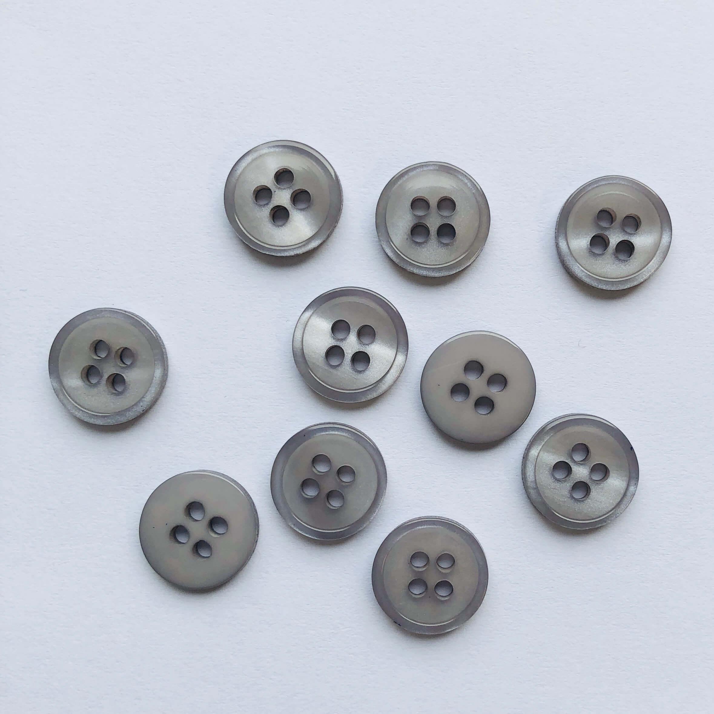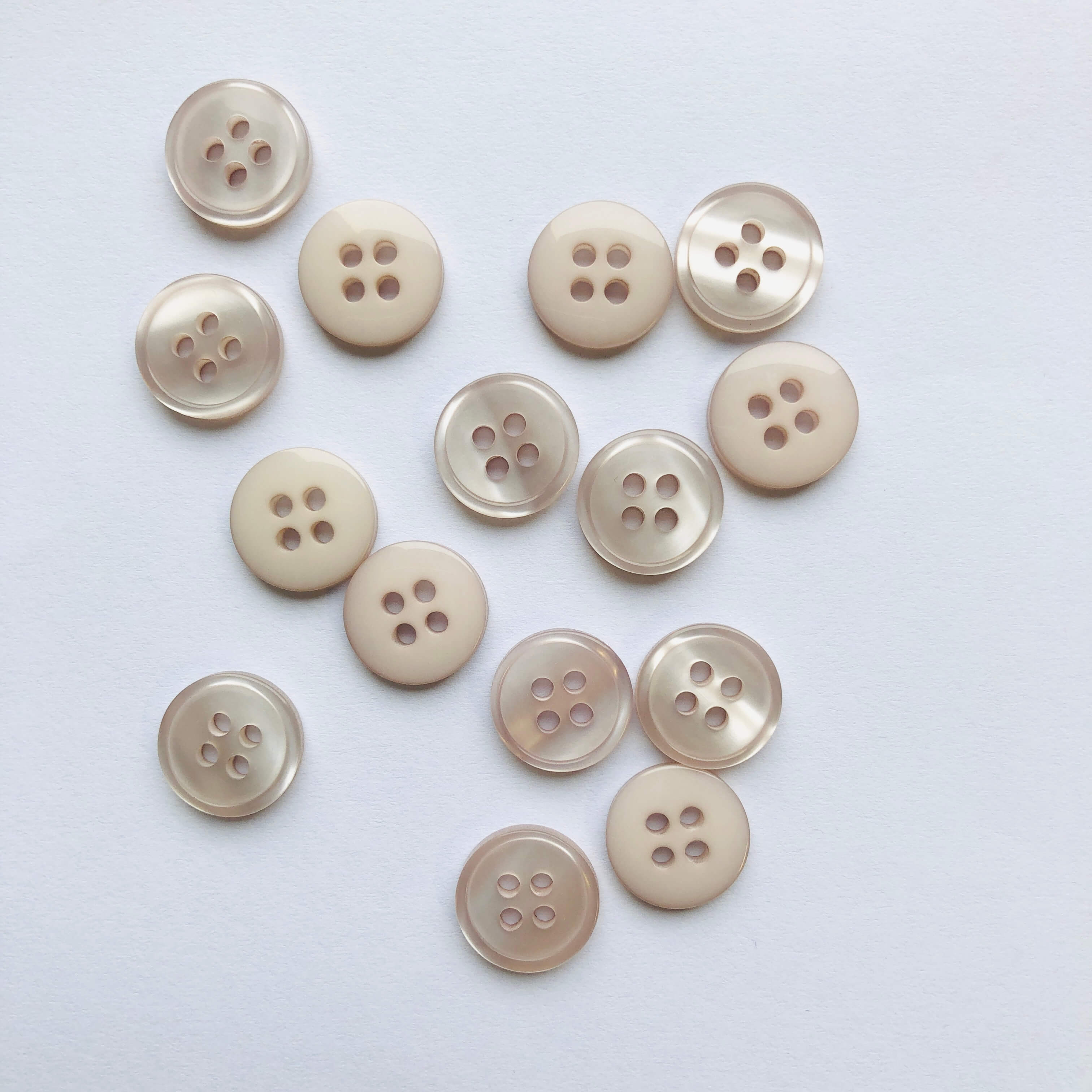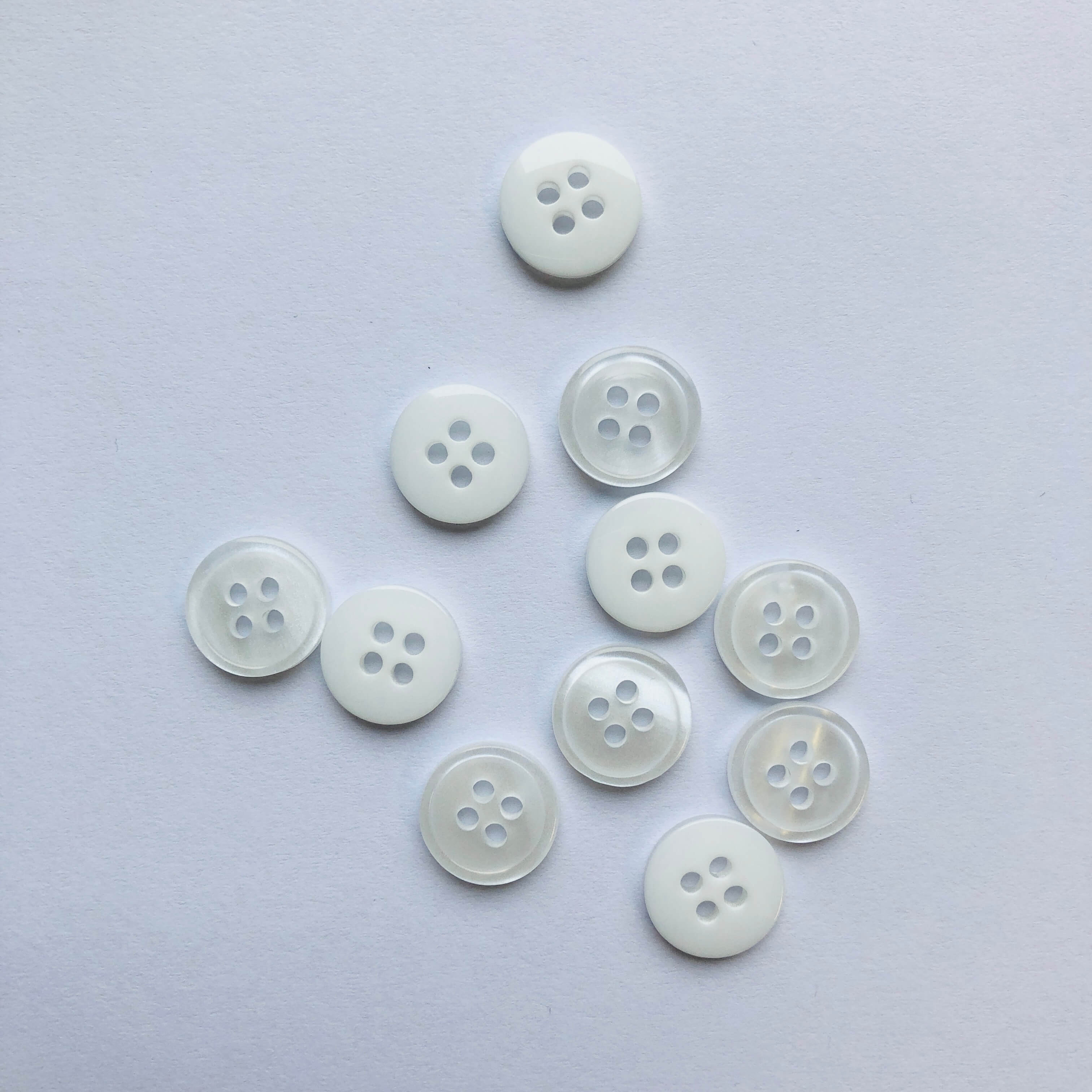 These buttons have a pearlescent effect on one side and a flat glossy effect on the other.