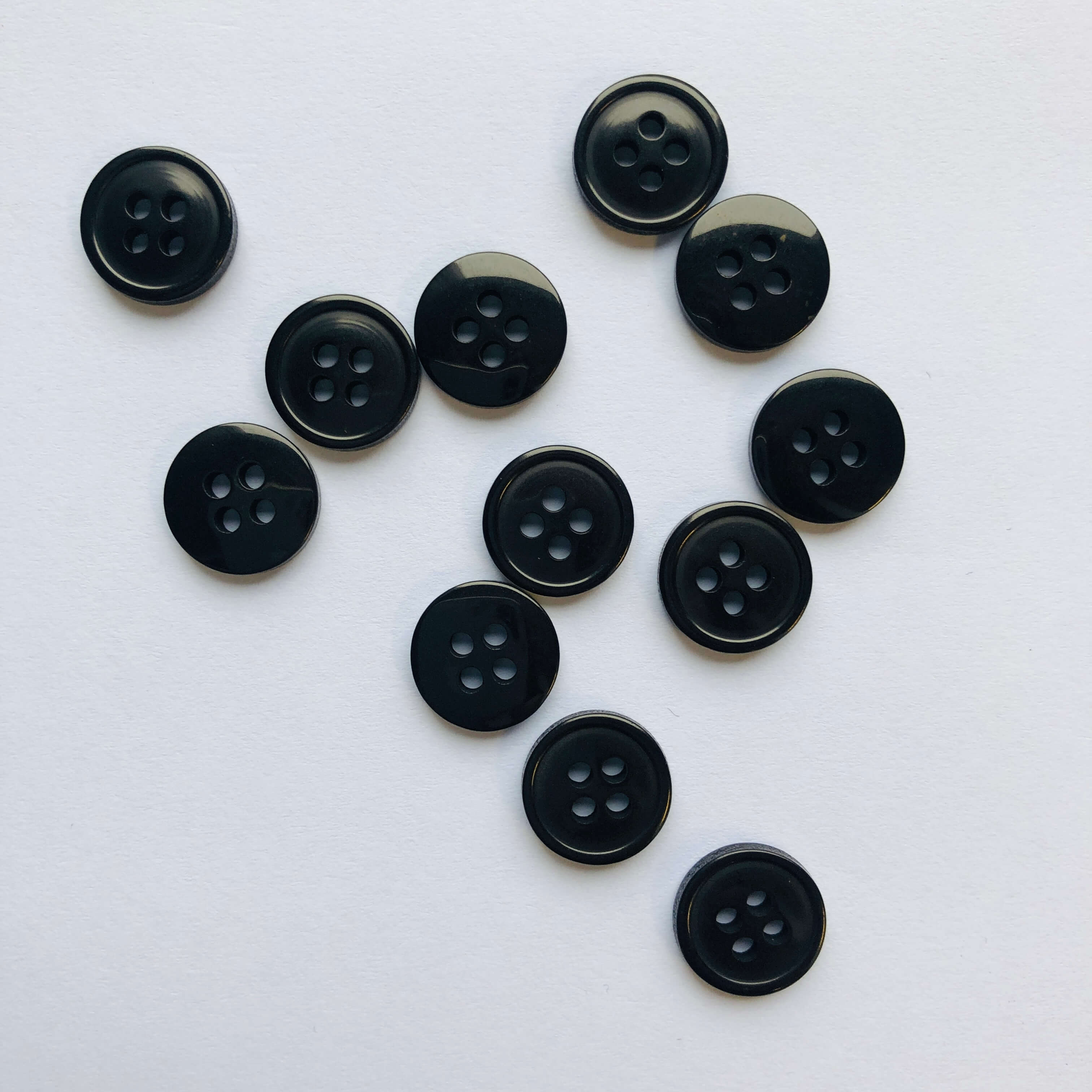 13mm plastic 4 hole buttons perfect for blouses and so much more.