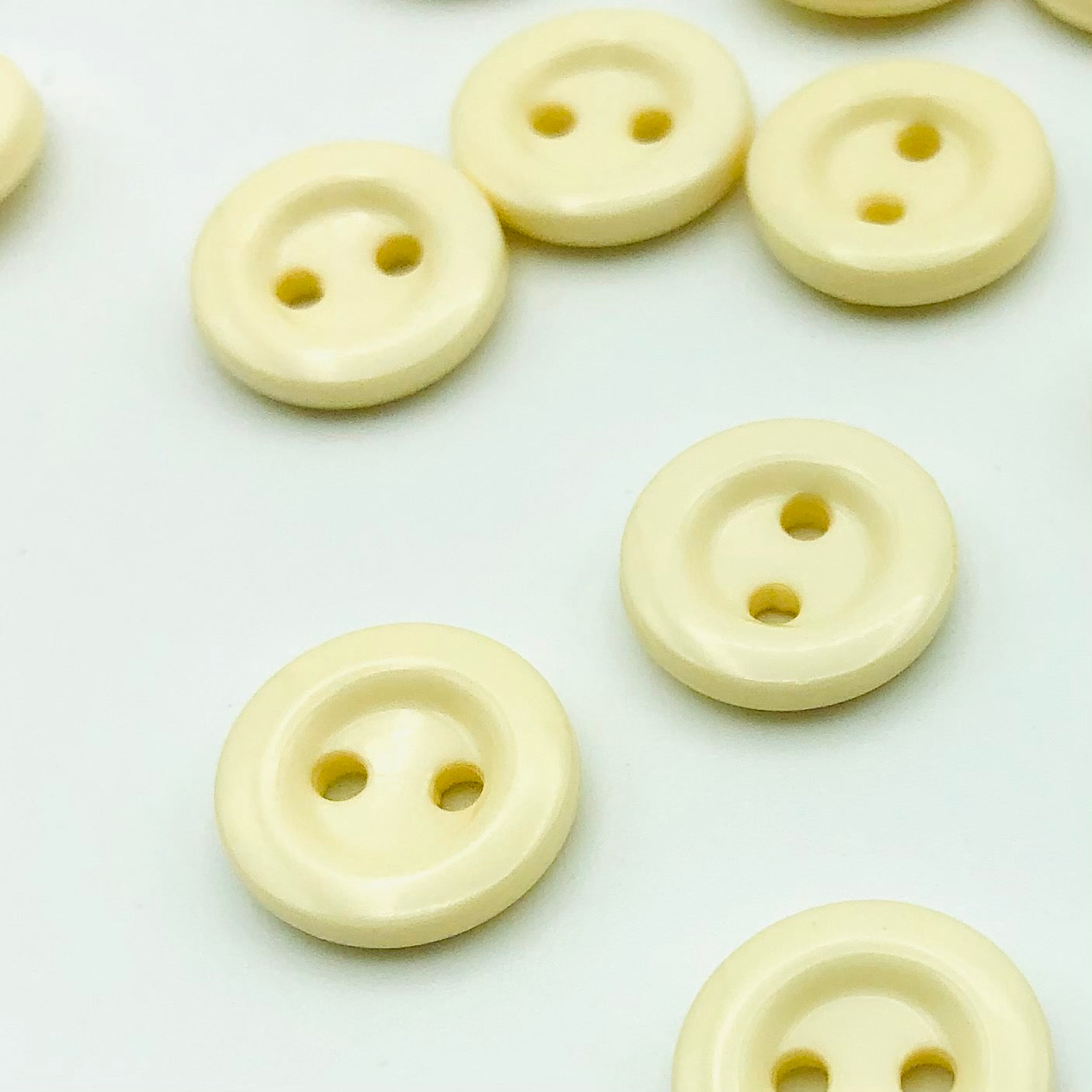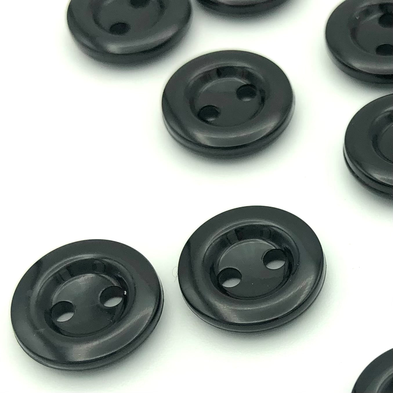 Plastic 2-hole button in a chunky style with a glossy finish.