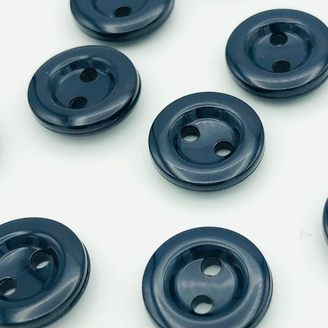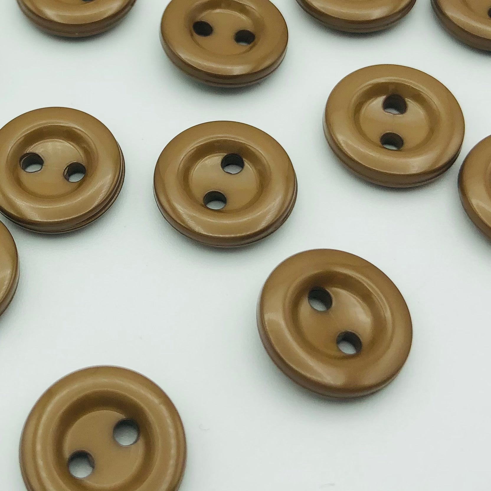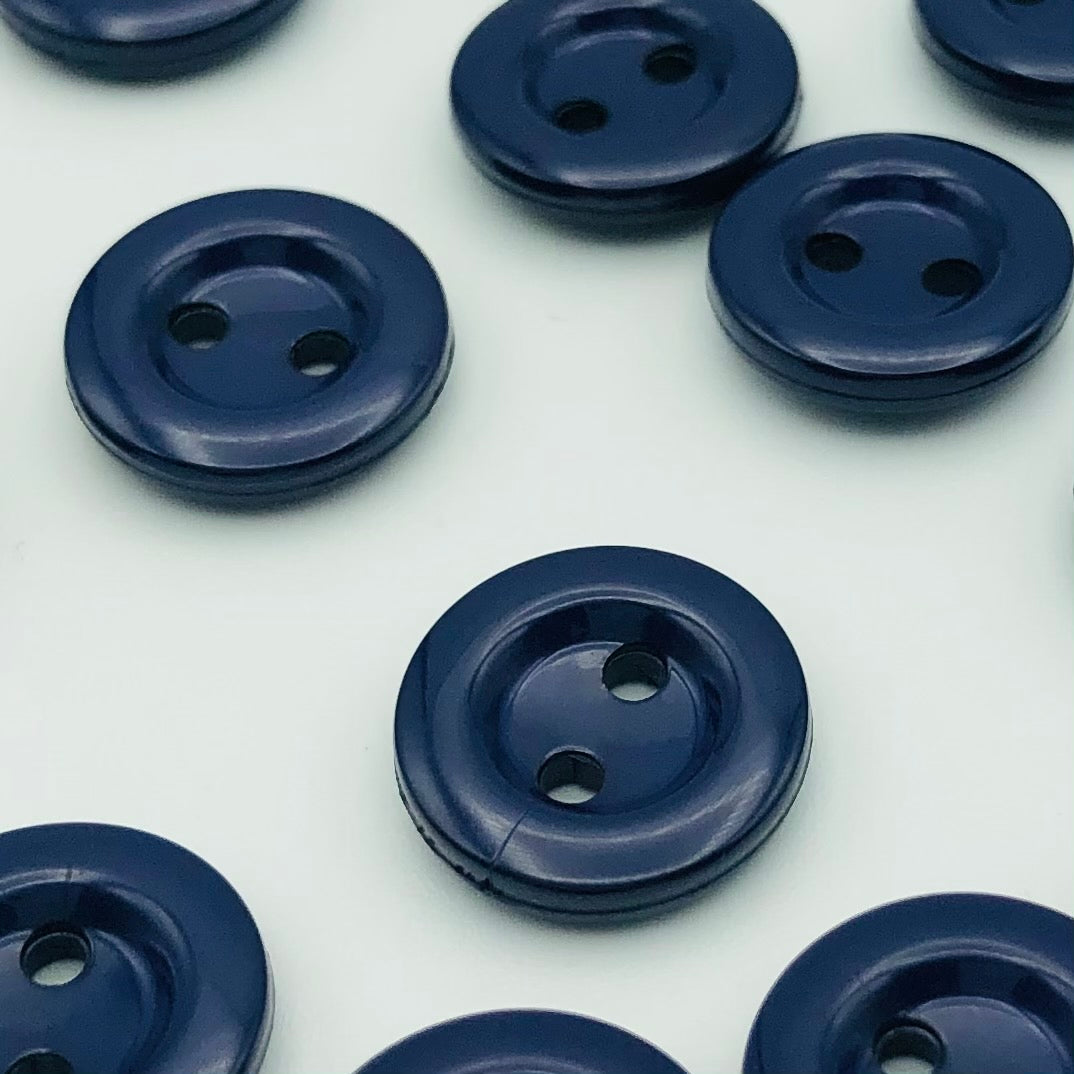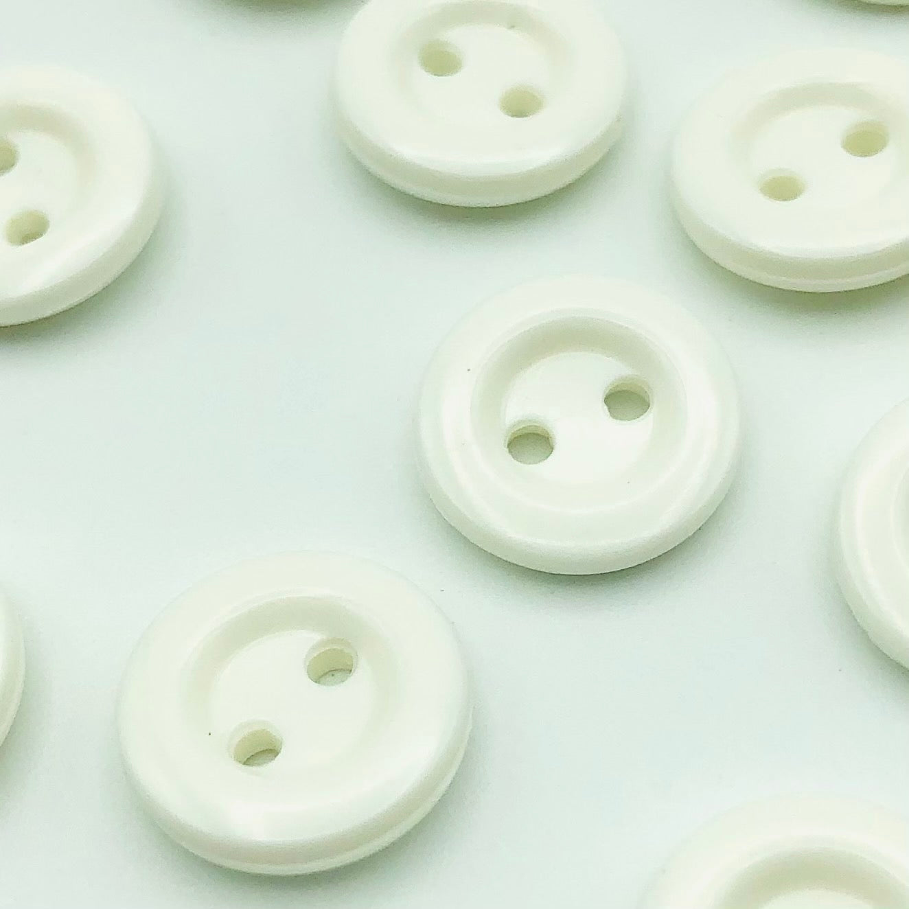 Plastic 2-hole button in a chunky style with a glossy finish.