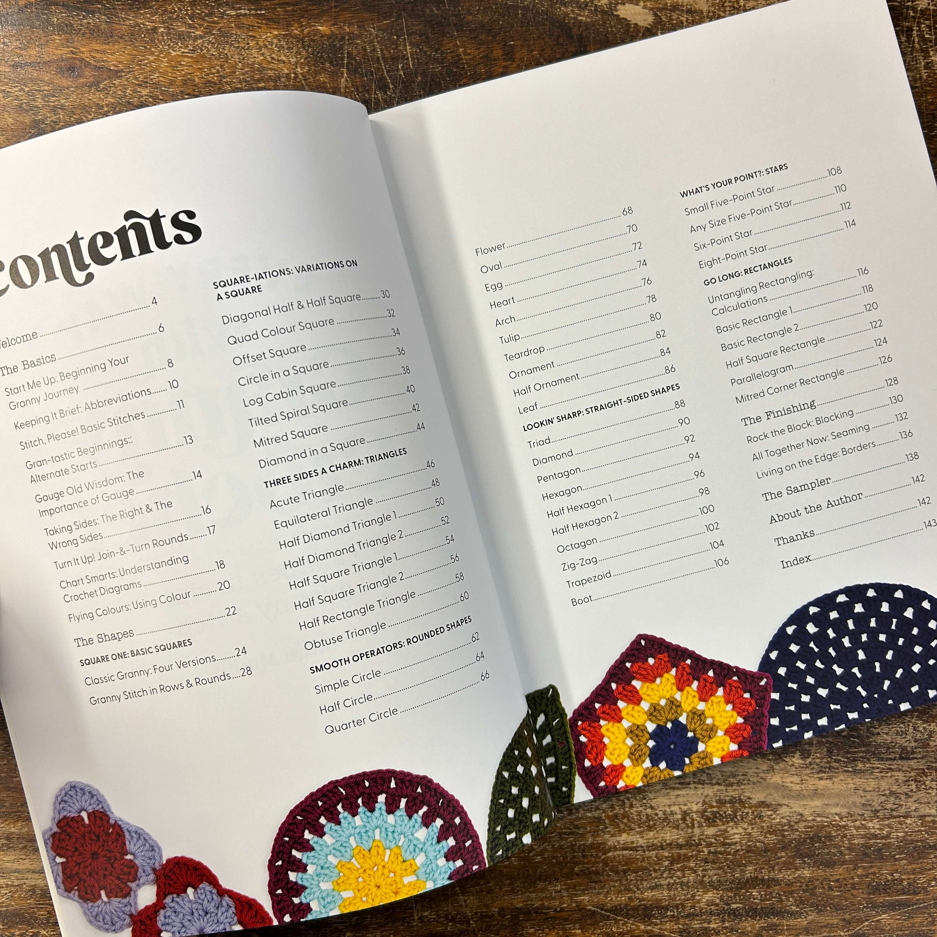 The finishing section walks you through multiple techniques to whip(stitch) your gorgeous grannies together or give them a finishing touch with clean and simple crochet borders. See all the grannies in action in the showcase sampler blanket, outlining how to use shapes and techniques from the book to create a graphic-granny showstopper!