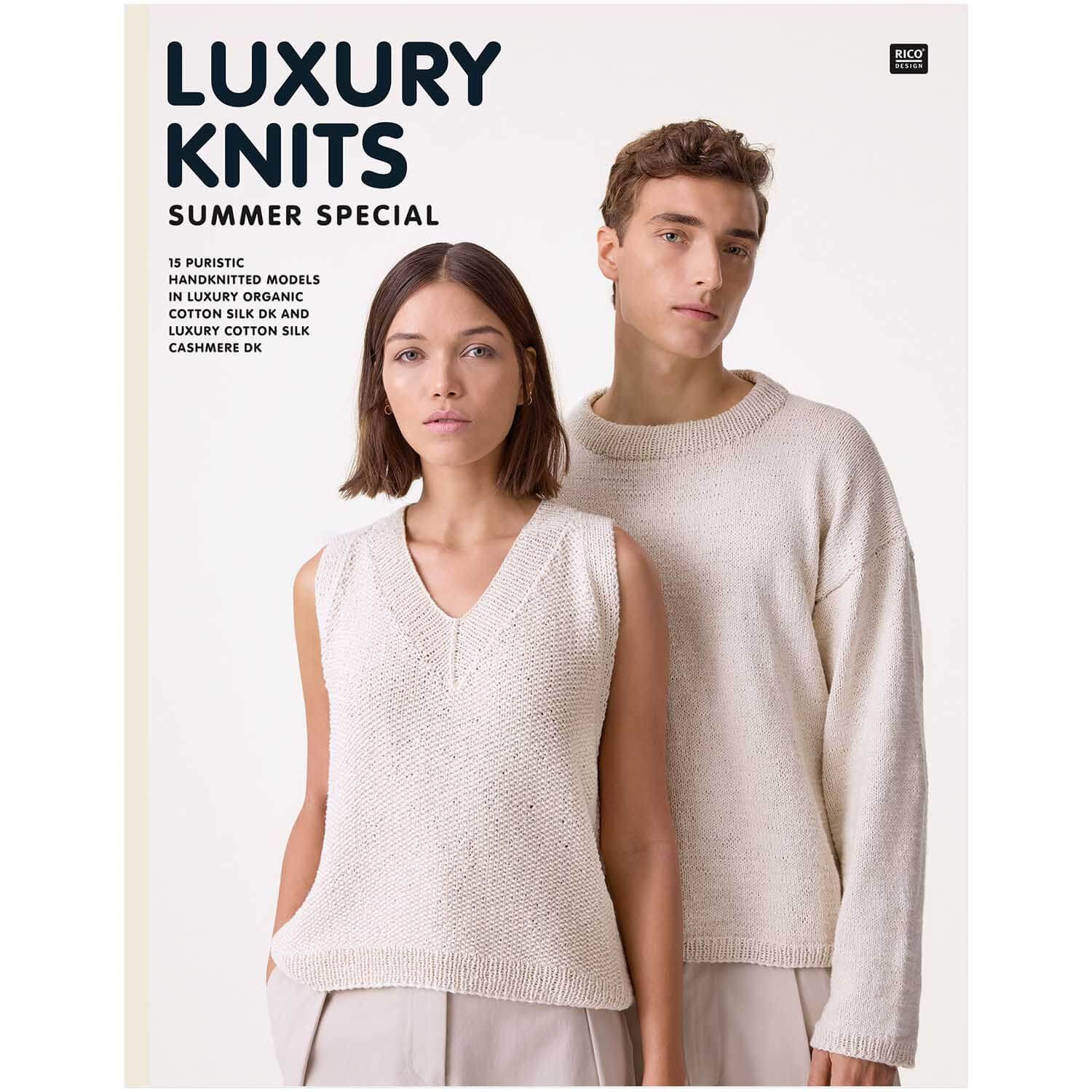 These patterns use Rico Luxury Organic Cotton and Silk DK and Rico Luxury Cotton Silk Cashmere DK. You can use other DK thickness yarns too.