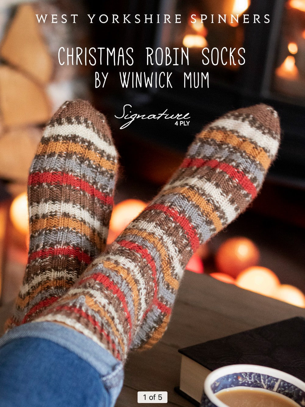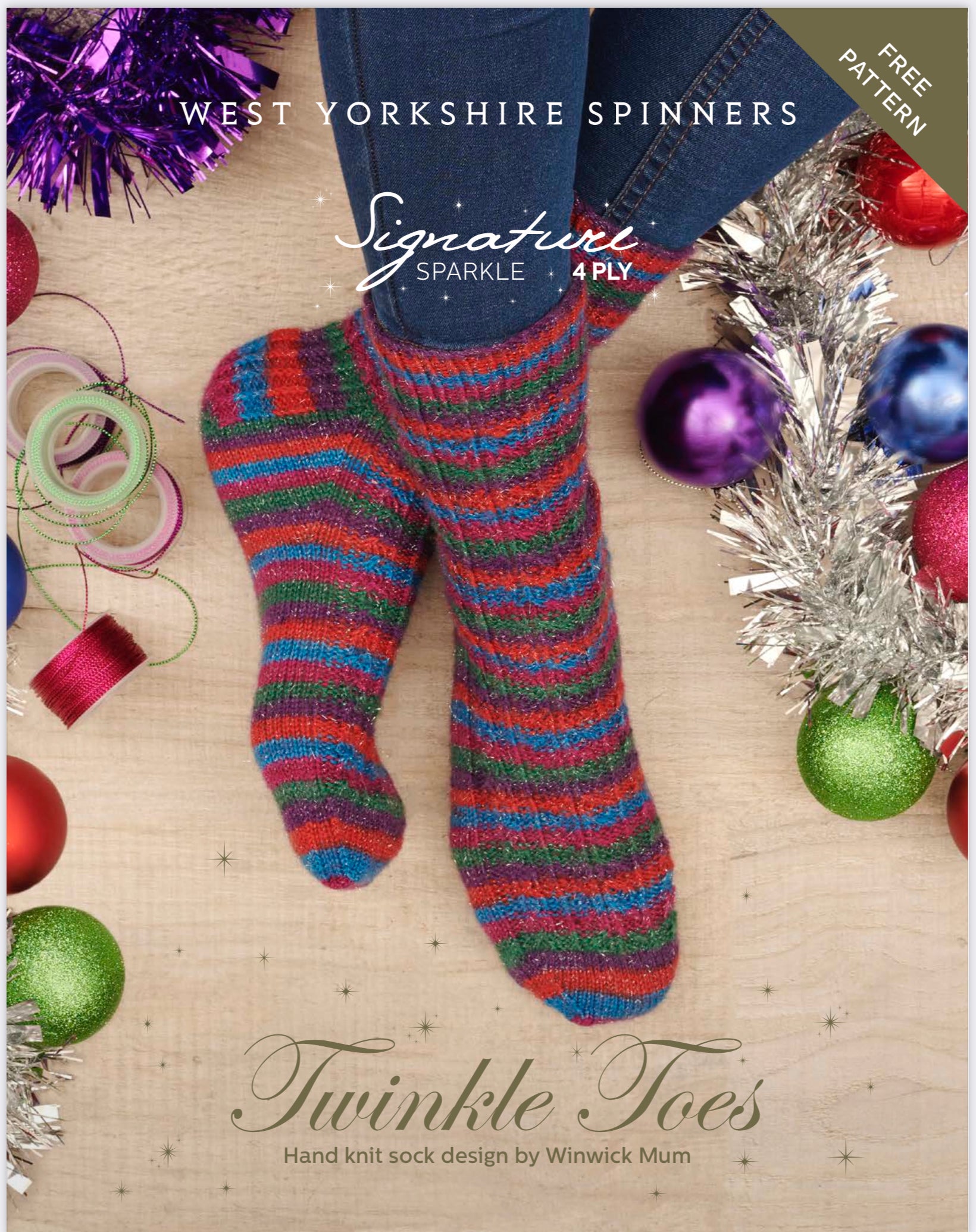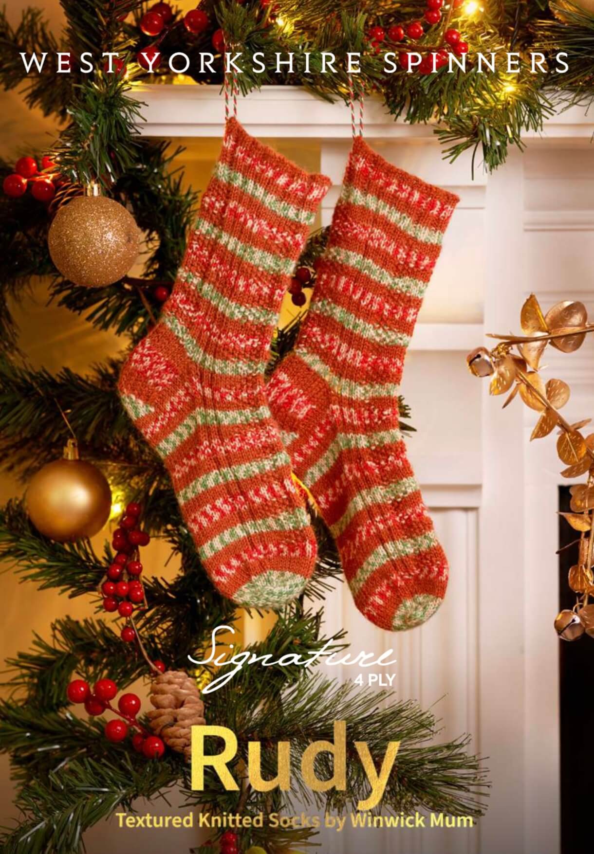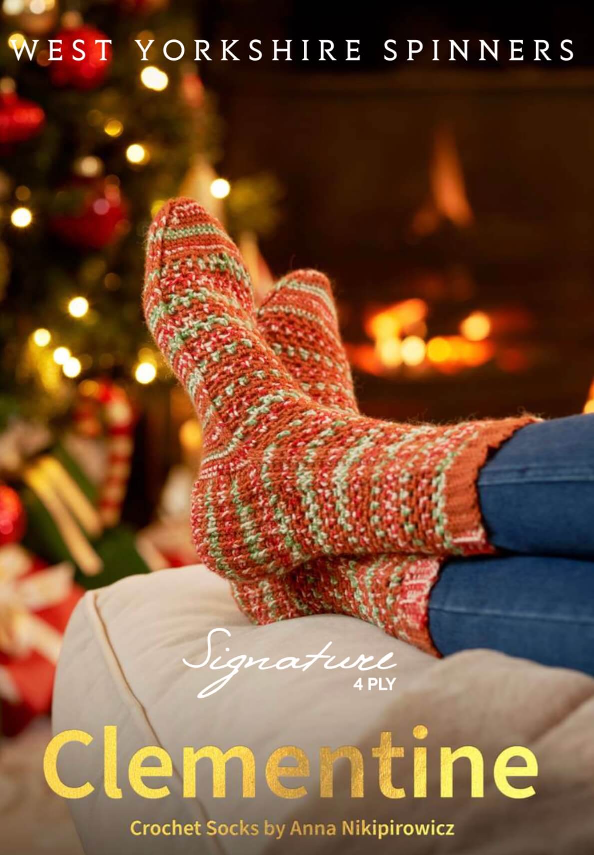 Free digital knitting and crochet sock patterns from WYS using their Signature 4ply festive Christmas shades.