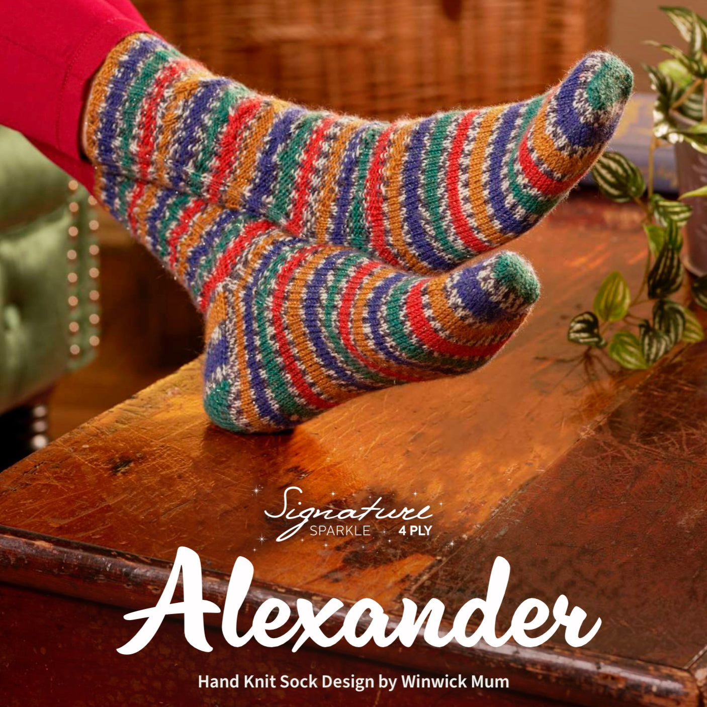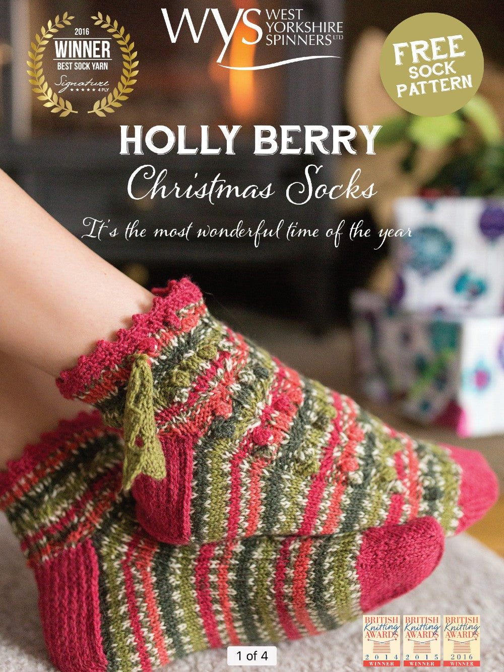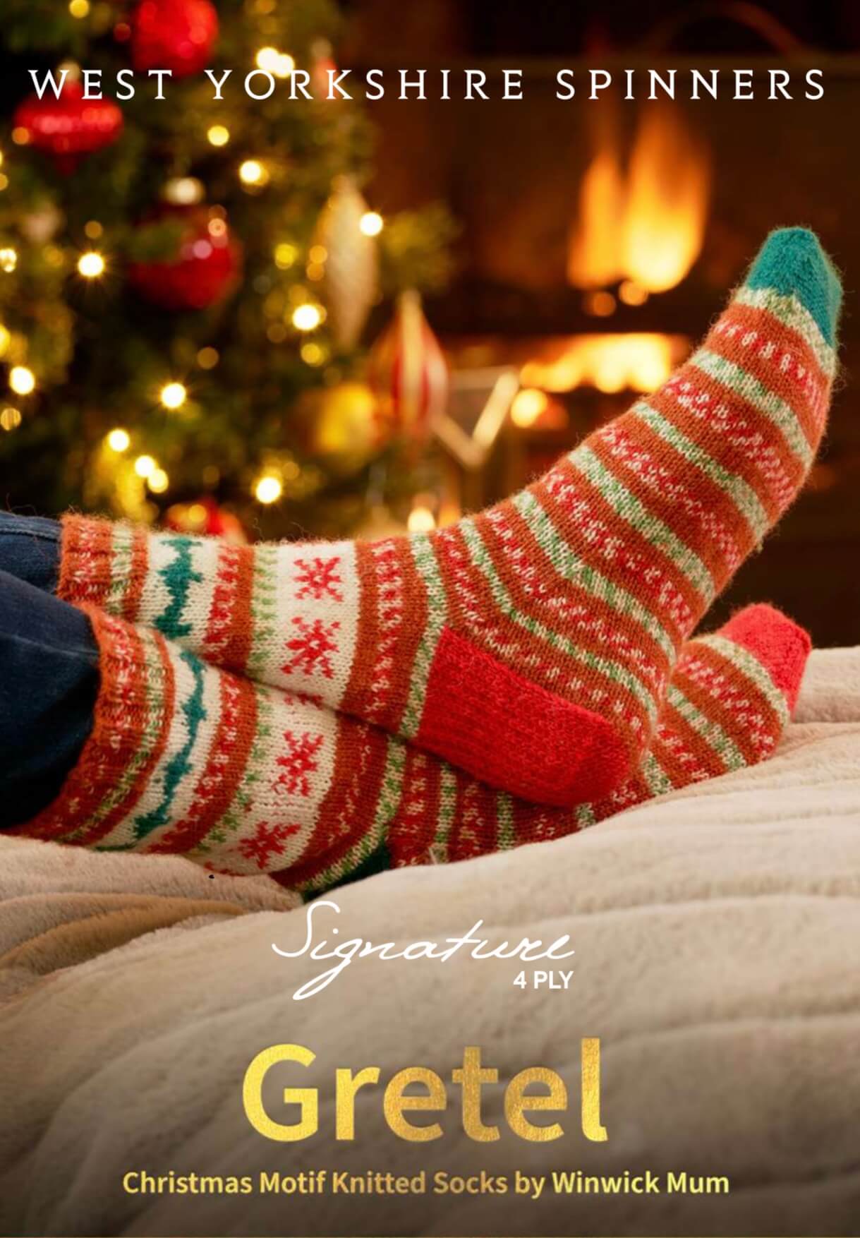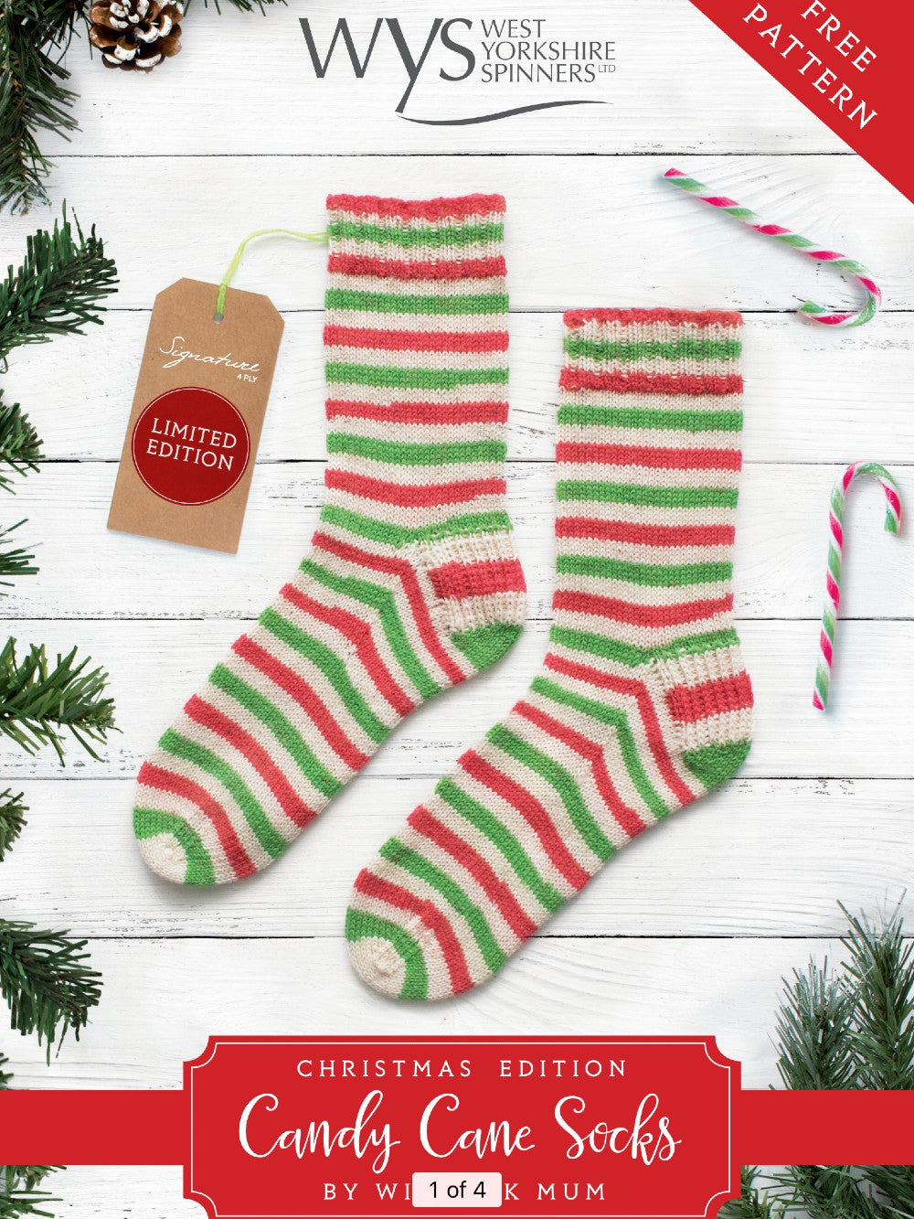 Free digital knitting and crochet sock patterns from WYS using their Signature 4ply festive Christmas shades.