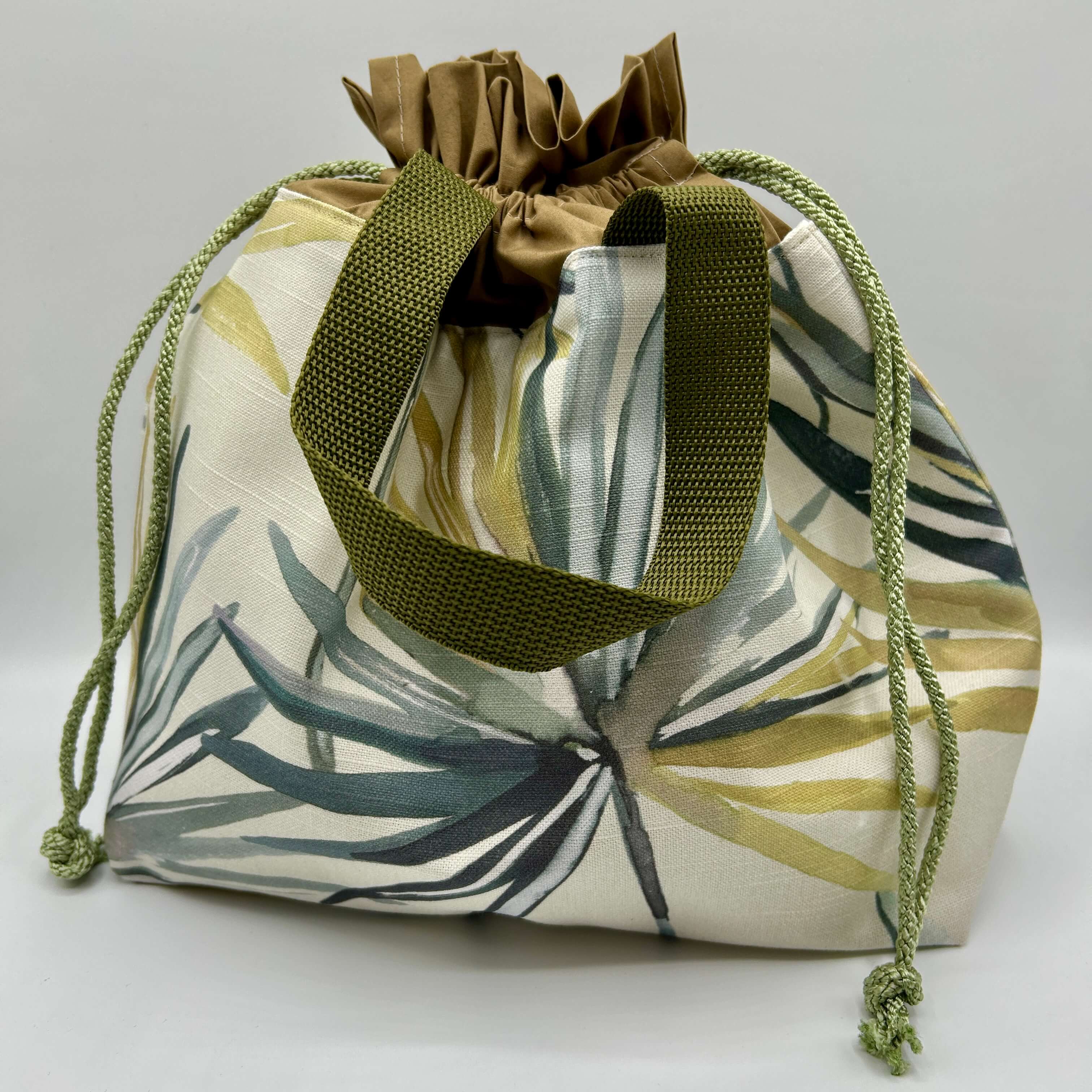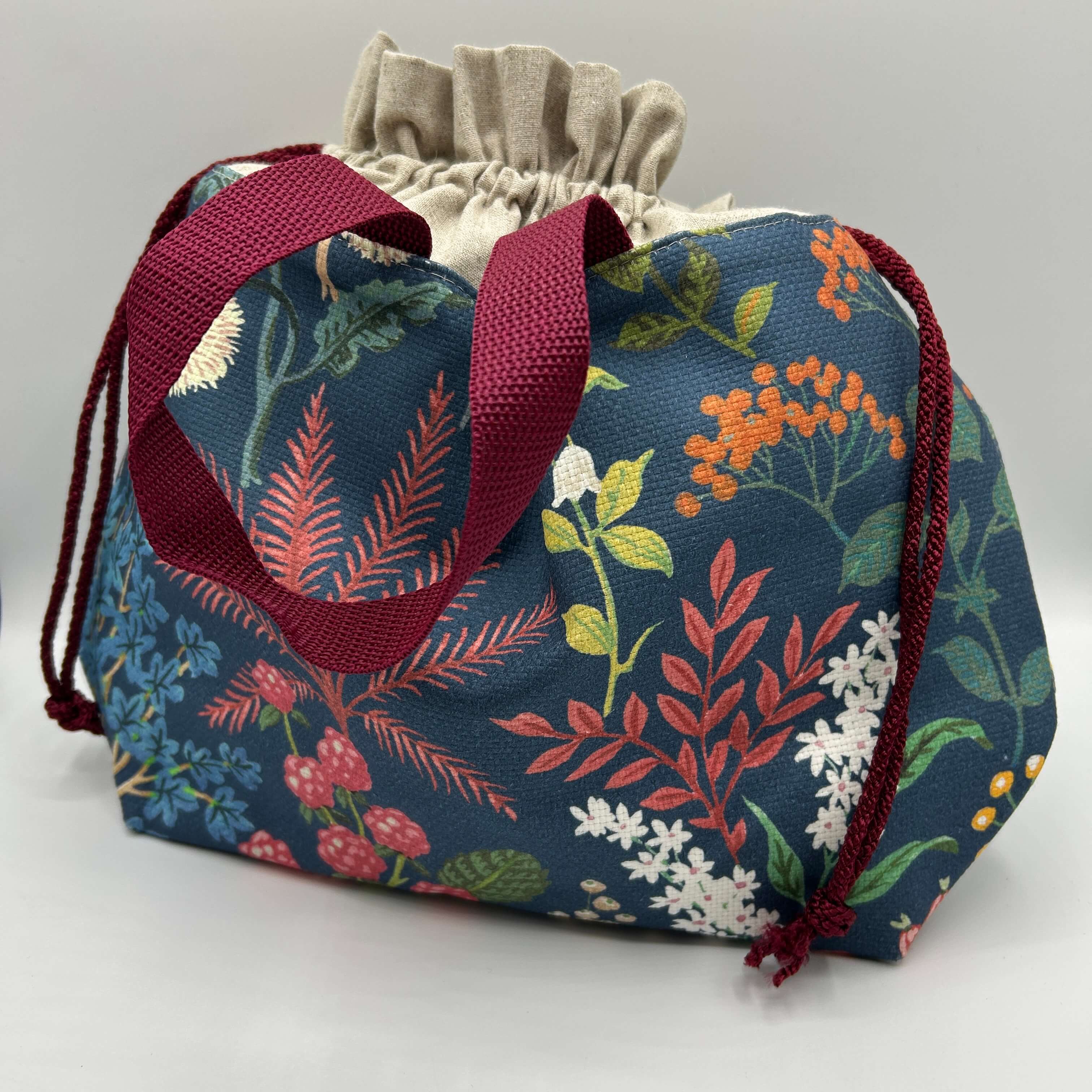 Each bag is handmade, measuring approx. 37cm wide, 32cm tall including drawstring section and 24cm tall when drawstring closed with 8.5cm base.