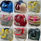 Each bag is handmade, measuring approx. 37cm wide, 32cm tall including drawstring section and 24cm tall when drawstring closed with 8.5cm base.