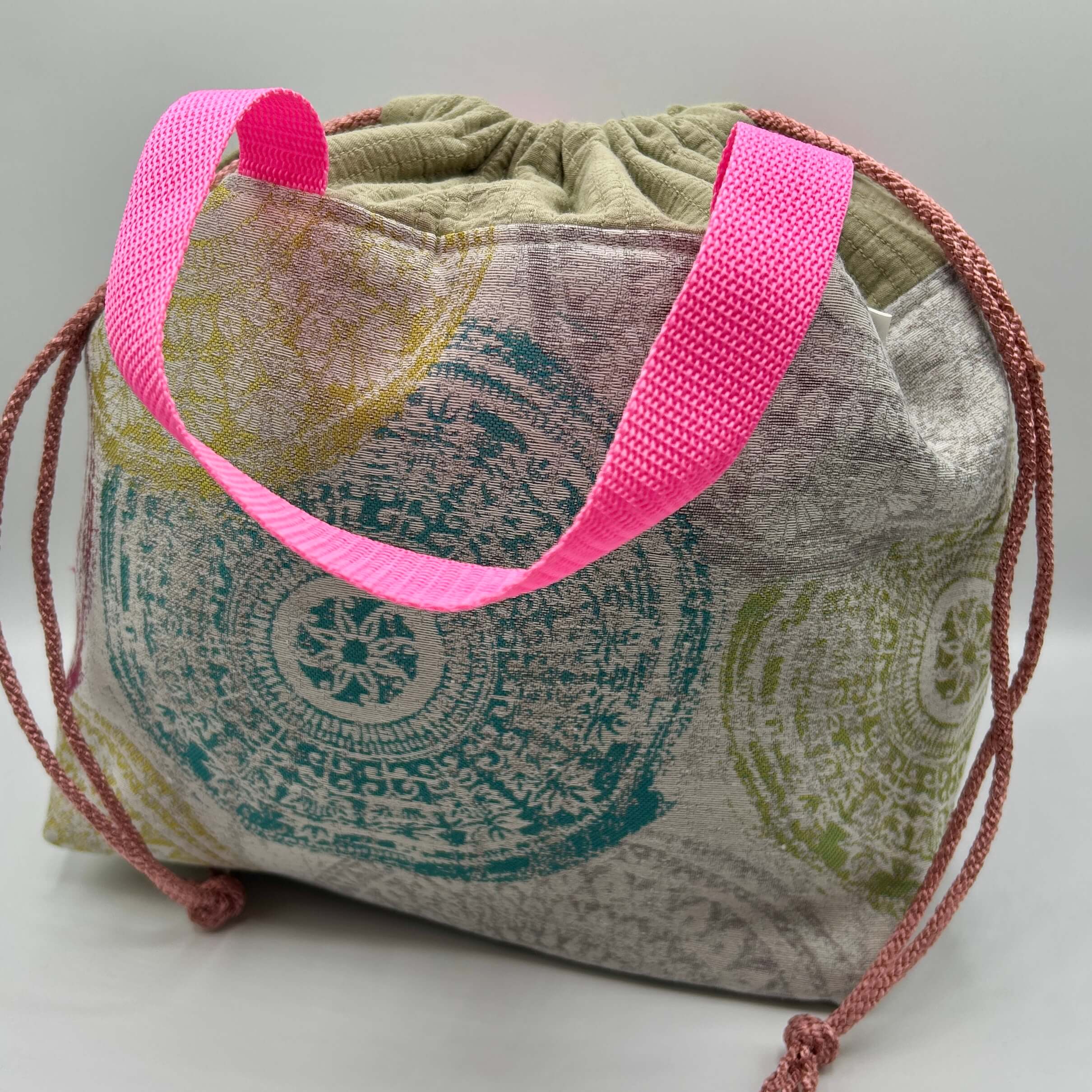 Made with sturdy material, these project bags have a tight drawstring closure and stand upright so can be used as a yarn bowl too.