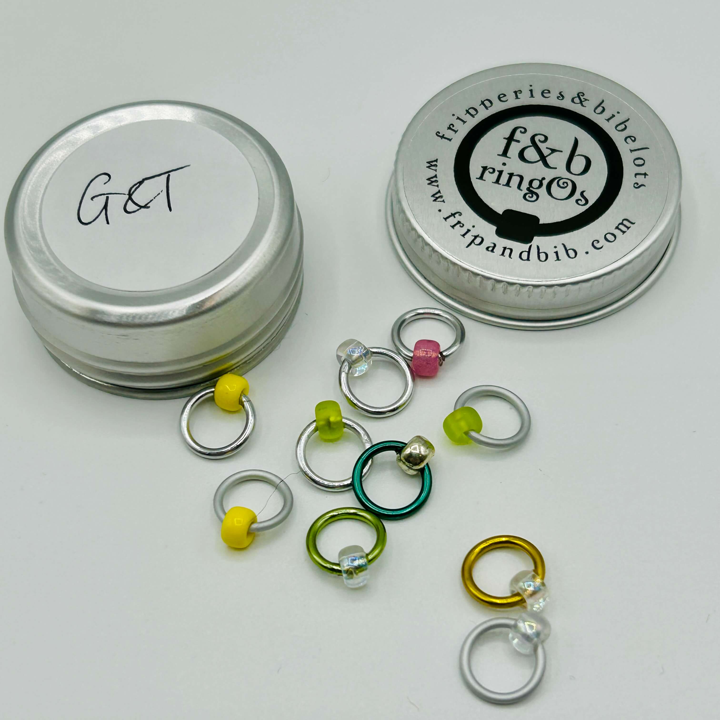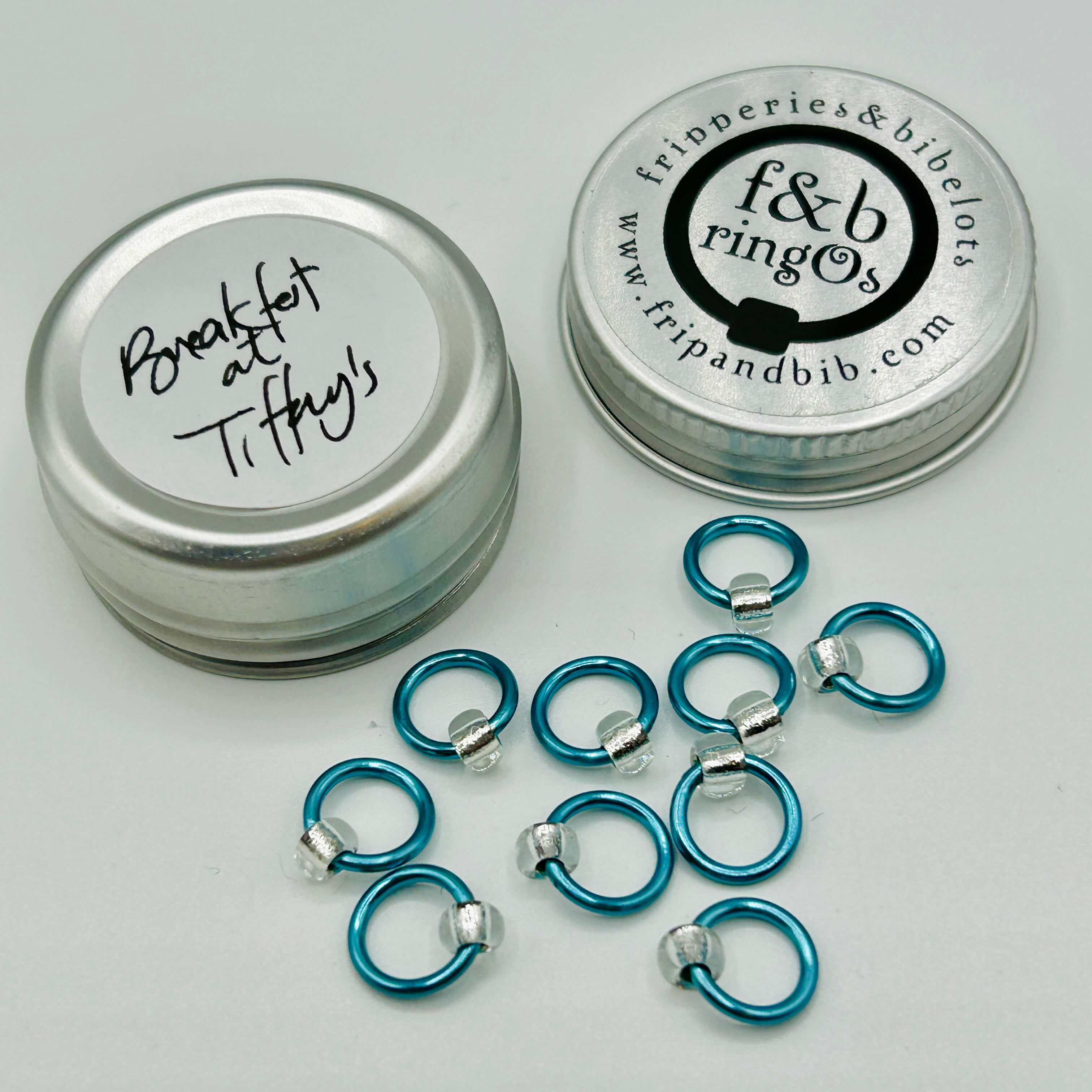 RingOs are made from lightweight anodised aluminium rings. They sit on your knitting needles between stitches and slide effortless along your needles. They are snag-free and won't dangle or tangle in your finer lace and sock yarns.