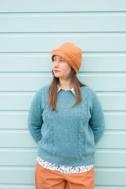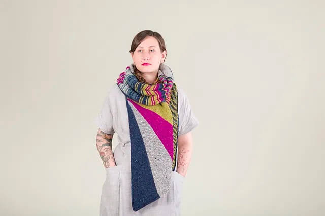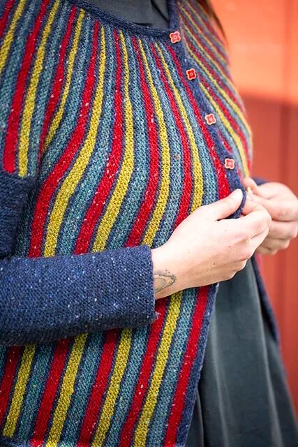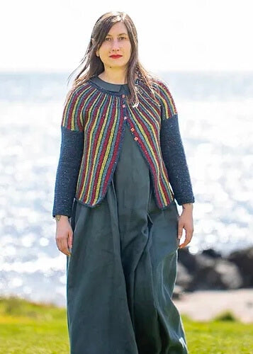The techniques are all contemporary, but there’s a nod to classic twentieth-century knitting style as well: narrow garter-stitch stripes meet modern short row shaping, while slipped stitches and Art Deco chevrons are incorporated into light knits that will work in many wardrobes.