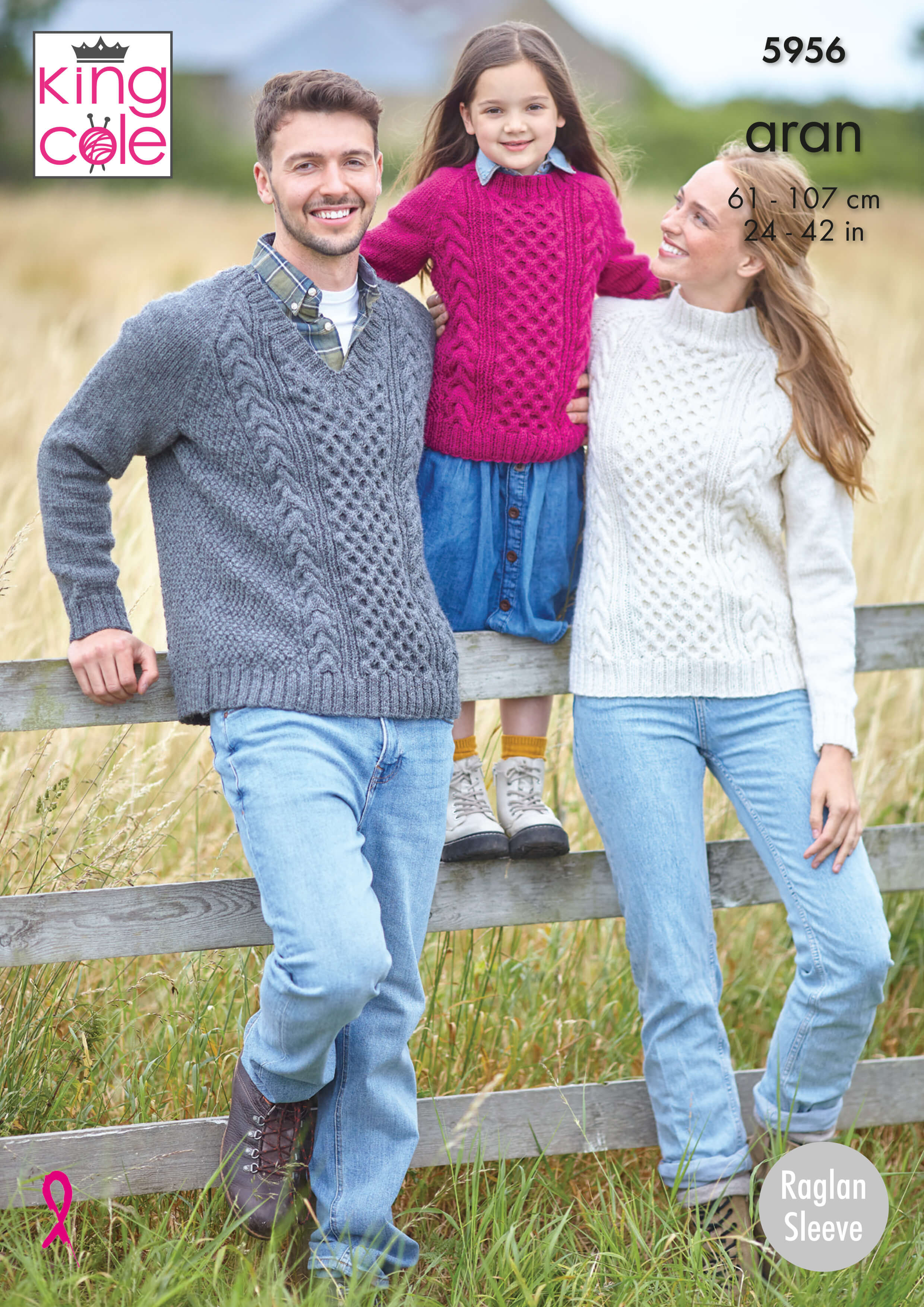 A selection of adult and children's knitting patterns designed for King Cole Wool Aran. Each leaflet includes at least 2 knitting designs.