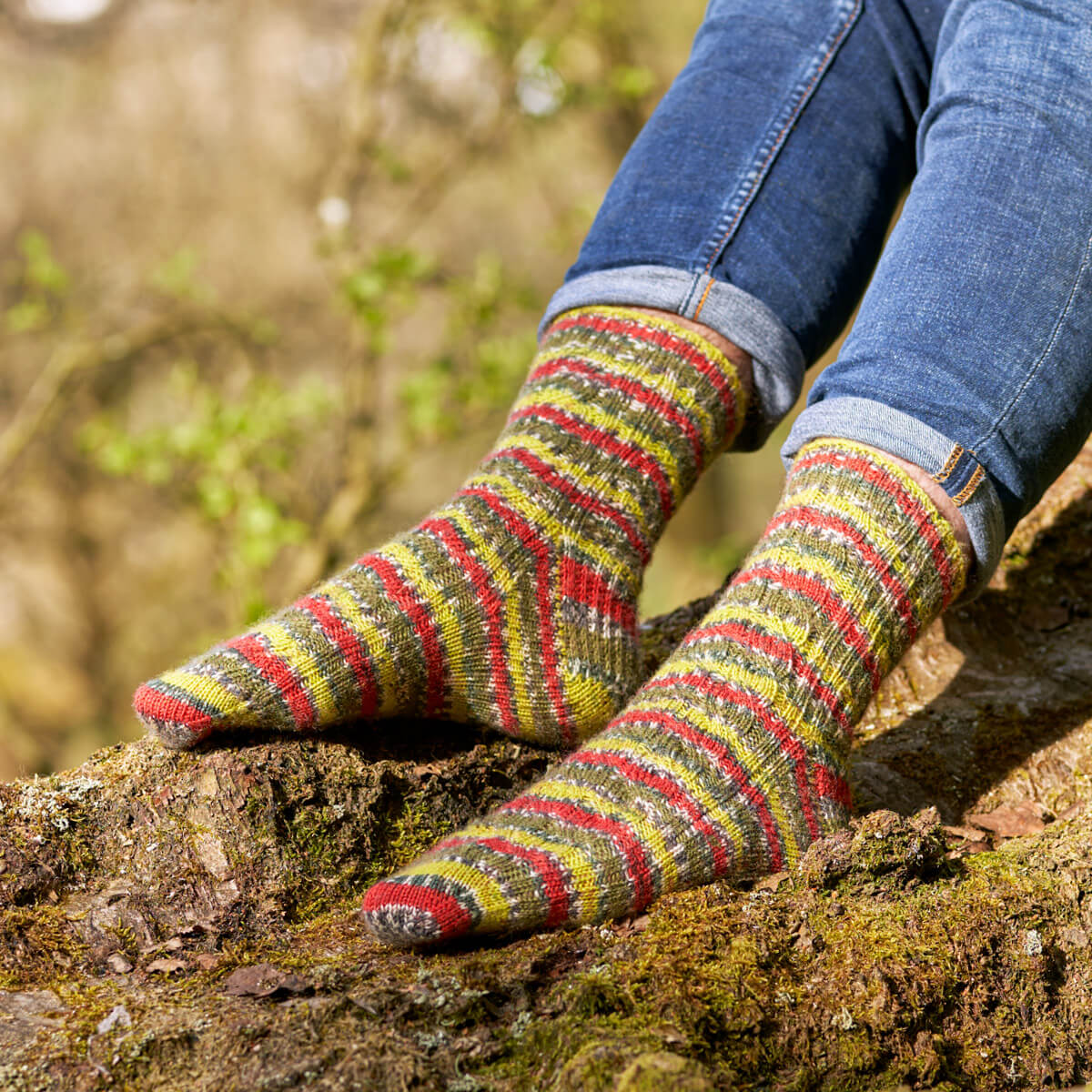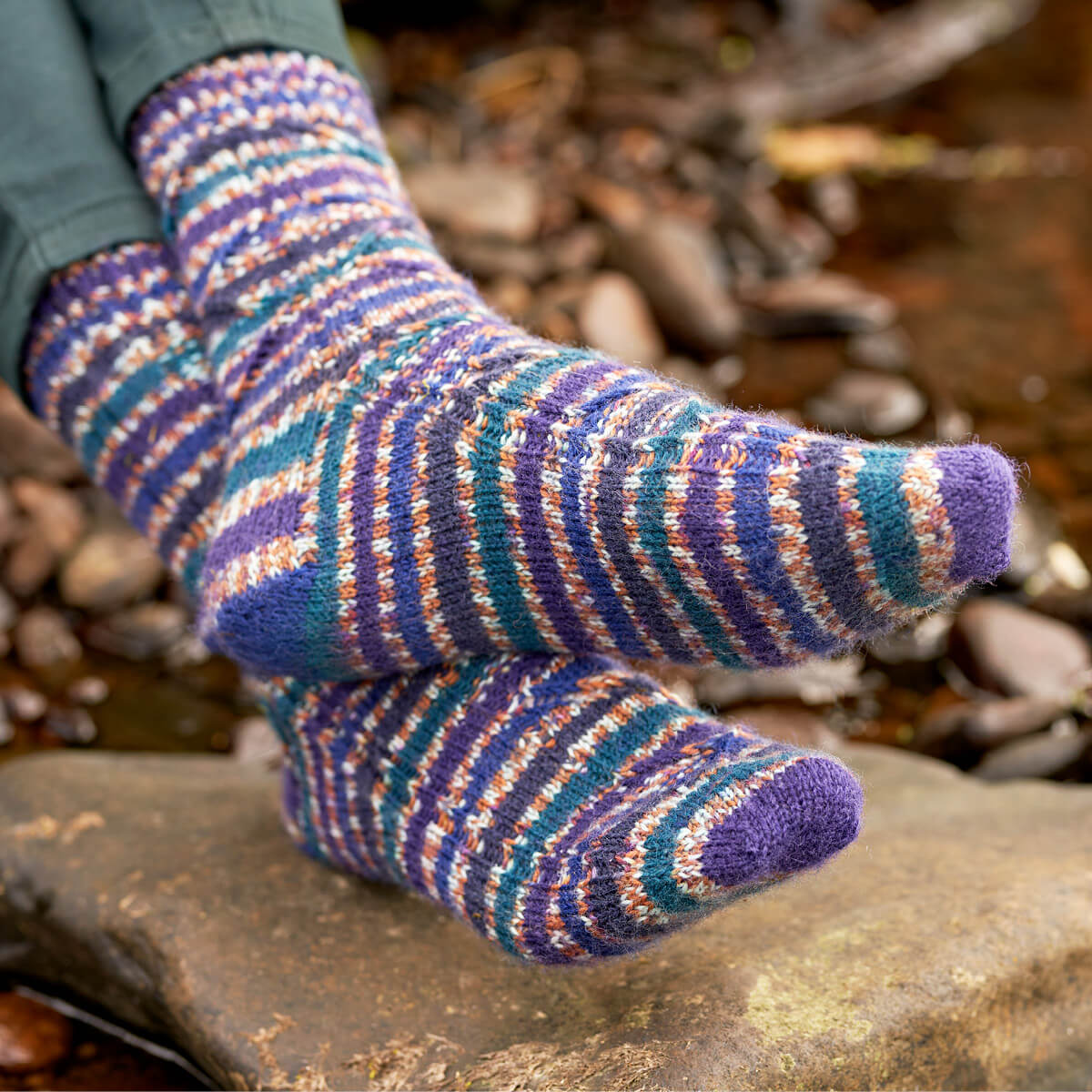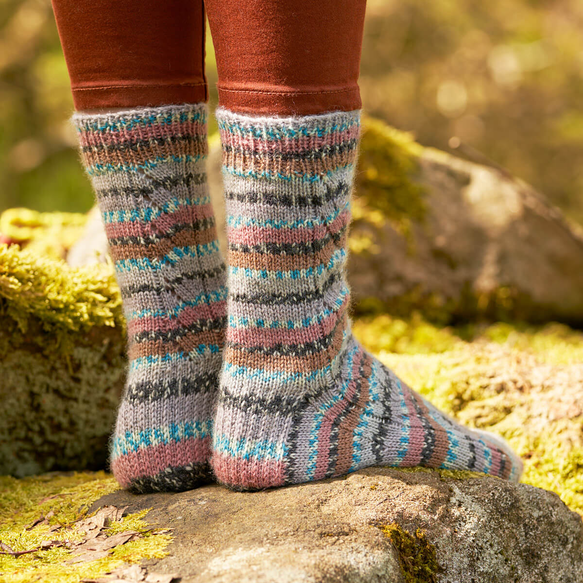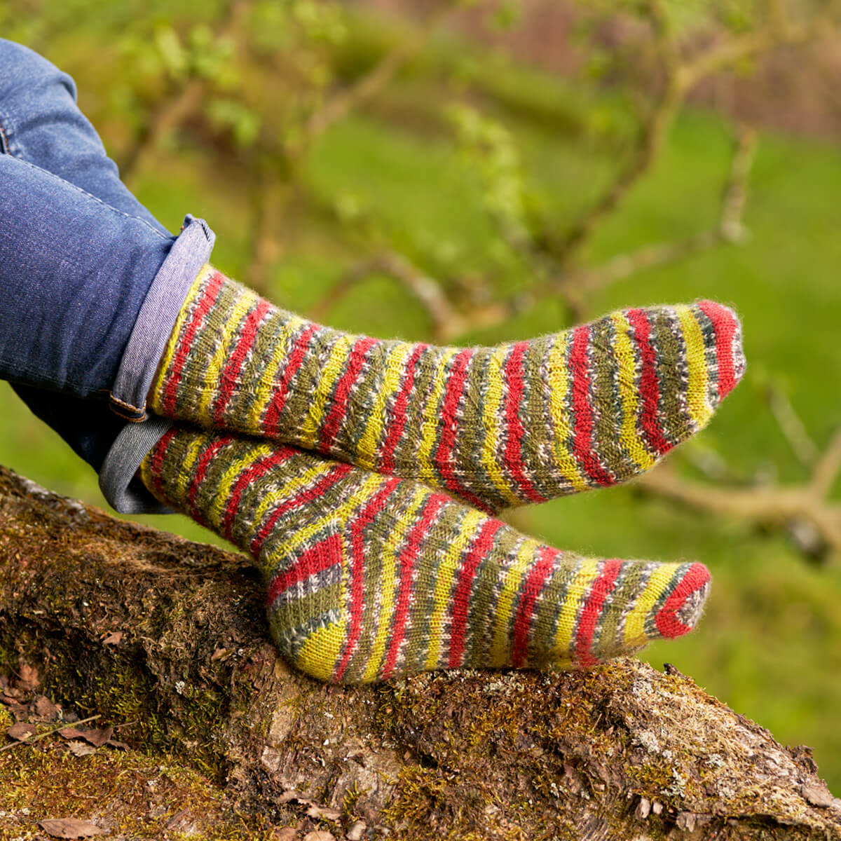 Using the new shades of West Yorkshire Spinners Signature 4ply Country Birds, Christine aka Winwick Mum has designed 4 new sock patterns.