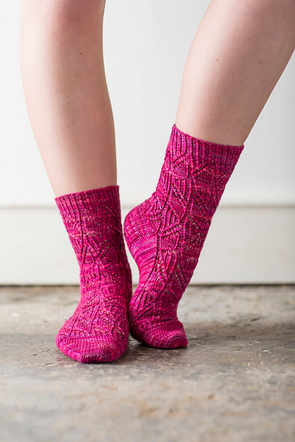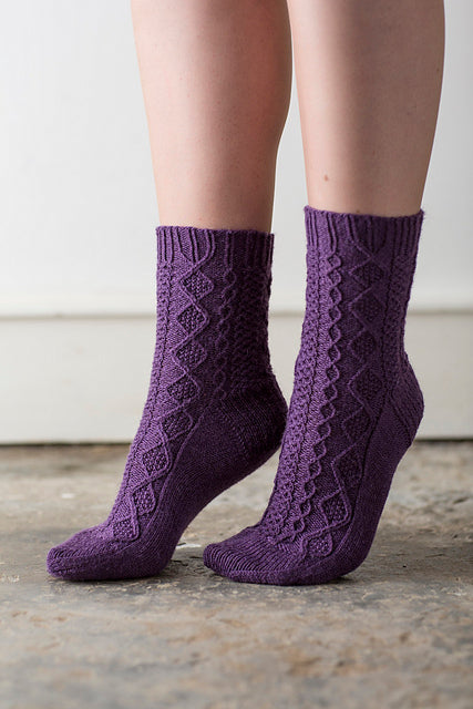 These well-written patterns are accompanied by clear photography by Jesse Wilde, as well as step-by-step tutorials for techniques such as kitchner stitch and afterthought heels. Patterns use a variety of skills, including cabling, grafting, lace and twisted stitches and provide a great opportunity to try out new stitch patterns. Each design is balanced and well thought-out, giving both experienced and novice knitters the chance to create socks that are beautiful and wearable, while being fun to knit.