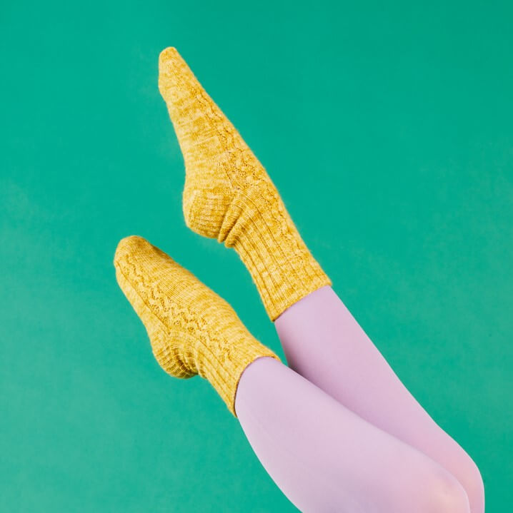 Ready Set Socks is an ultimate guide to sock-making. The book includes ten unique knitting patterns written for both 4-ply and DK-weight yarns, so 20 sock designs!