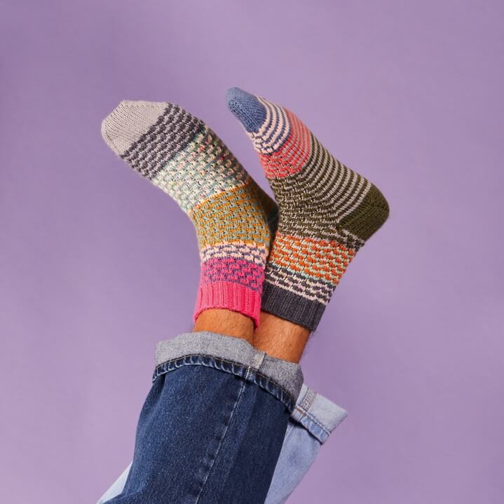 From simple and speedy stocking and ribbed socks, to fancy mosaic knitting colour combinations, you’ll find your perfect pair with this compendium of patterns to come back to again and again