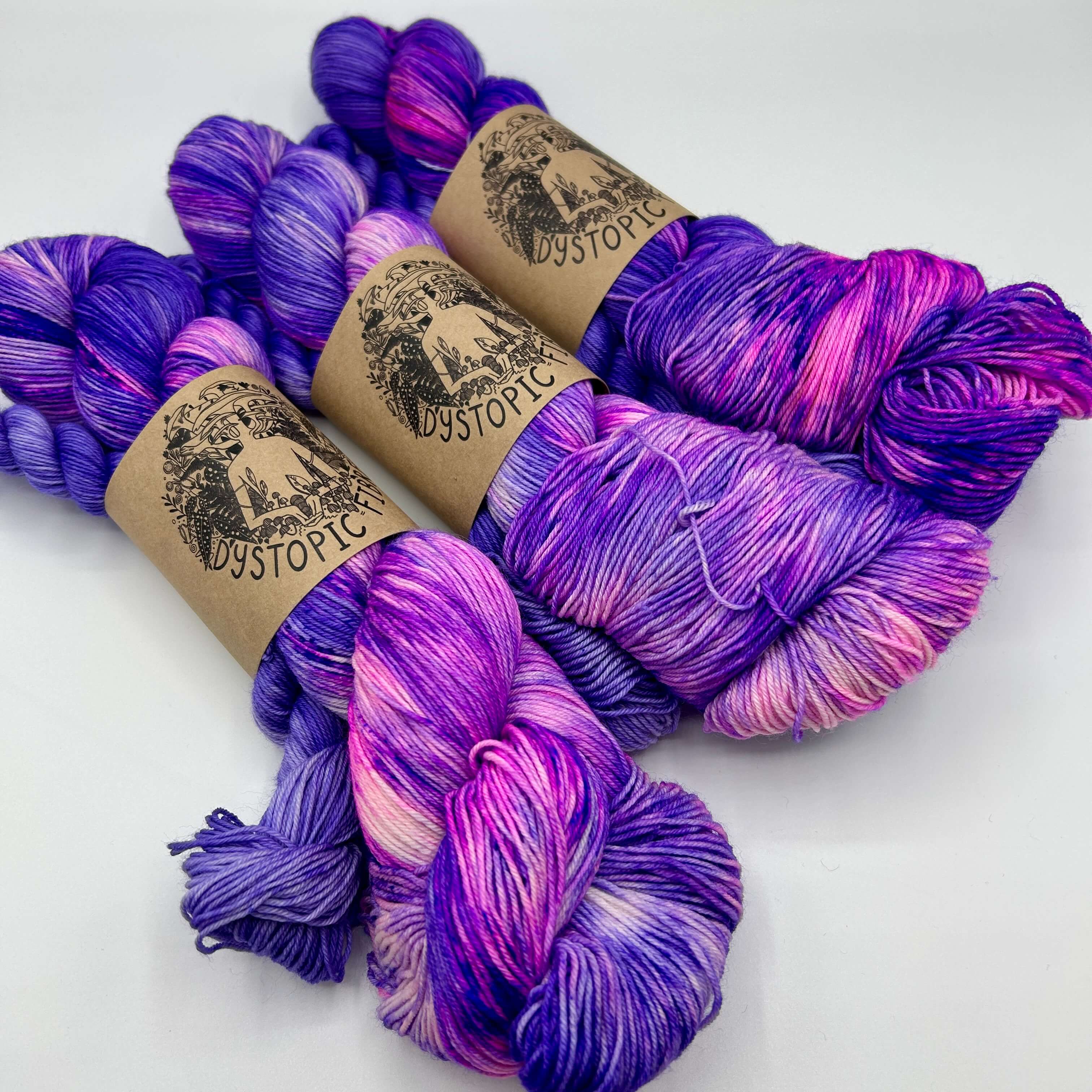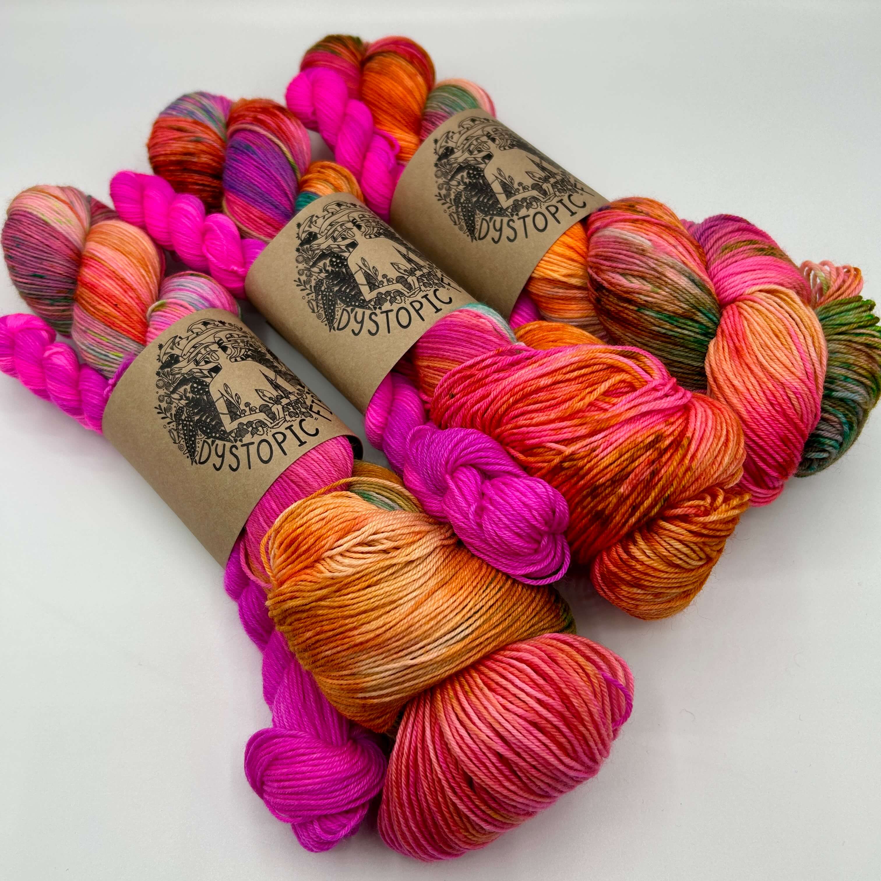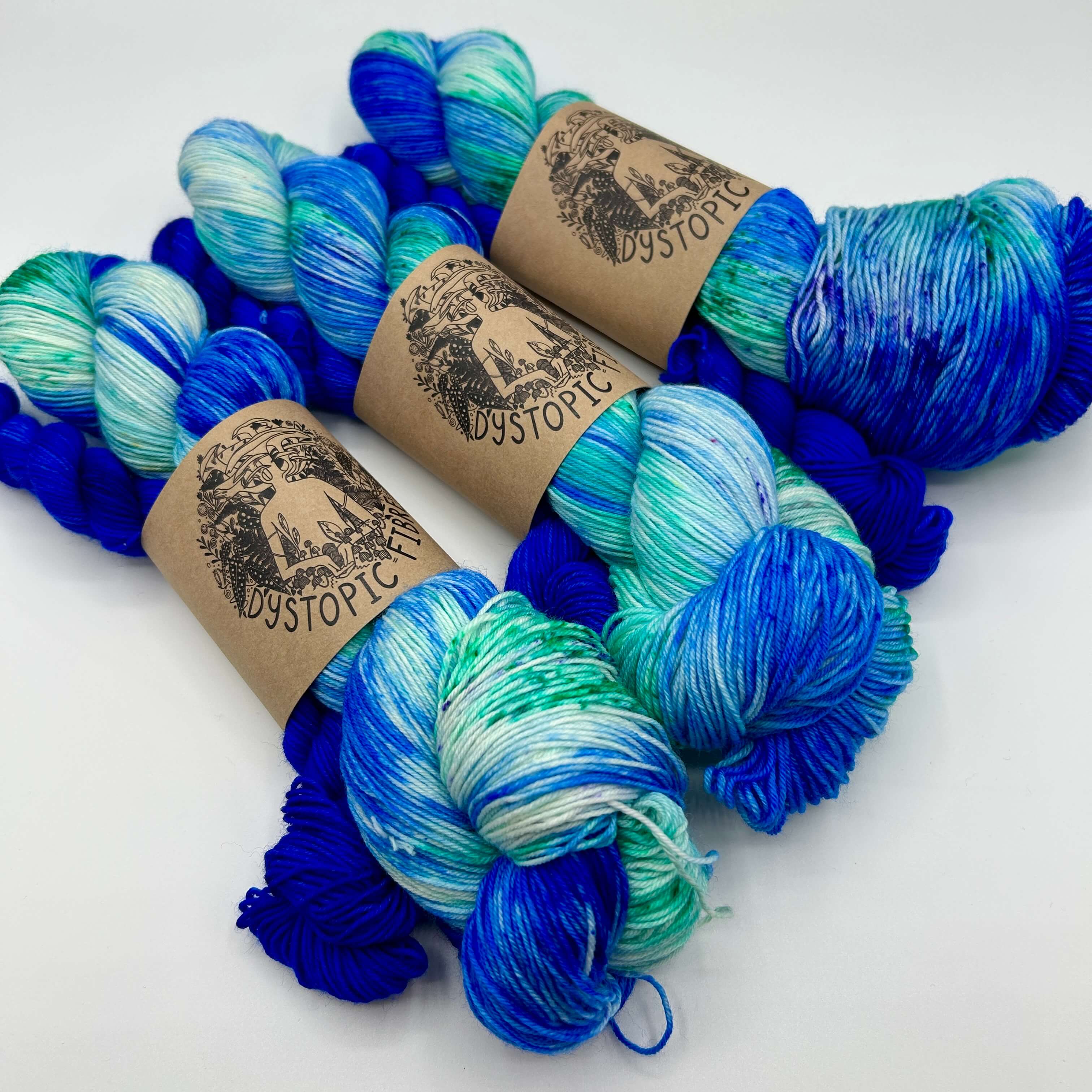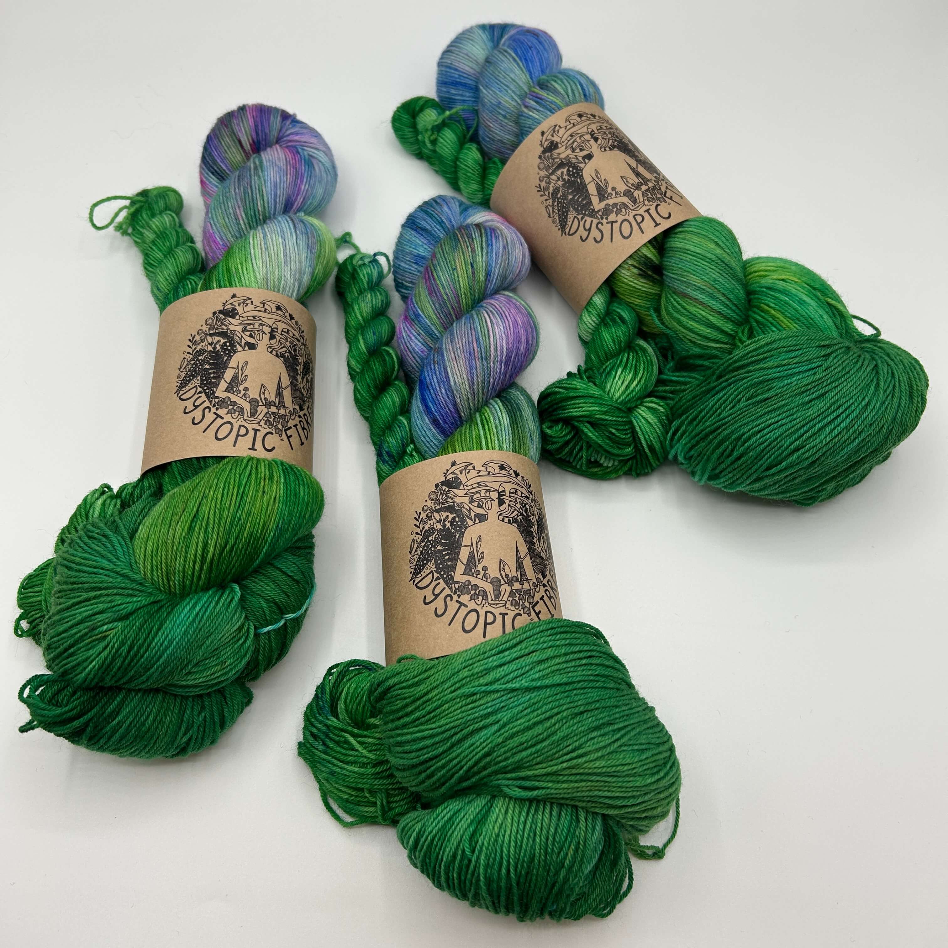 Dystopic Fibre is based in Glasgow. Jon takes inspiration from nature and science fiction. Combined with his highly saturated dying style he creates both complex neutrals with layers of speckles and in-yer-face neons for when you need to stand out.