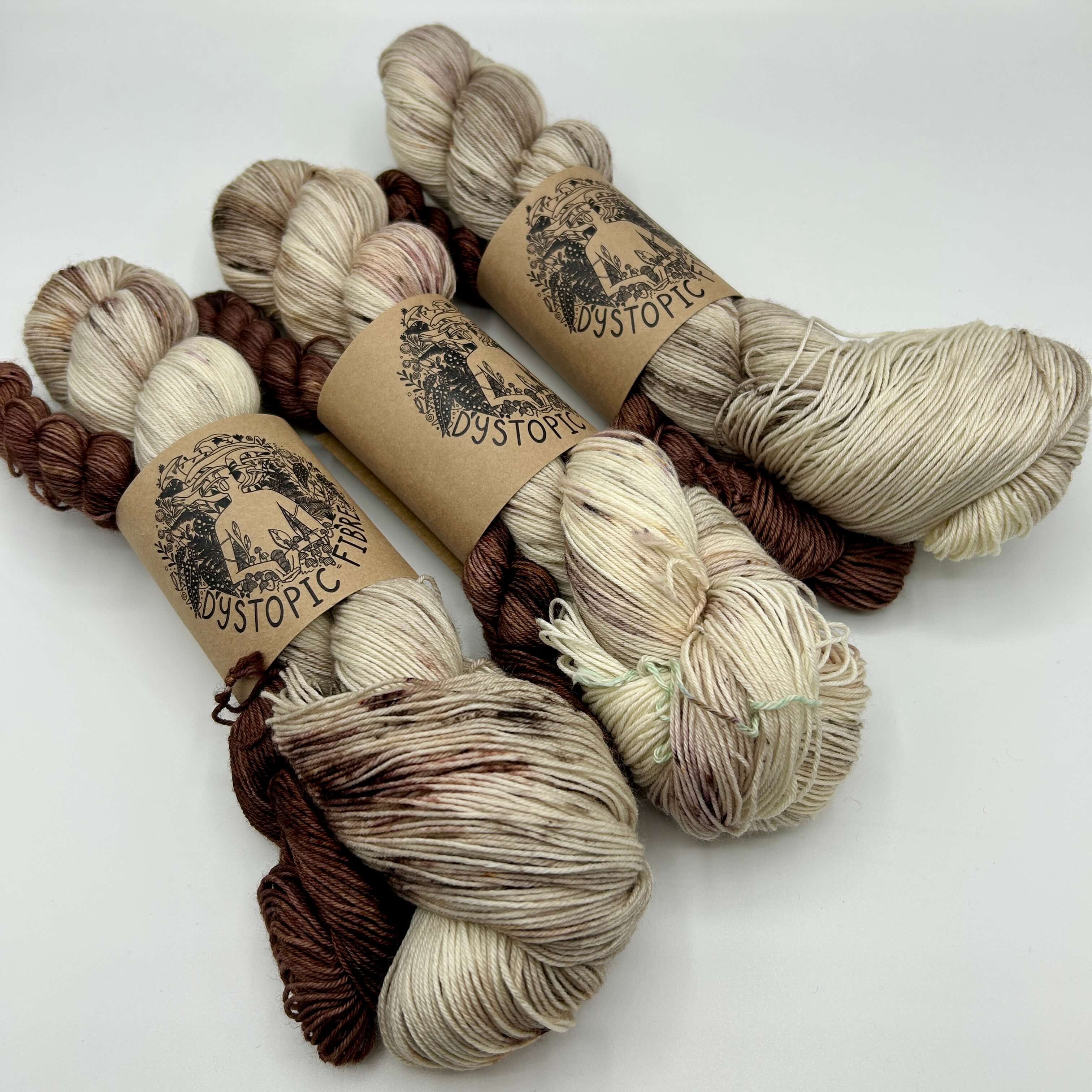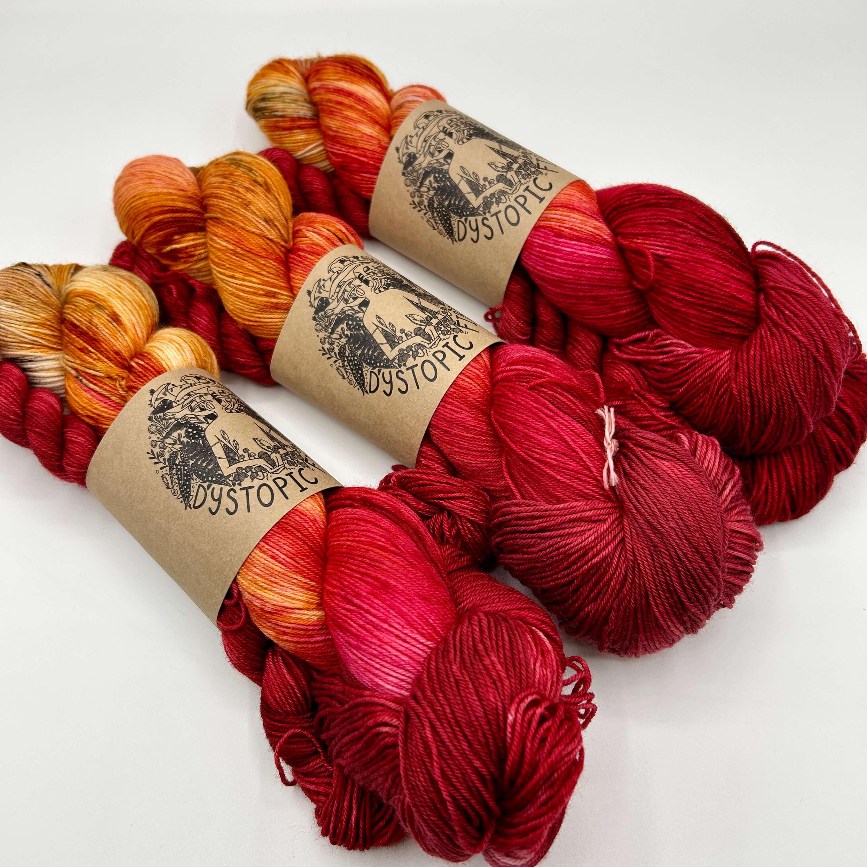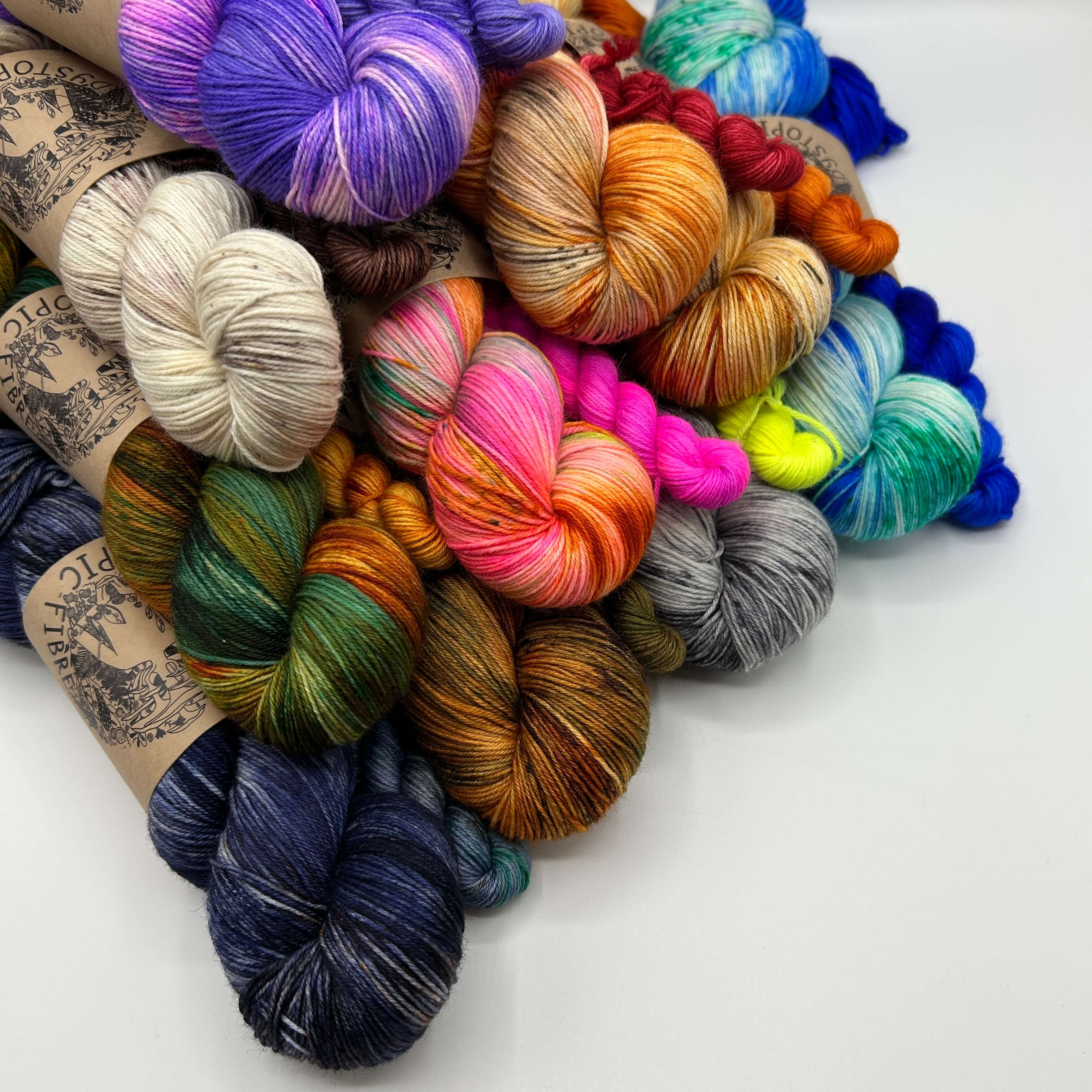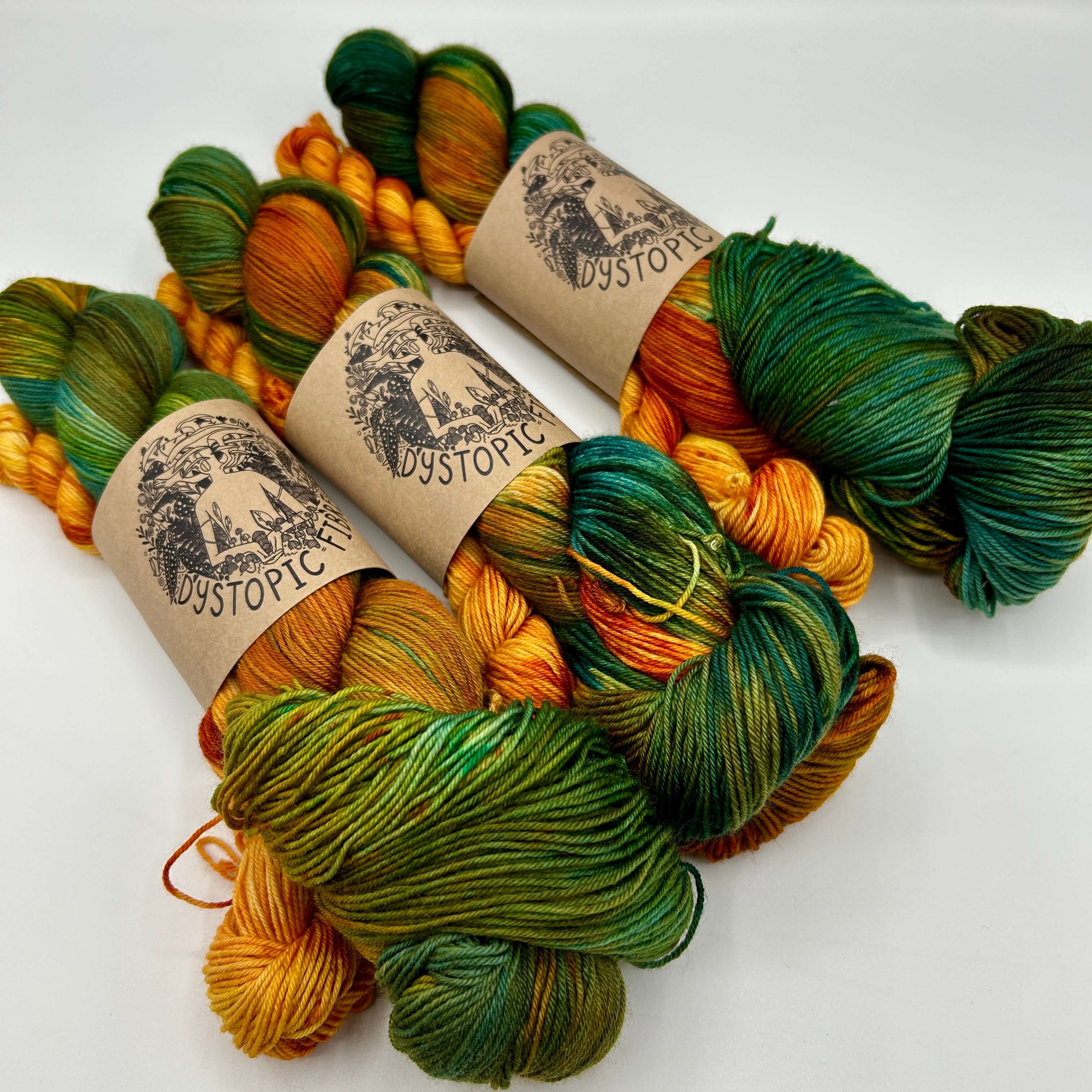 Dystopic Fibre is based in Glasgow. Jon takes inspiration from nature and science fiction. Combined with his highly saturated dying style he creates both complex neutrals with layers of speckles and in-yer-face neons for when you need to stand out.