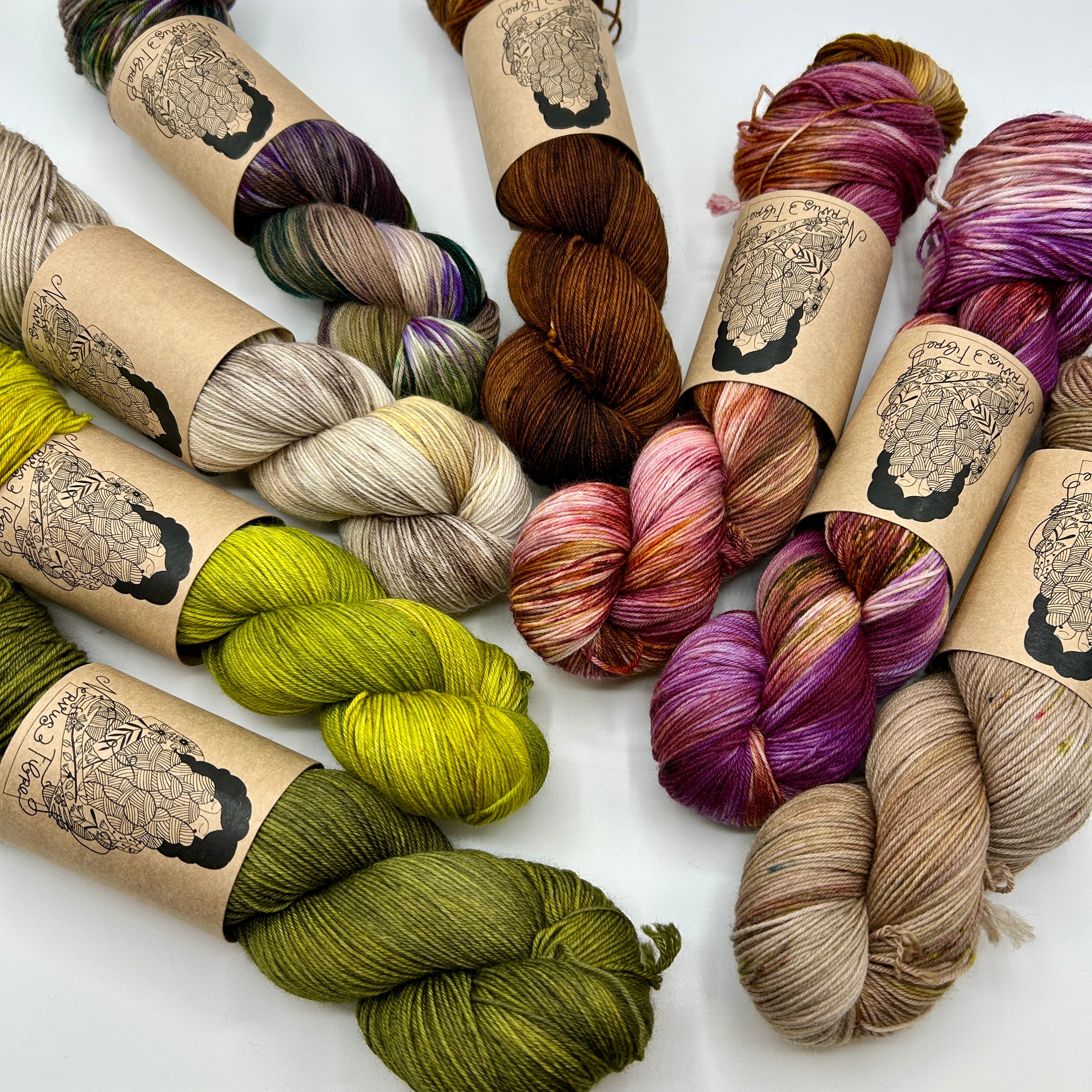 Nervus Fibre is based in Glasgow. Charlotte's rich warm colour palette has a desert glow. The shades range from subtle semi solids to layers of variegations. Watch out for teeny tiny splashes of colour too.