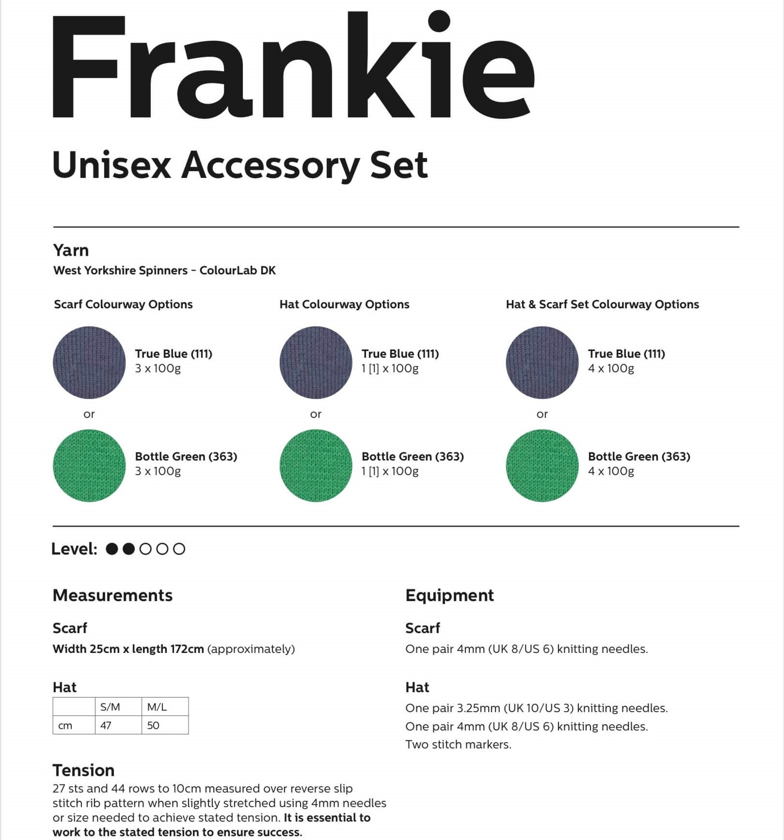 Free digital knitting pattern by Chloe Elizabeth Birch, Frankie is a scarf and hat set in a slip stitch rib pattern