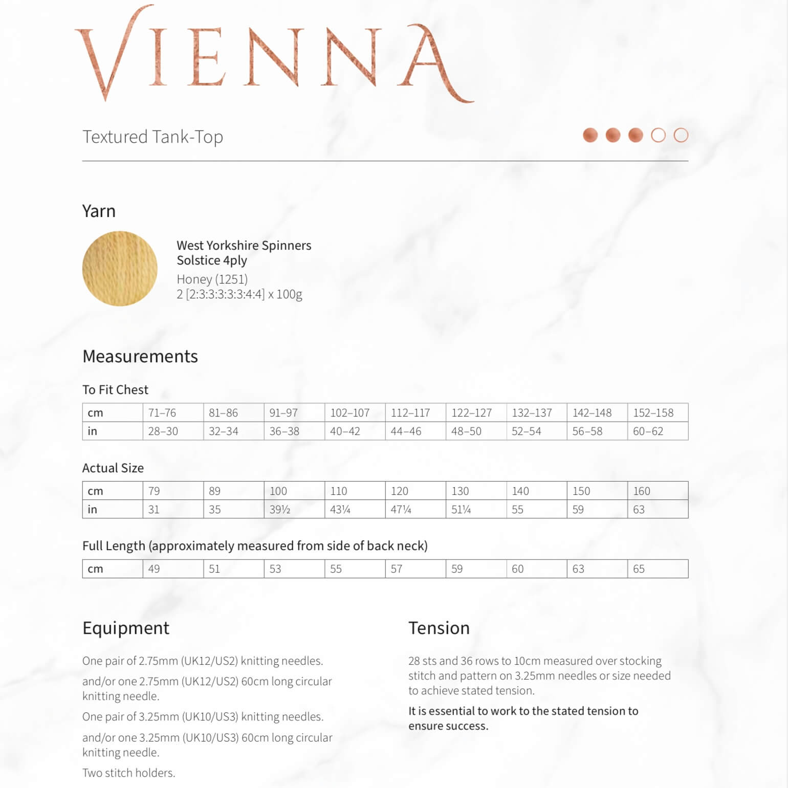 Sizes range from 28 to 62" (71 to 158cm) chest. Please check image for yarn requirements.