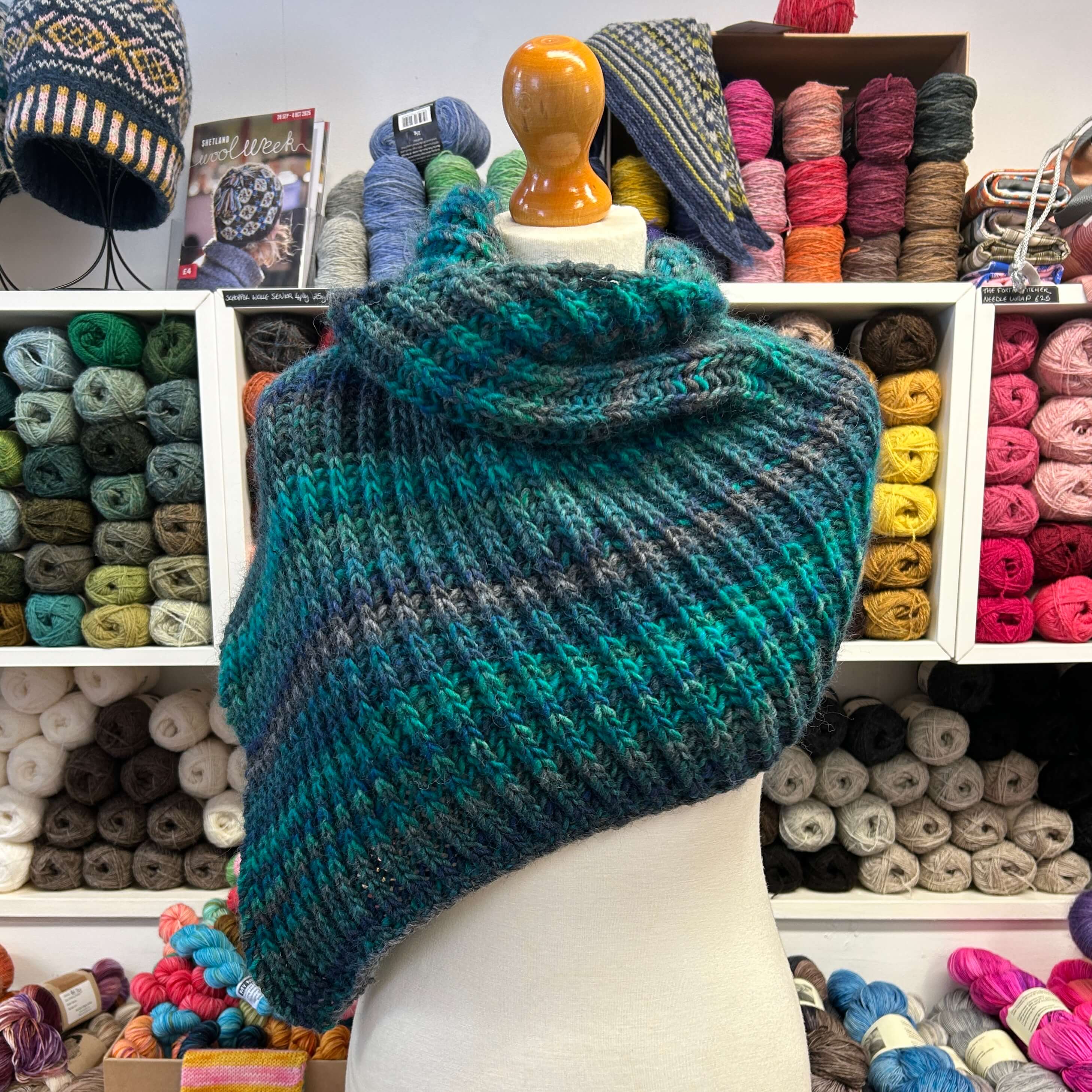 The stripes are different widths and they can be bold or give a gentle fade. Great for garments and accessories it works up quickly but despite being a chunky it’s lightweight to wear.