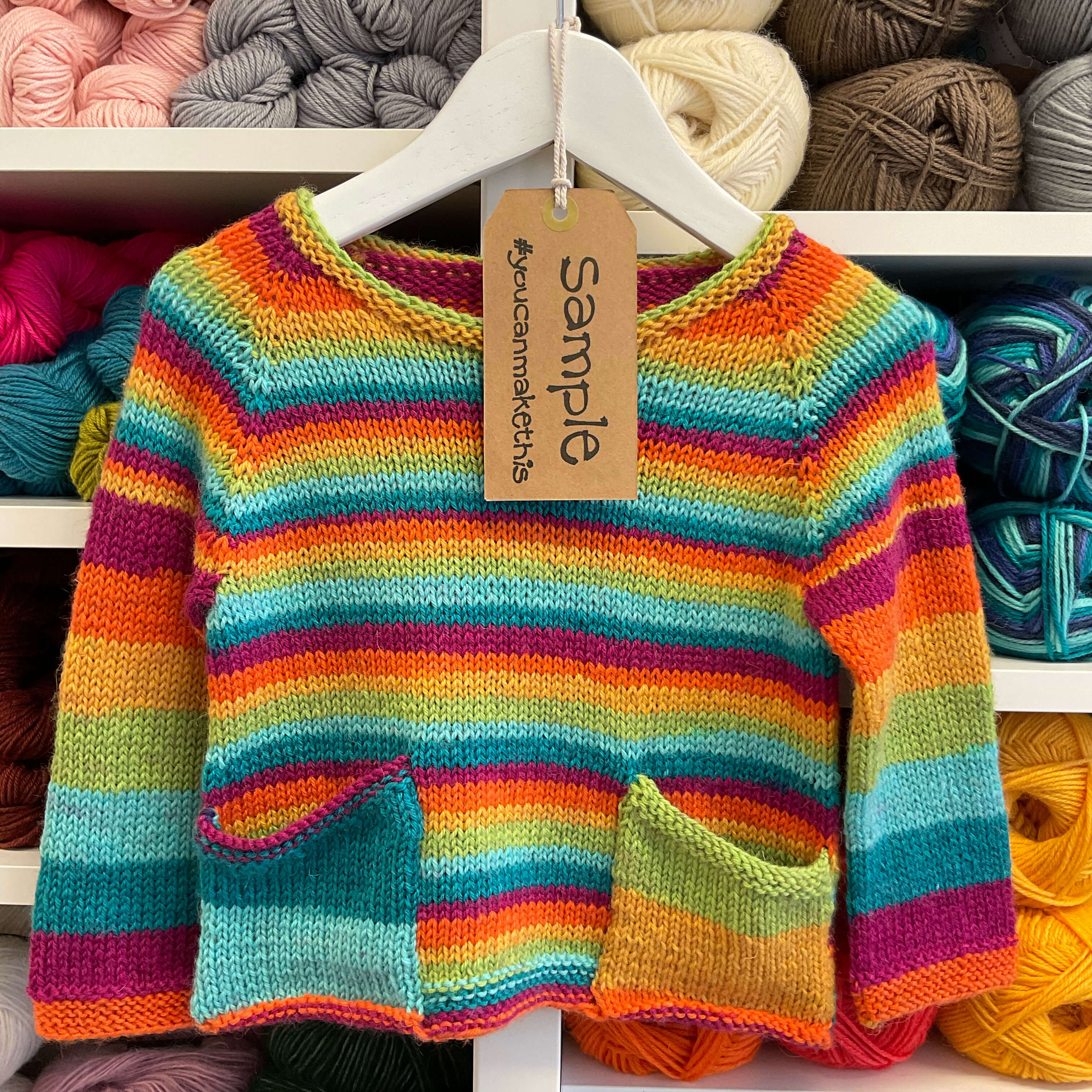 This is great option if you want 100% British wool but you want it brightly coloured, there's even 6 self-striping shades too. Robust and plump, it’s lovely to work with. It's perfect for warm garments and accessories as well as home projects too. The self striping shades are lots of fun for a child’s first project!