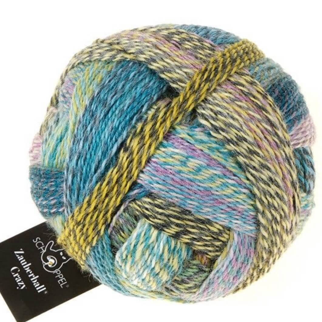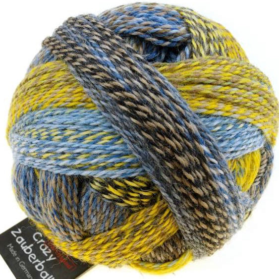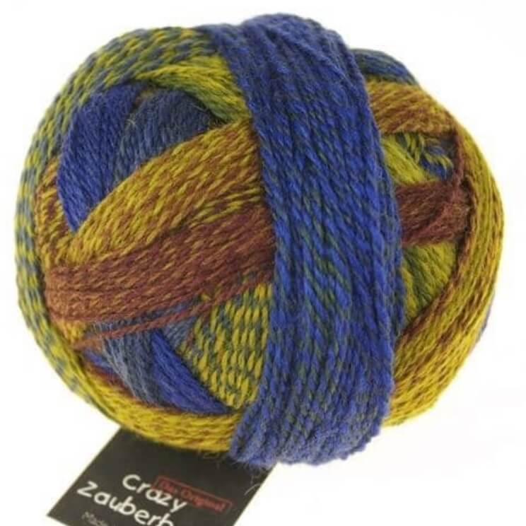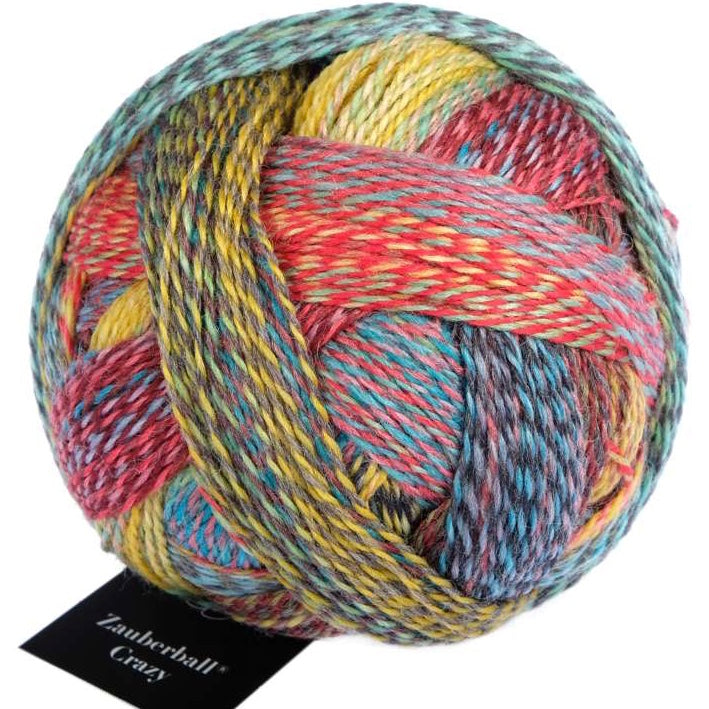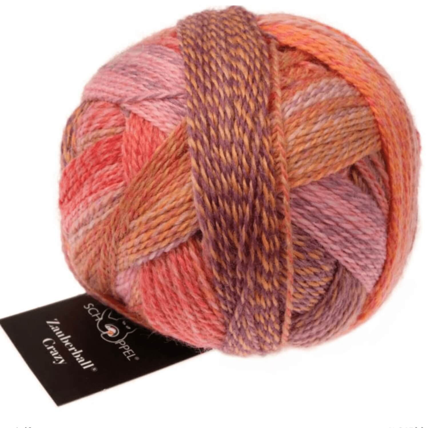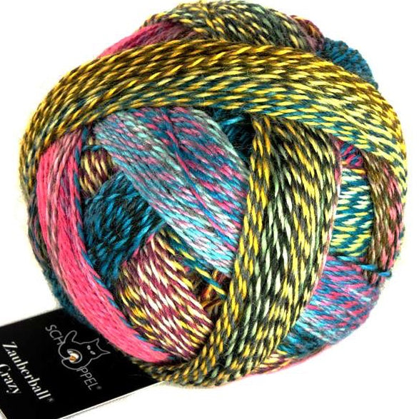 Zauberball Crazy is a colourful sock* yarn from Schoppel. It has two colours twisted together and it stripes!