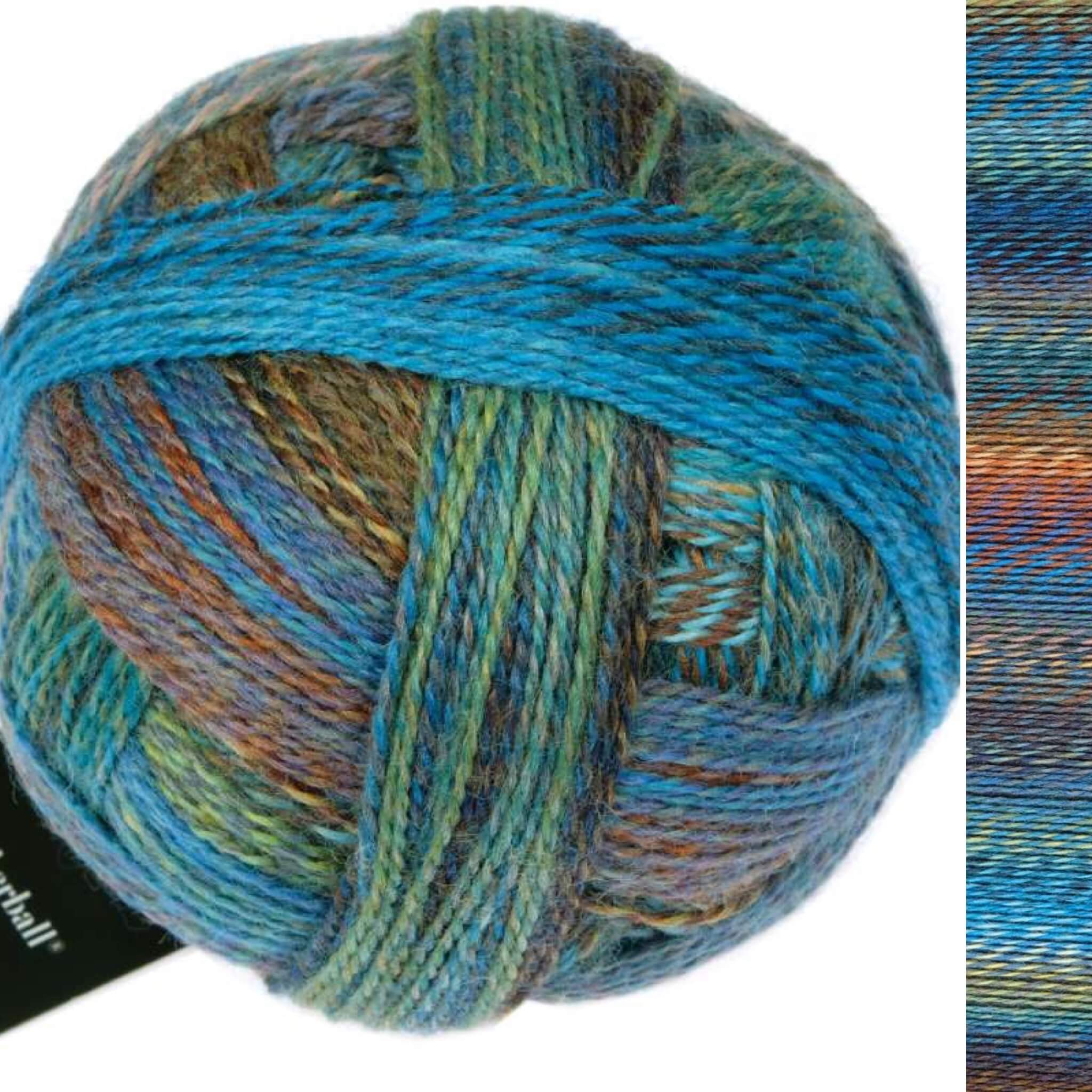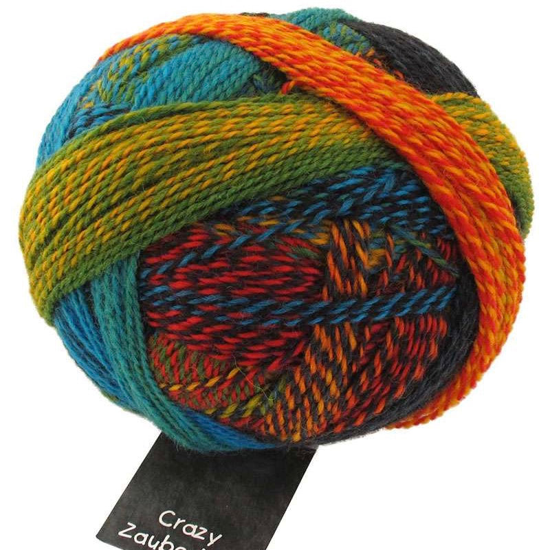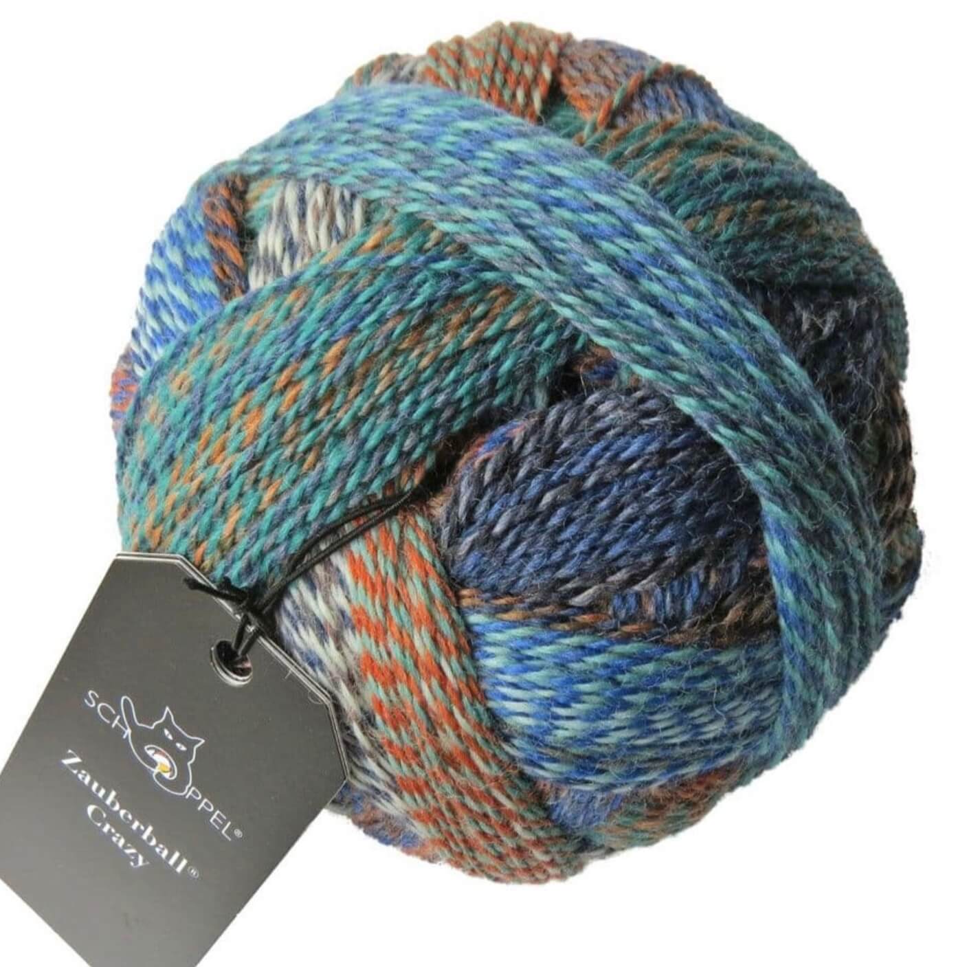 Zauberball Crazy is a colourful sock* yarn from Schoppel. It has two colours twisted together and it stripes!