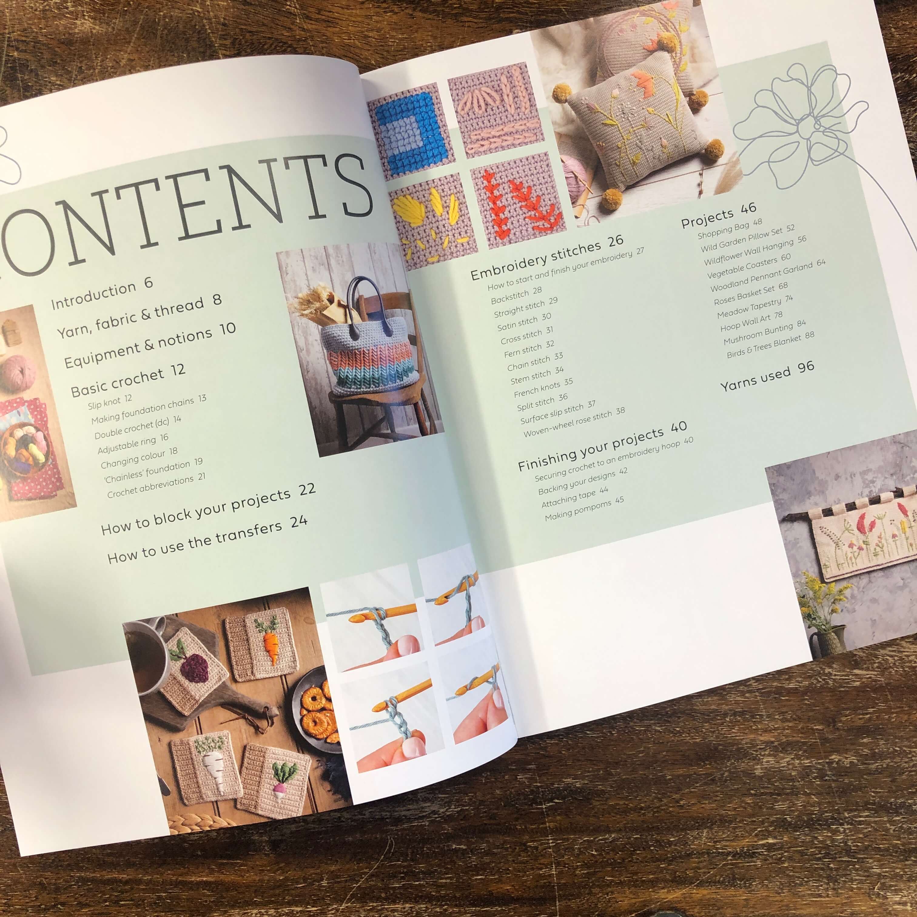 Each project begins with a crochet pattern, followed by detailed instructions on how to embroider your items. All the projects have a corresponding transfer or chart, meaning you can start embroidering straight away. To transfer, simply cut out the transfer motif and iron it onto your crochet just as you would transfer onto regular fabric.