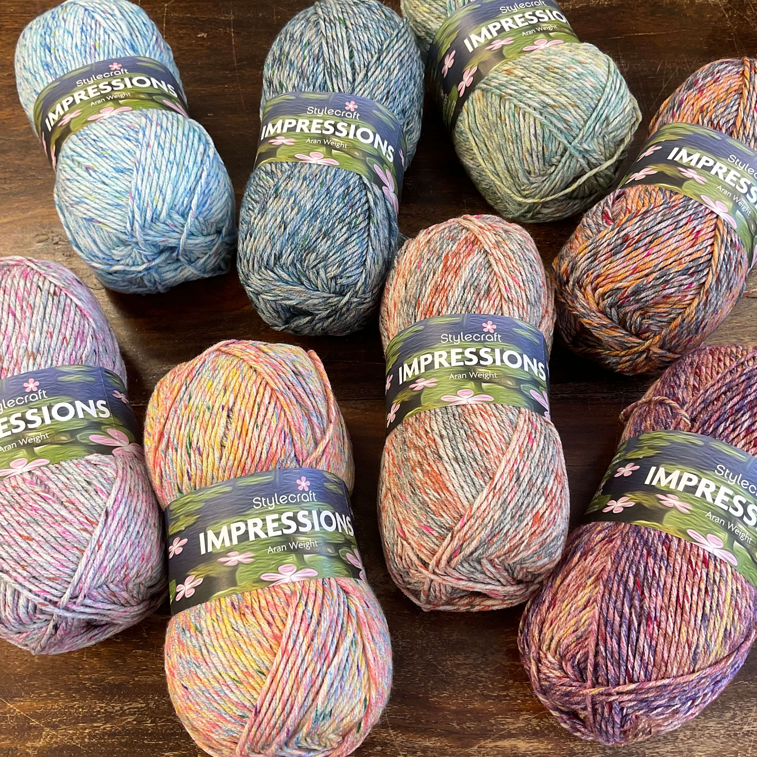 New from Stylecraft a super soft aran weight yarn in a range of soft impressionistic shades.