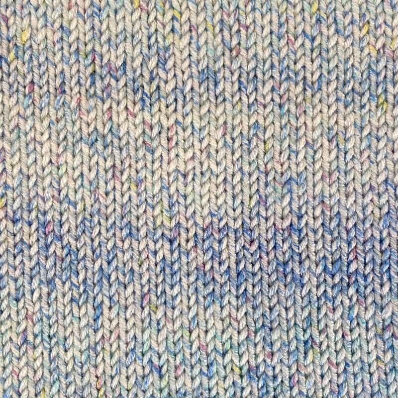 Impressions is inspired by impressionist paintings. The yarn is smooth and soft and each shade is a subtle mixture of stripes and daubs which gives a beautiful dappled effect when knitted or crocheted. The colour effect can hide any uneven stitches but can still show off texture too. So you can knit this plain and simple or you can add cables and bobbles for a traditional aran pattern.