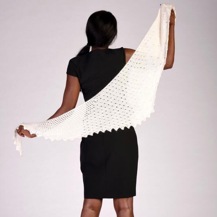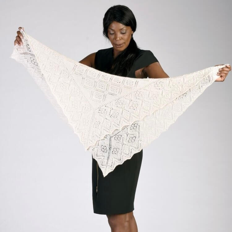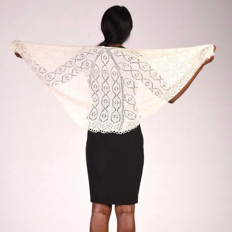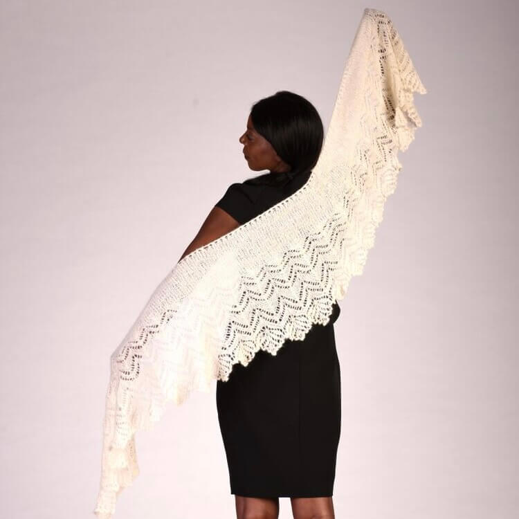 Seven designs for lace shawls wraps and cowls in a selection of  lace weight and 4ply yarns.