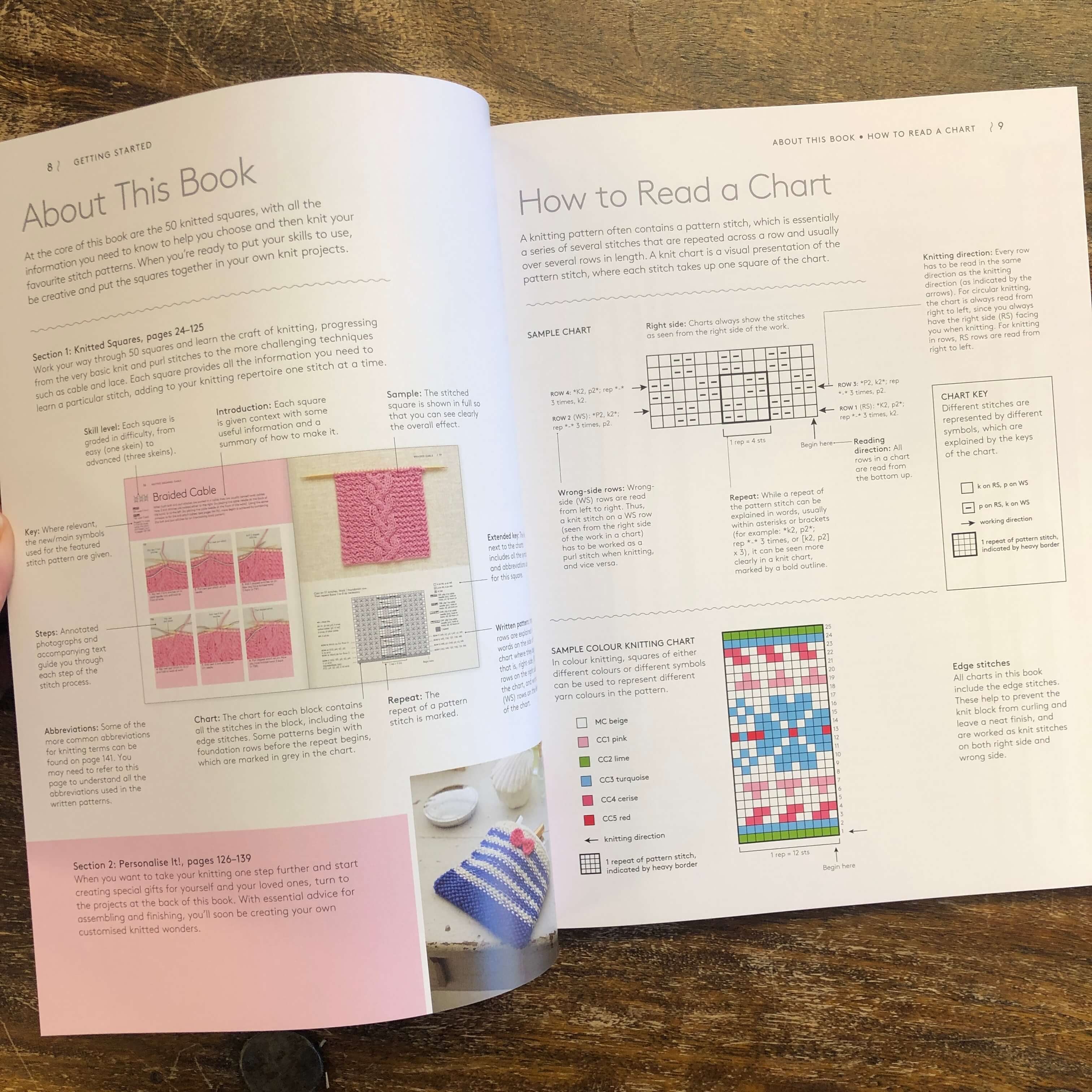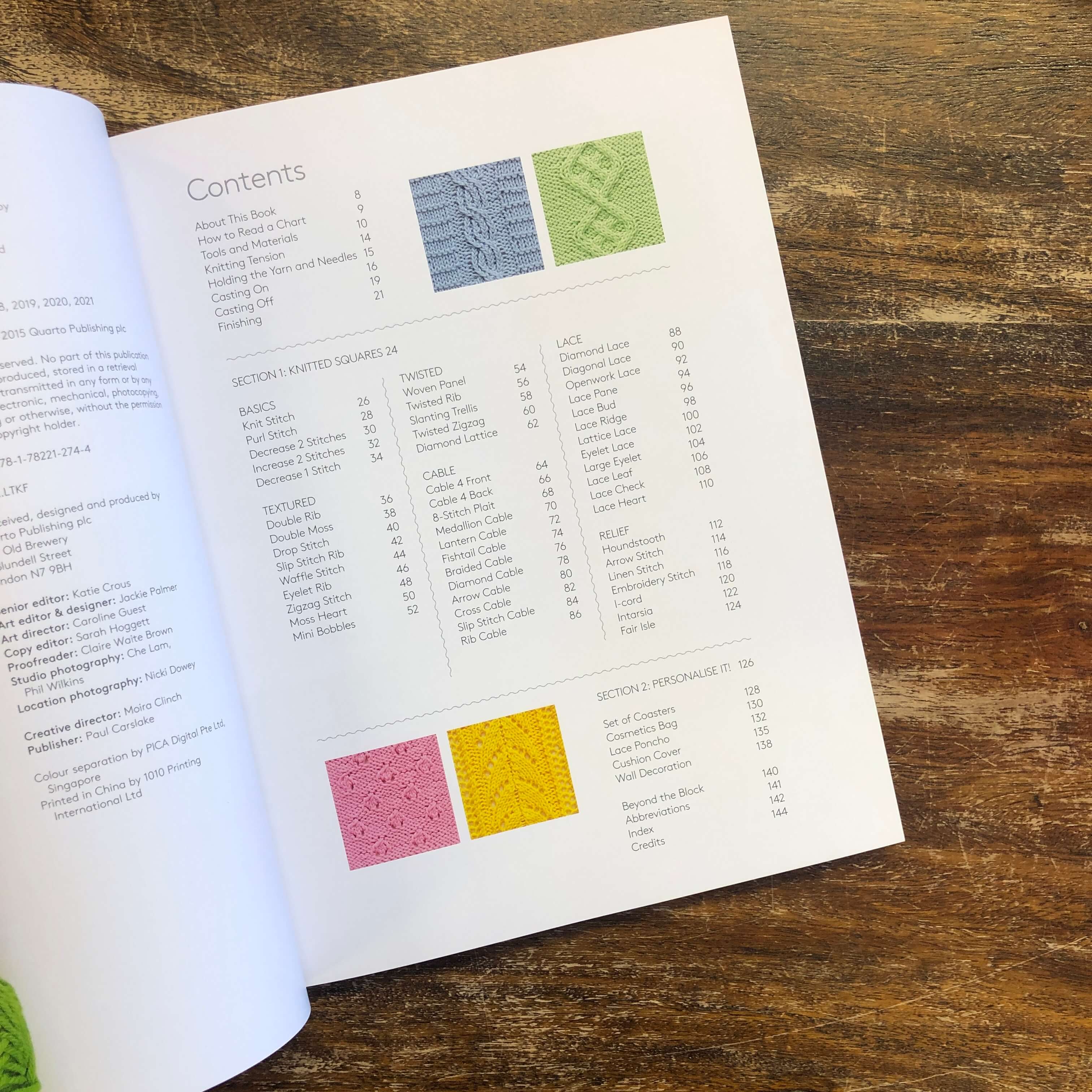 The blocks are organised according to skill level, progressing from basic knit and purl stitches to more challenging techniques such as cable and lace. Practice one new stitch at a time before you’re ready to move on to the next one. At the back of the book, you’ll find a handful of inspirational projects that teach you how to combine your blocks for unique and stylish results.