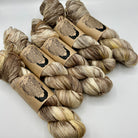 Nervus Fibre is based in Glasgow. Charlotte's rich warm colour palette has a desert glow. The shades range from subtle semi solids to layers of variegations. Watch out for teeny tiny splashes of colour too.