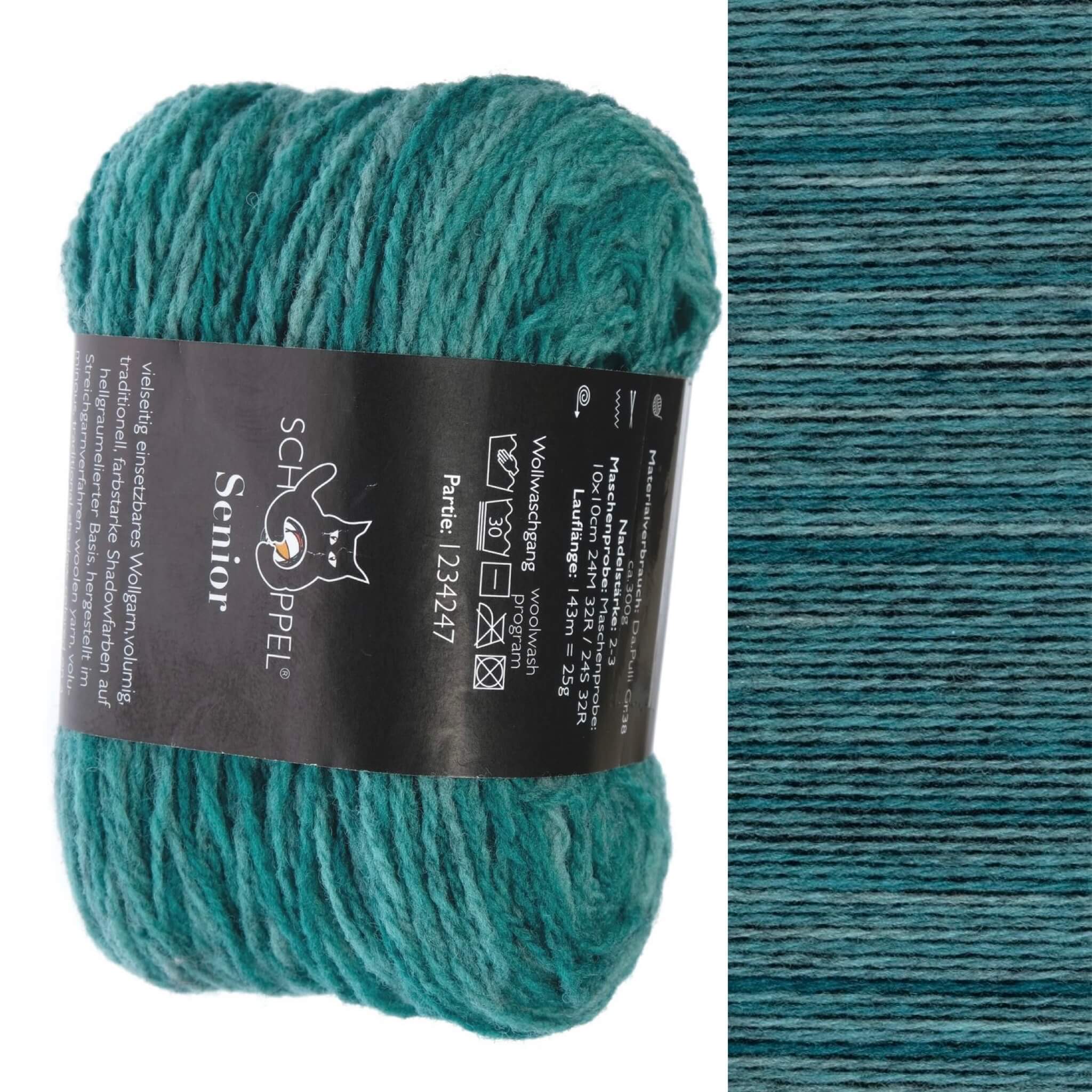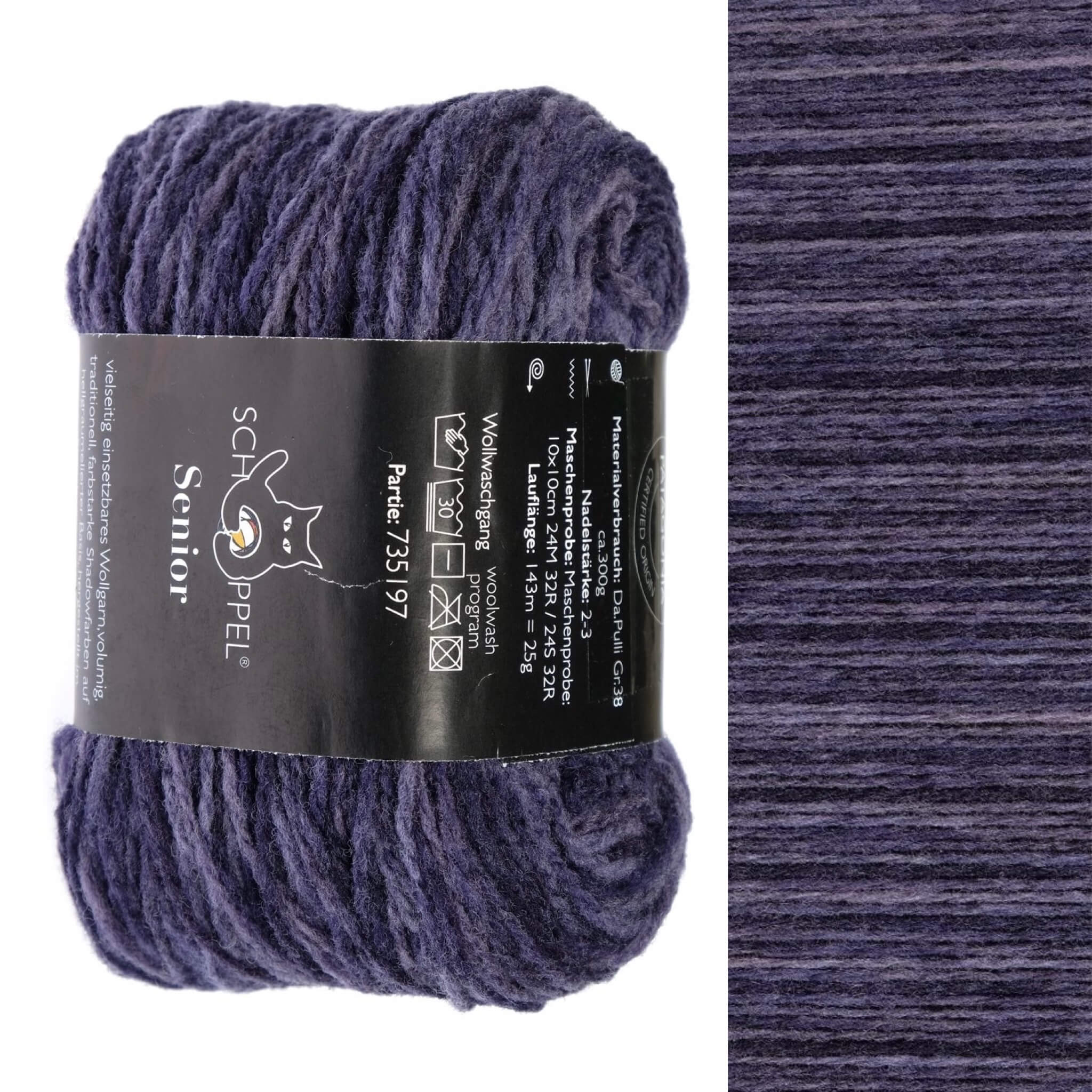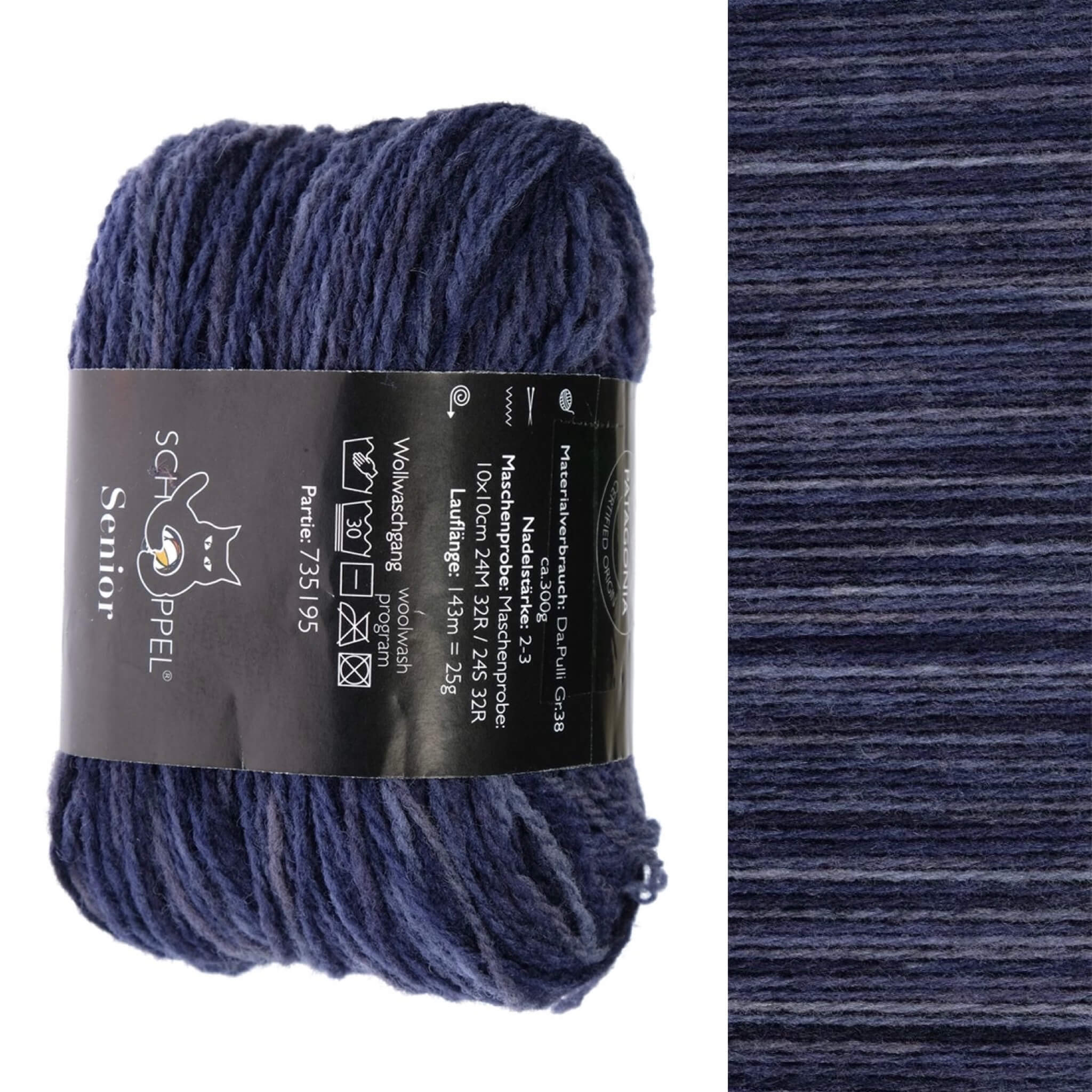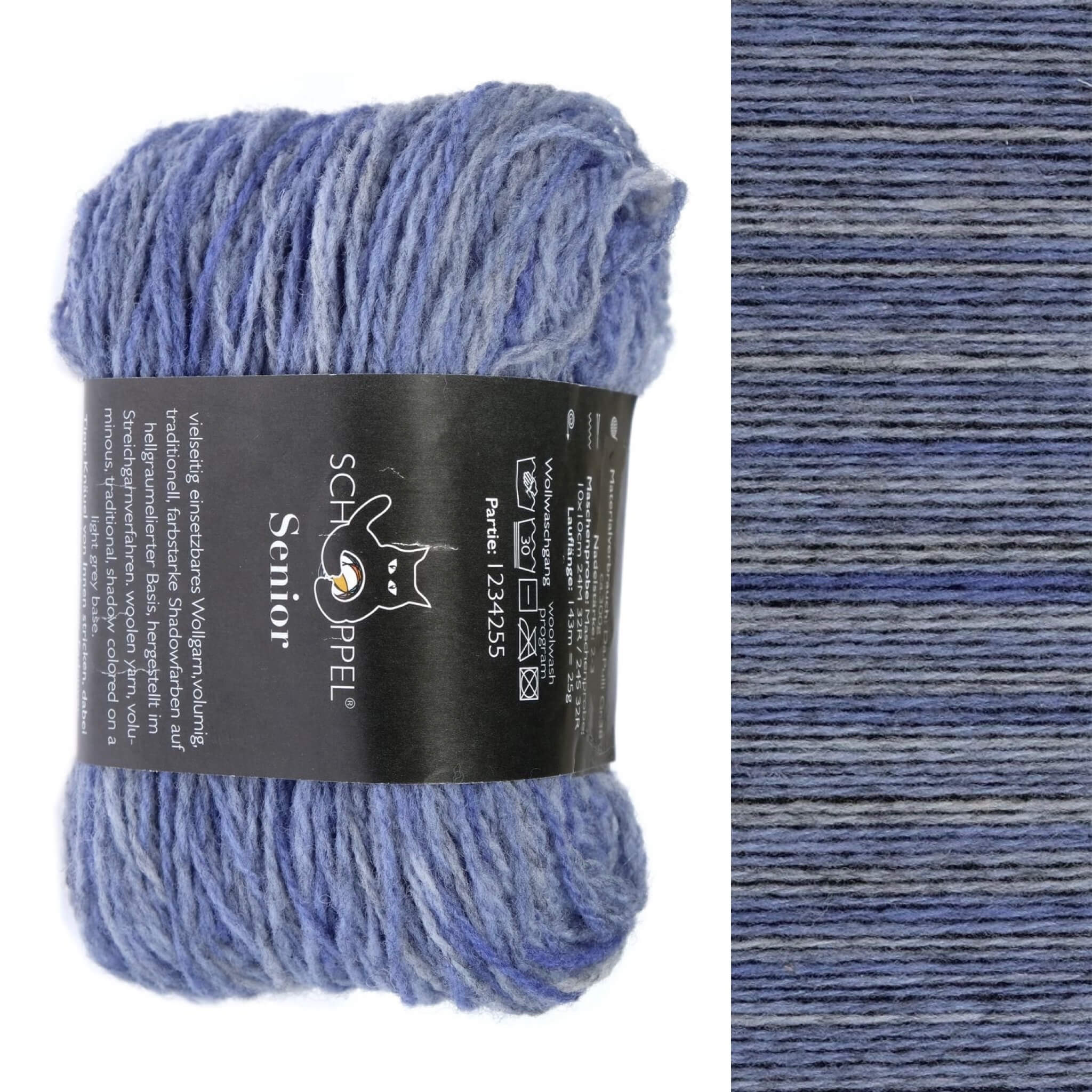 Senior has a grey base and the colours are created by dyeing in different colour gradations, which gives the yarn a slightly textured look.