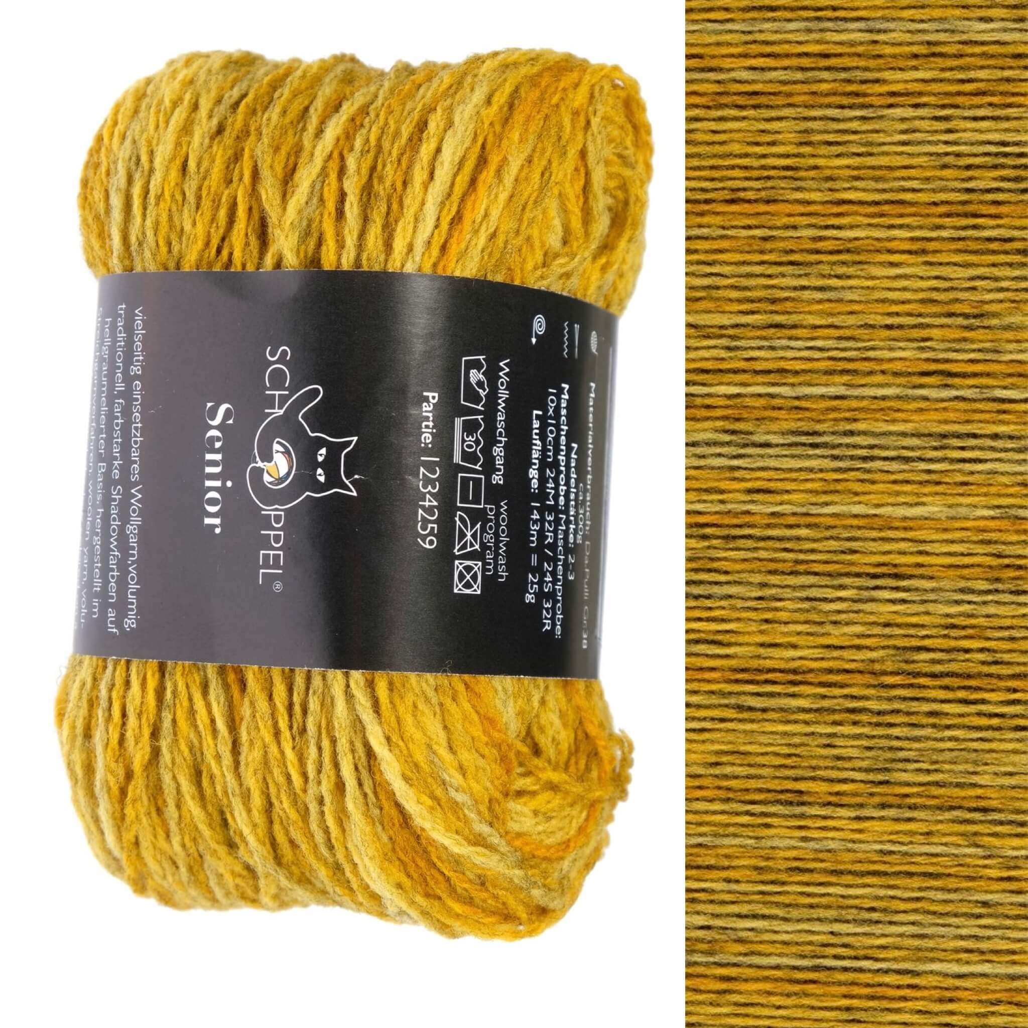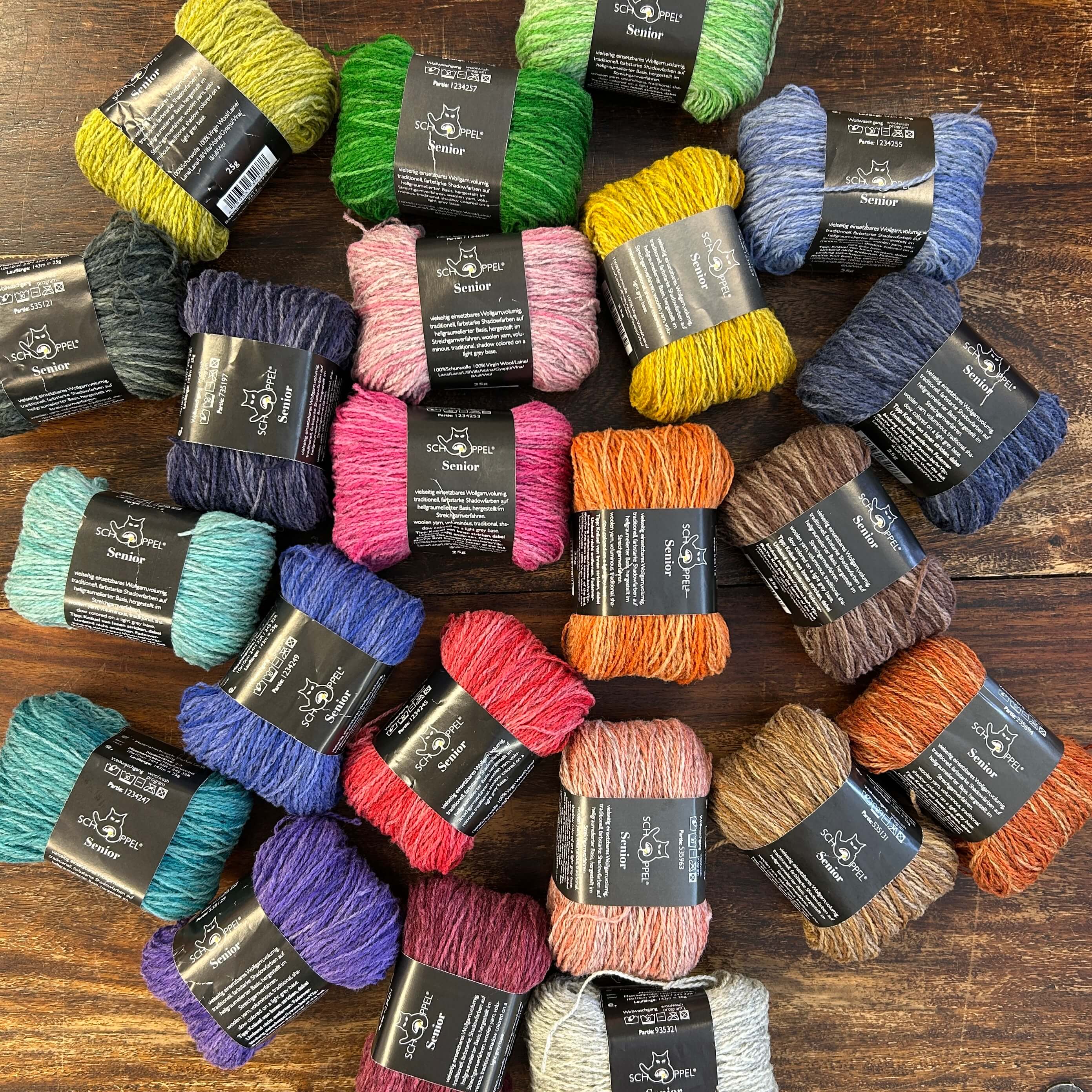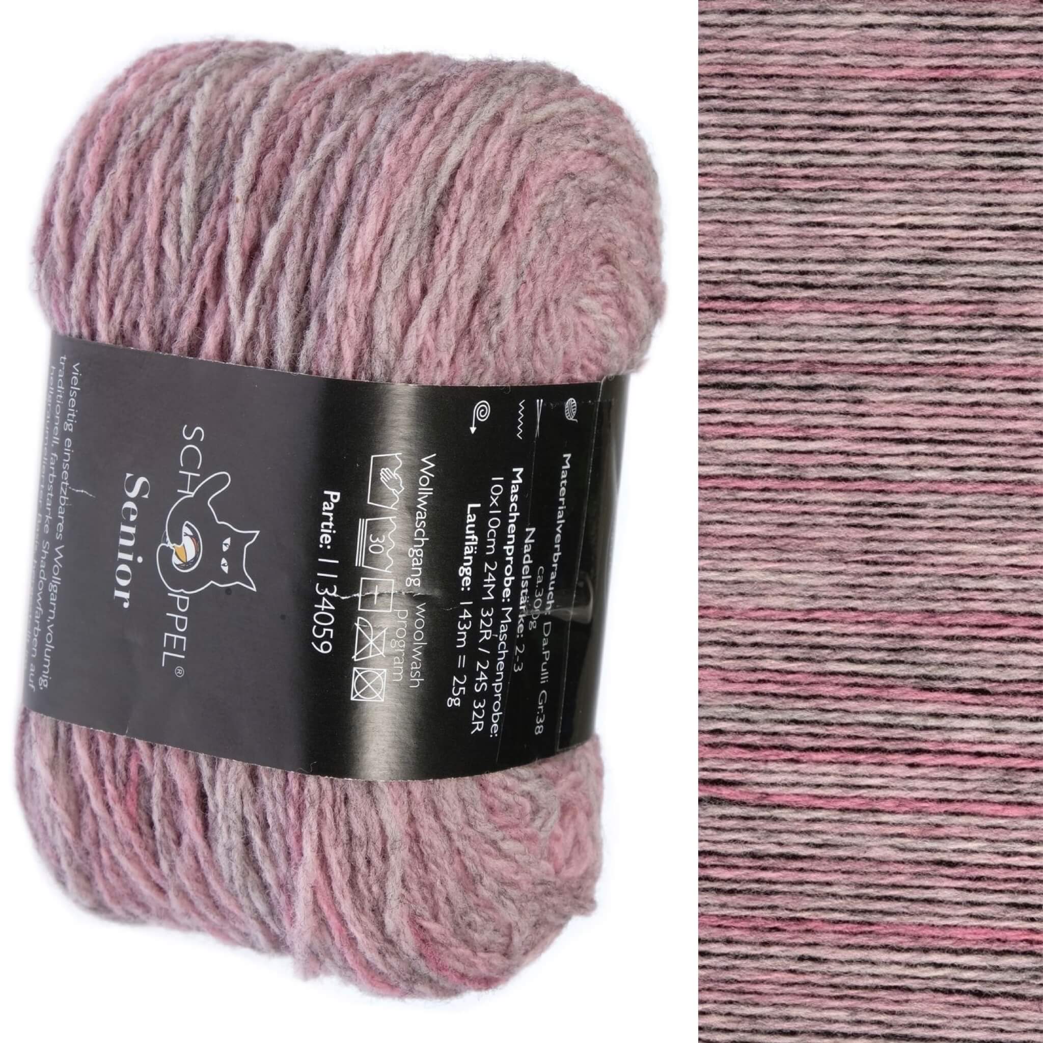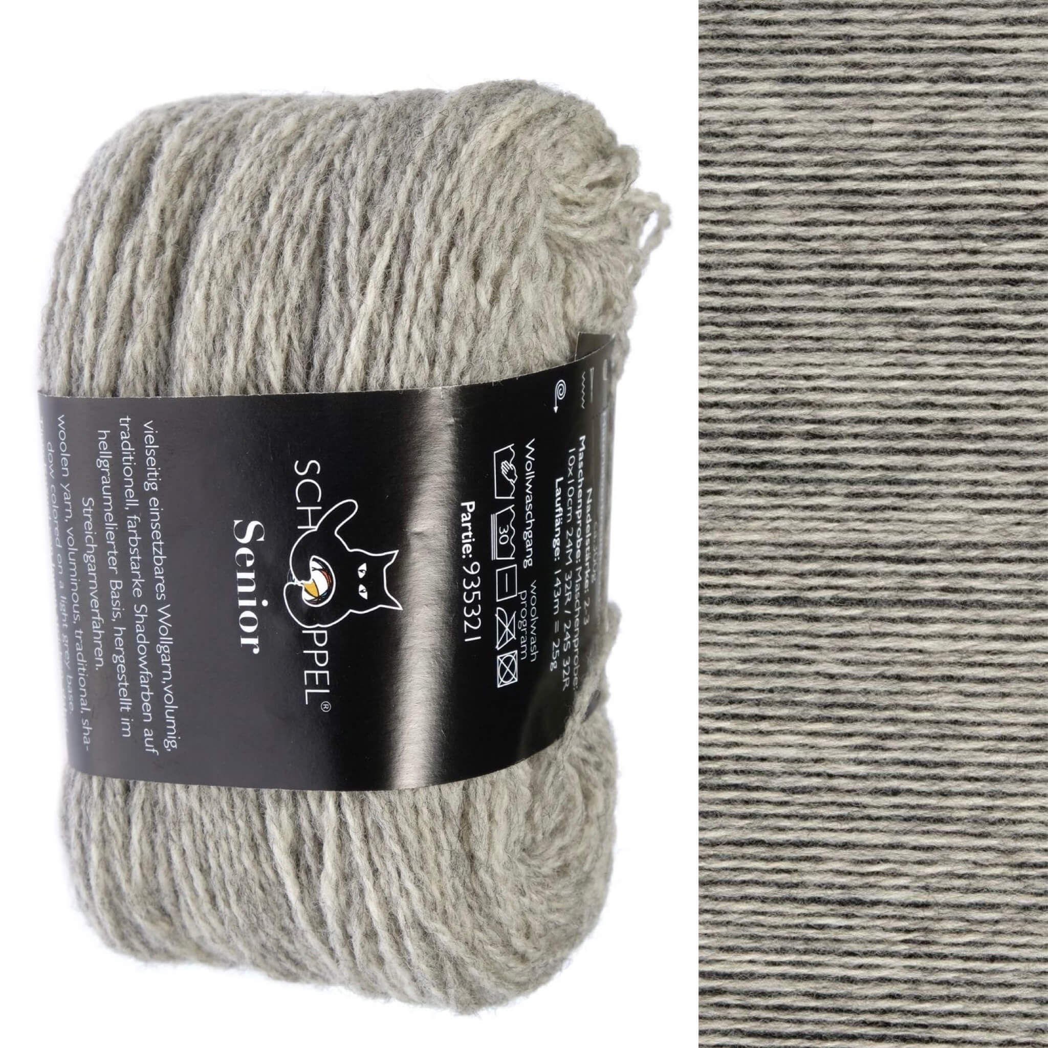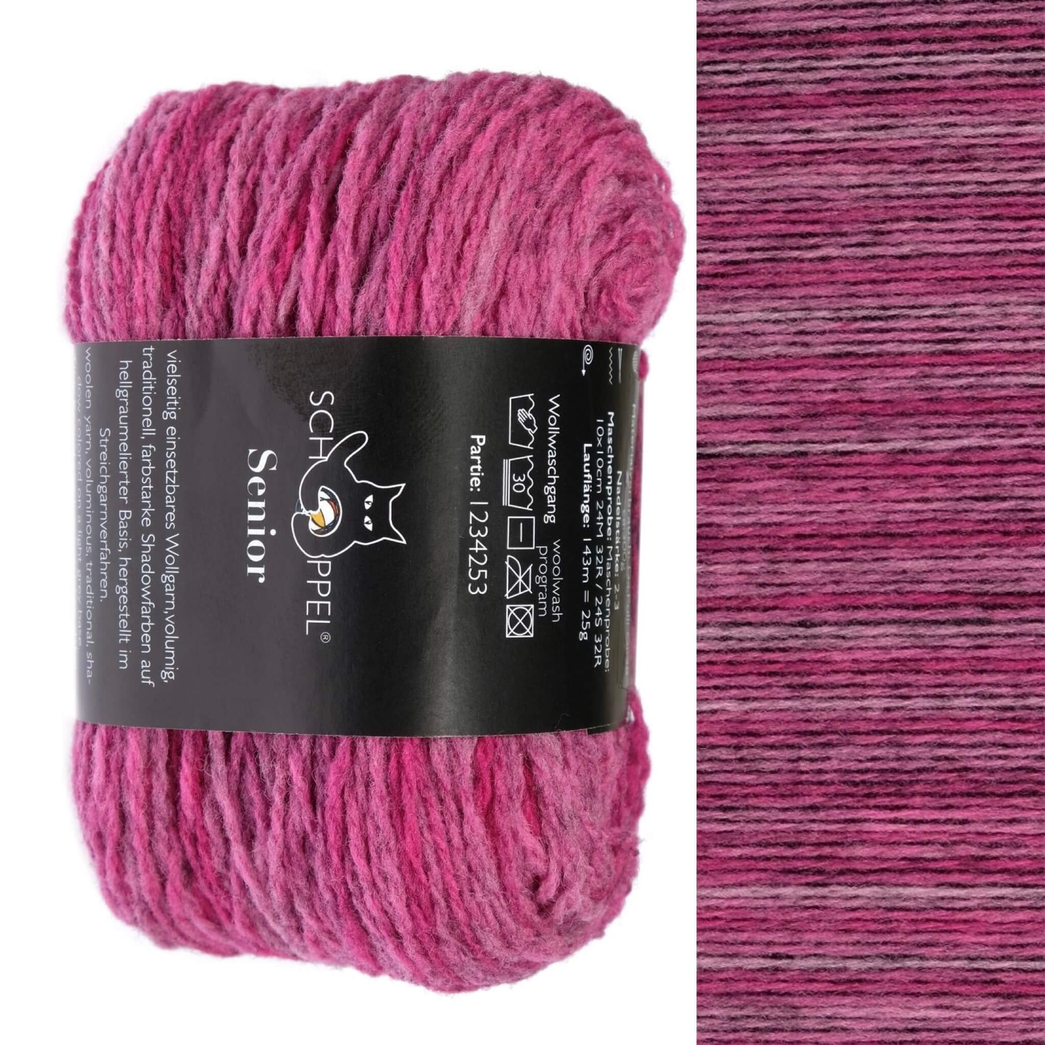 Senior has a grey base and the colours are created by dyeing in different colour gradations, which gives the yarn a slightly textured look.