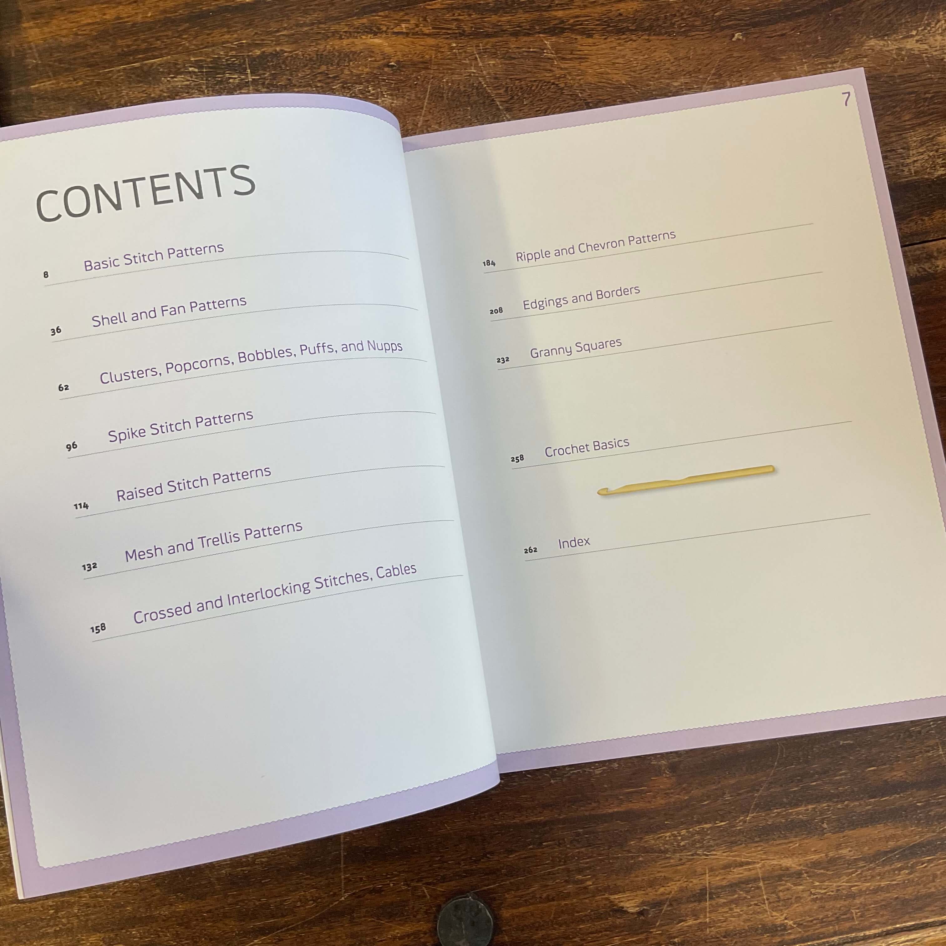 Divided into ten chapters by the type of stitches, such as shells, waves and chevrons, openwork, cables and textures, and even borders and granny squares, this collection boasts a vast variety of stitches, well organized and presented in an easy-to-use fashion.