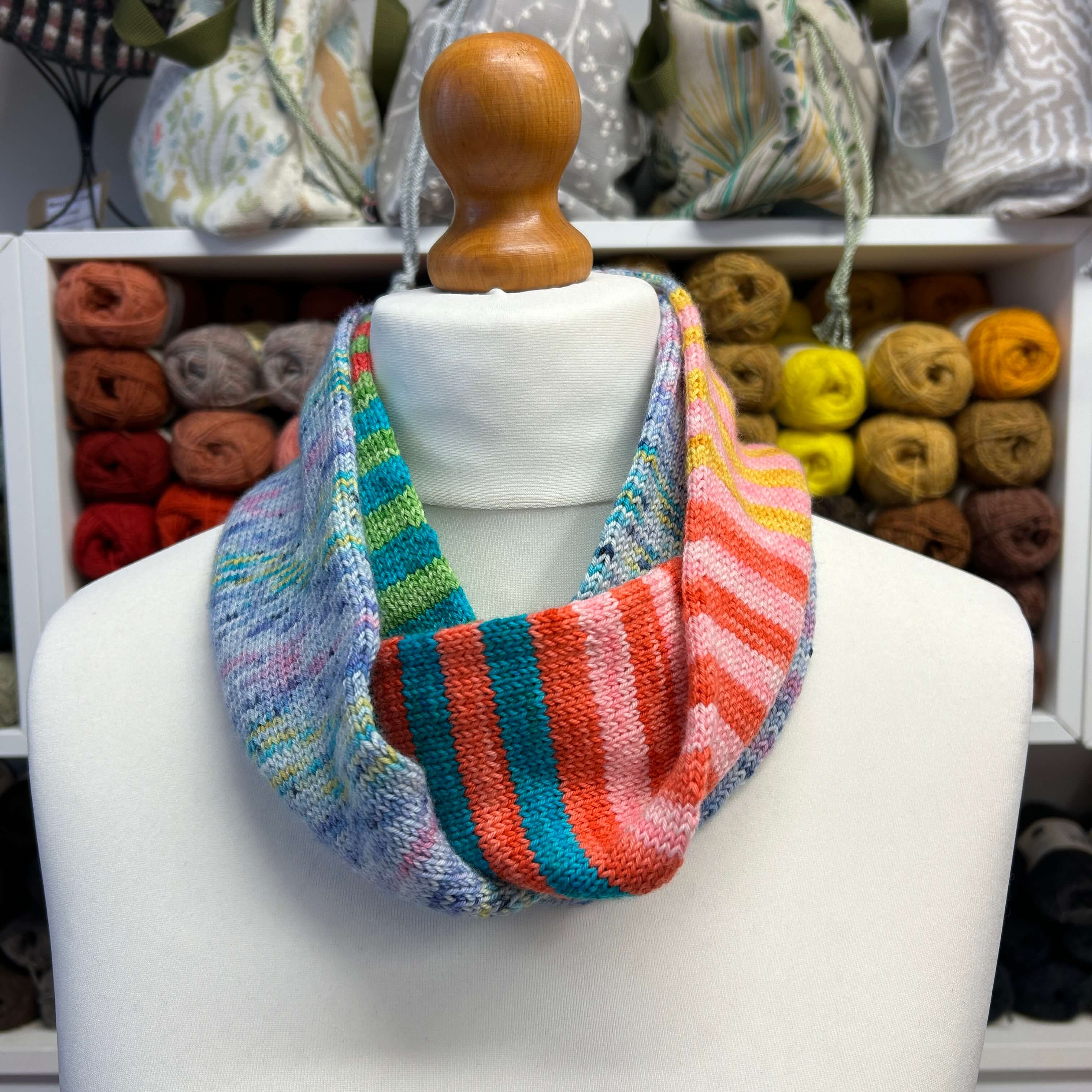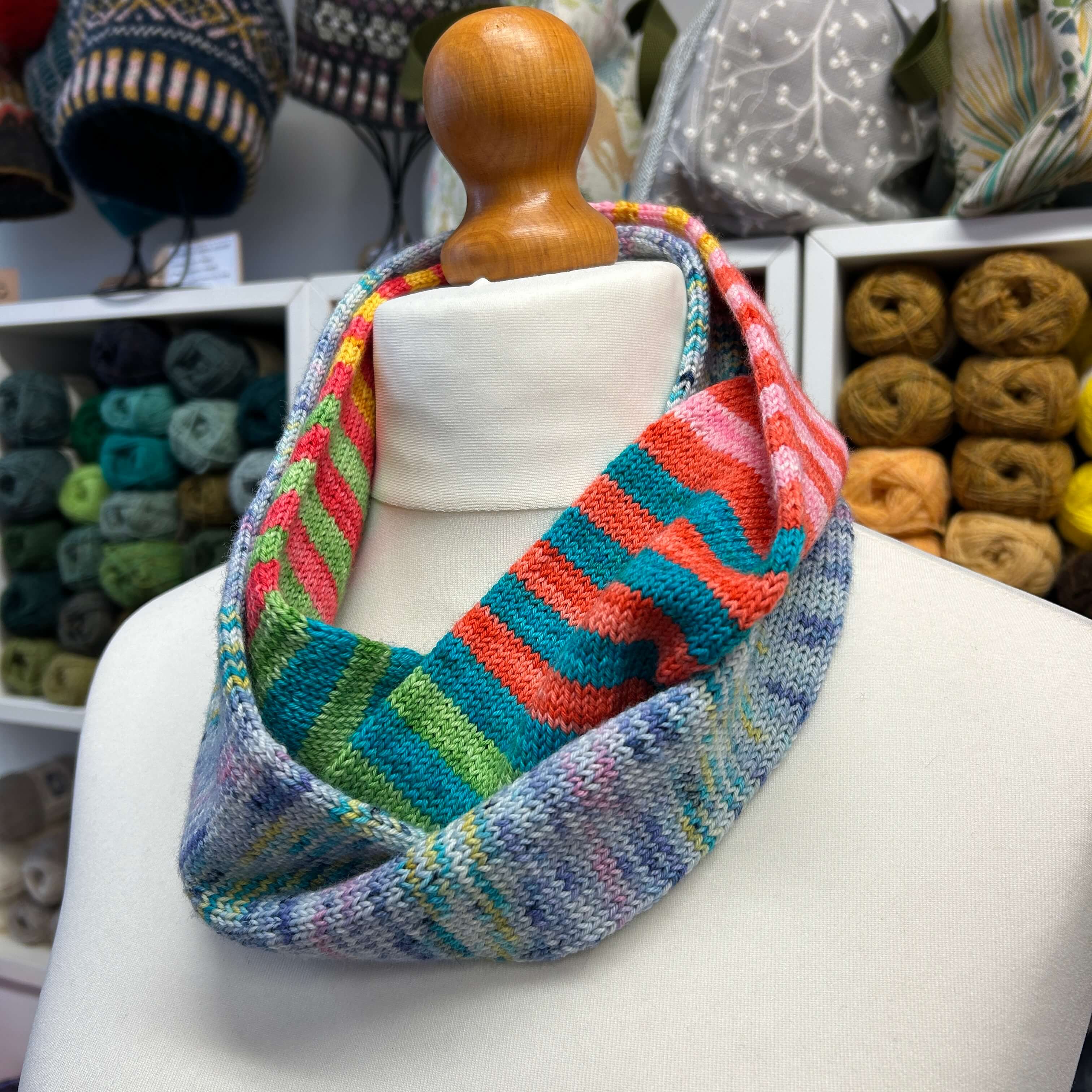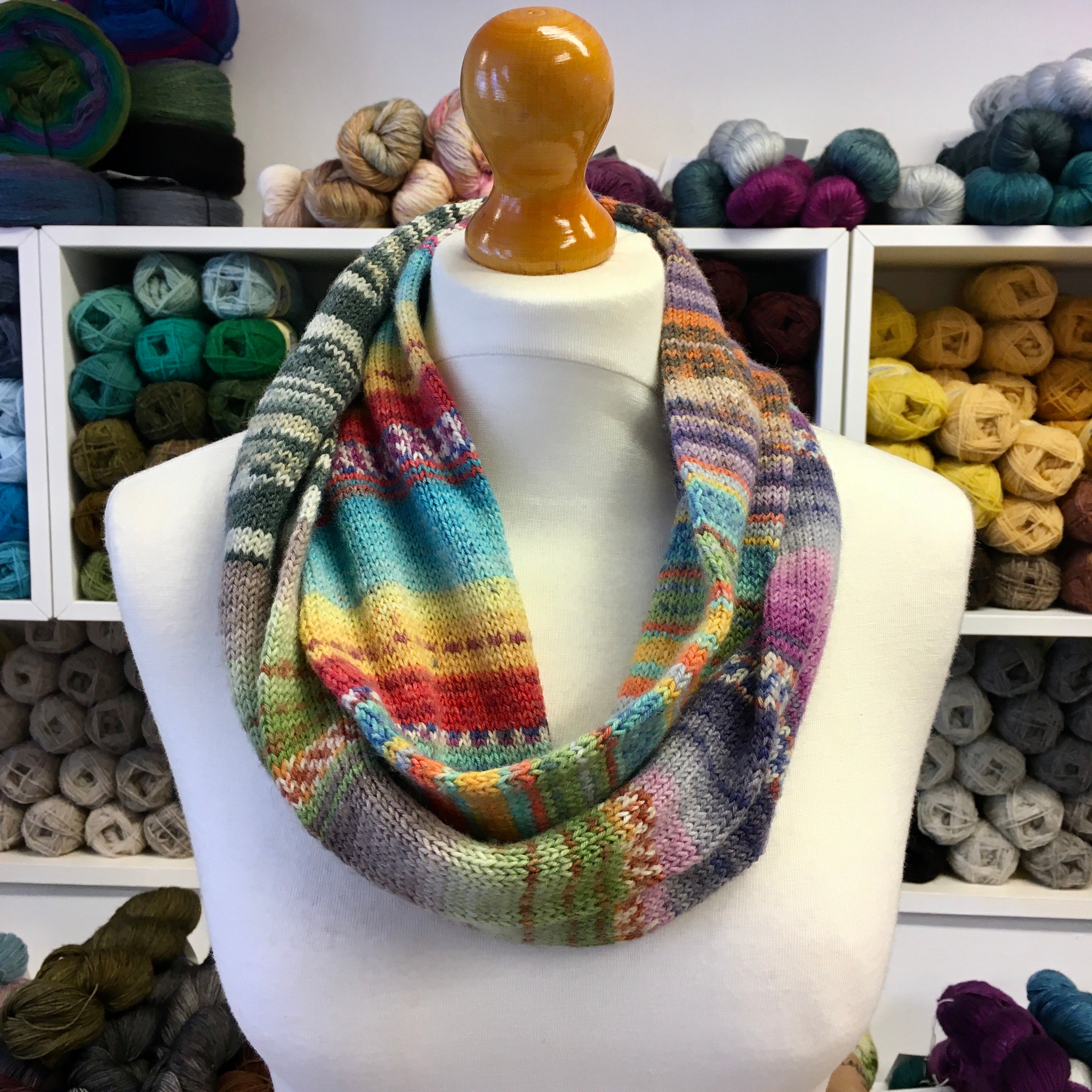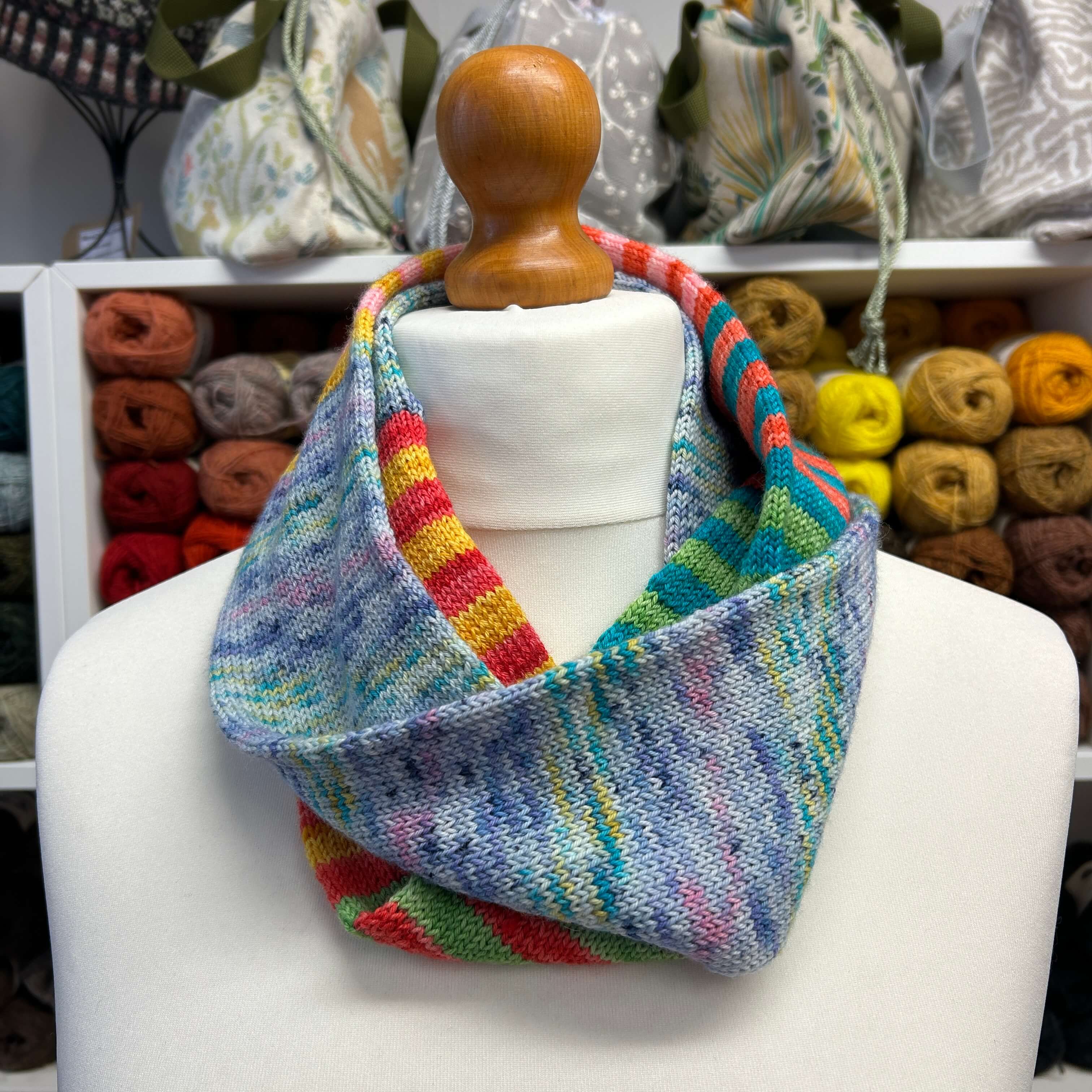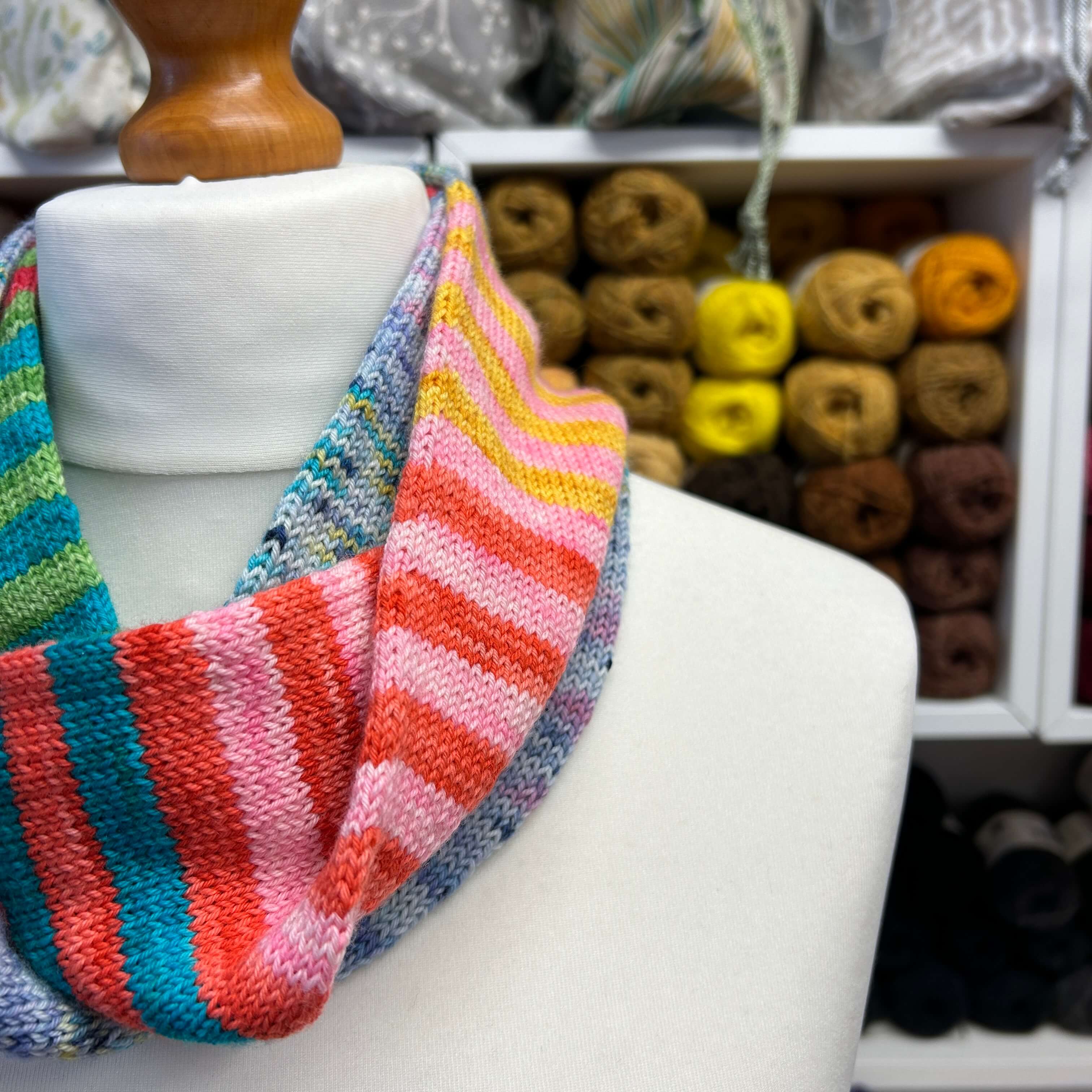 Free digital Woolly Brew knitting pattern for a narrow tube cowl in 4ply yarn.